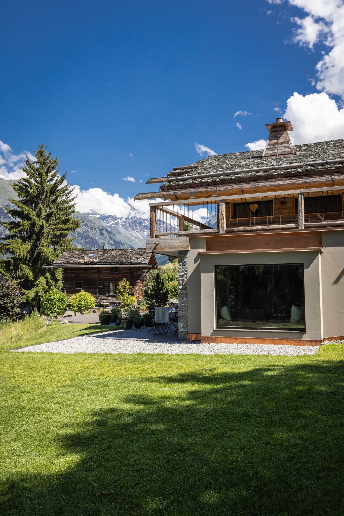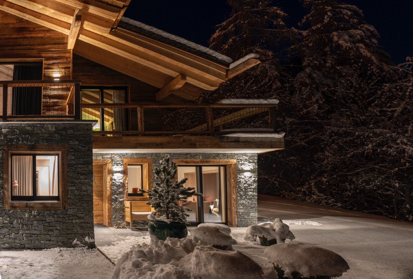 Sëléna ist ein elegantes, zeitgenössisches Chalet oberhalb des Dorfes Bruson, das aus edlen Materialien wie Altholz, sichtbarem Saxon-Stein und Schieferdach gebaut wurde. Es respektiert und harmoniert mit dem architektonischen Stil des charmanten und authentischen Dorfes, in dem es steht: Bruson im Herzen des Val de Bagnes im Kanton Wallis, ganz in der Nähe von Verbier, dem international bekannten Touristenort mit seinen 4-Jahreszeiten-Aktivitäten.