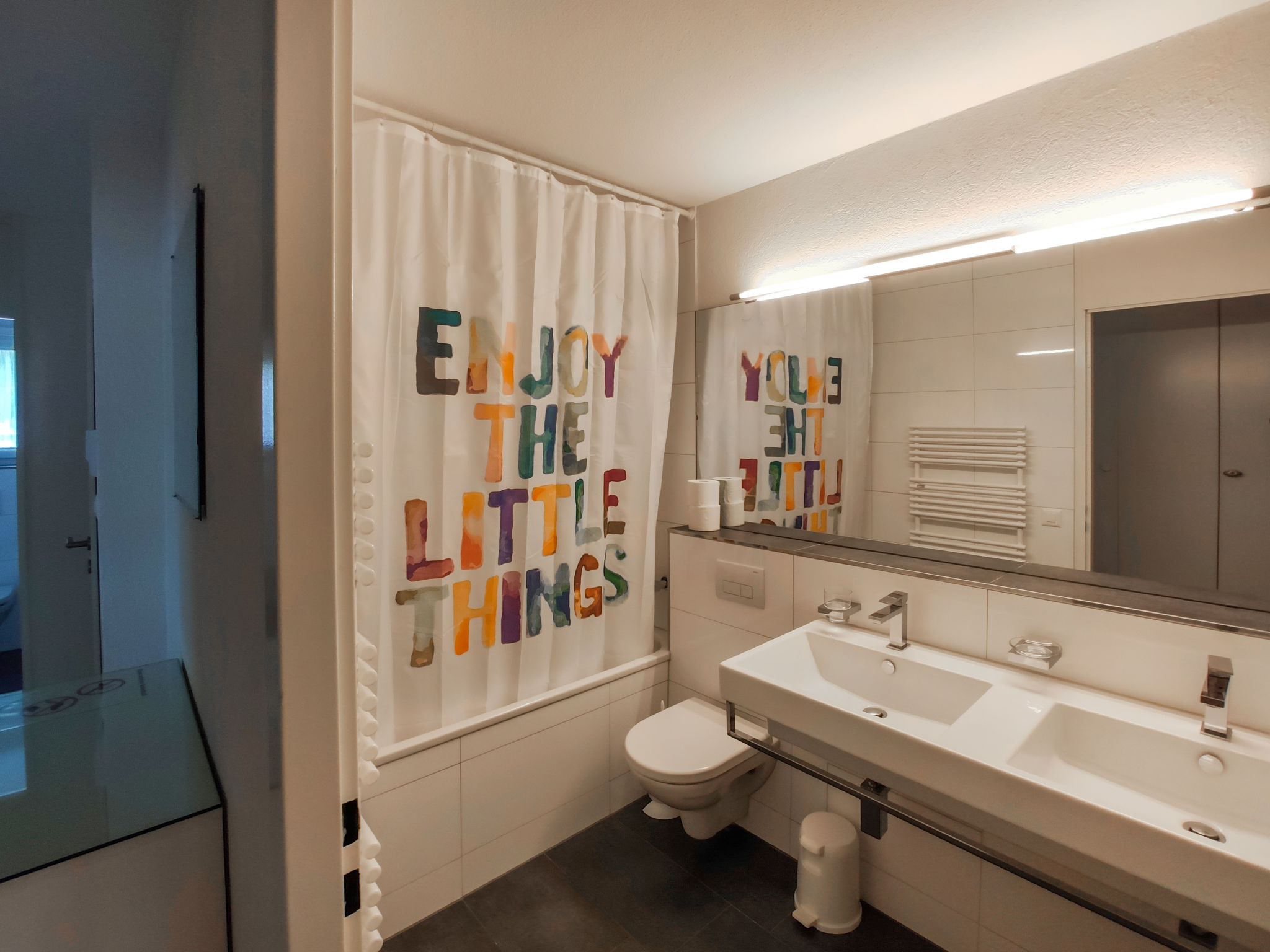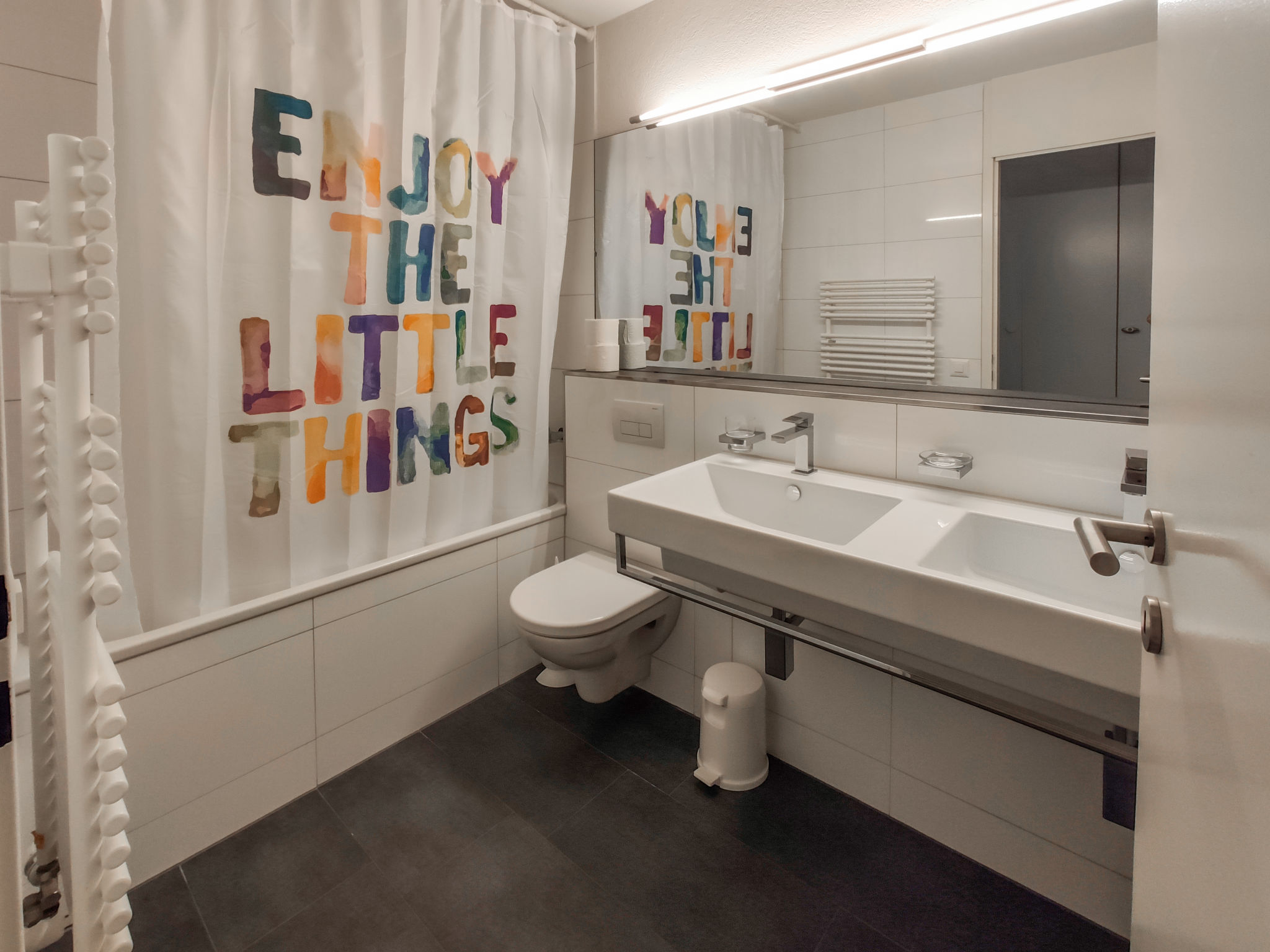 "Allod Park Haus B 403", 3-Zimmer-Wohnung 80 m2 im 4. Stock, Südwestlage. Renoviert, sehr schön und geschmackvoll eingerichtet: Wohn-/Esszimmer mit Kabel-TV (Flachbildschirm). Ausgang zum Balkon. 1 Zimmer mit 2 Betten (90 cm), sep. WC. 1 grosses Zimmer mit 1 Doppelbett (180 cm). Küche (Backofen, Geschirrspüler, 4 Induktionskochplatten, elektrische Kaffeemaschine, Kapseln für die Kaffeemaschine (Delizio (Migros)) extra, Racletteofen, Fondue Set (Chinoise, Käse)). Sep. WC, Bad/Dusche/WC, Doppelwaschbecken. Grosser Balkon, Südwestlage. Balkonmöbel. Sehr schöne Sicht auf den Garten und Park. Zur Verfügung: Internet (WLAN, gratis). Garage (extra). Bitte beachten: geeignet für Familien. Nichtraucher-Unterkunft. 11836