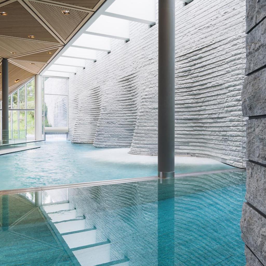 Das vom berühmten Architekten Mario Botta gestaltete Spa Tschuggen Bergoase lädt zum Entspannen ein.