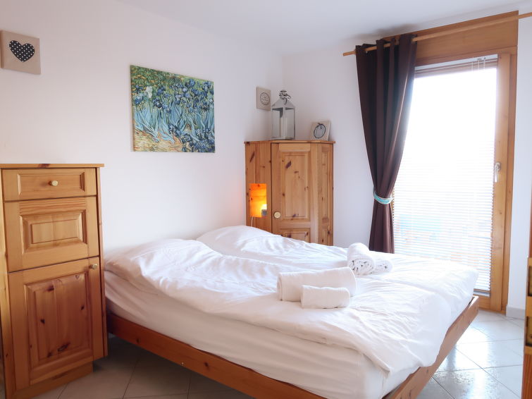 "Grand Panorama A5", 2-Zimmer-Wohnung 65 m2 im 1. Stock, Nordlage. Hell, komfortabel und schön eingerichtet: Wohn-/Esszimmer mit Panoramafenster mit 1 Doppeldiwanbett (140 cm, Länge 190 cm), Kabel-TV. Ausgang zum Balkon, Richtung Norden und Richtung Nordosten. 1 Zimmer mit 1 Doppelbett (160 cm, Länge 190 cm). Ausgang zum Balkon. Offene Küche (Backofen, 4 Glaskeramikplatten, elektrische Kaffeemaschine, Kapseln für die Kaffeemaschine (nespresso), Racletteofen). Dusche/WC. Balkonmöbel. Sehr schöne Sicht auf die Berge. Zur Verfügung: Internet (Wireless LAN, gratis). Parkplatz Nr. A5. Bitte beachten: geeignet für Familien. Nichtraucher-Unterkunft.