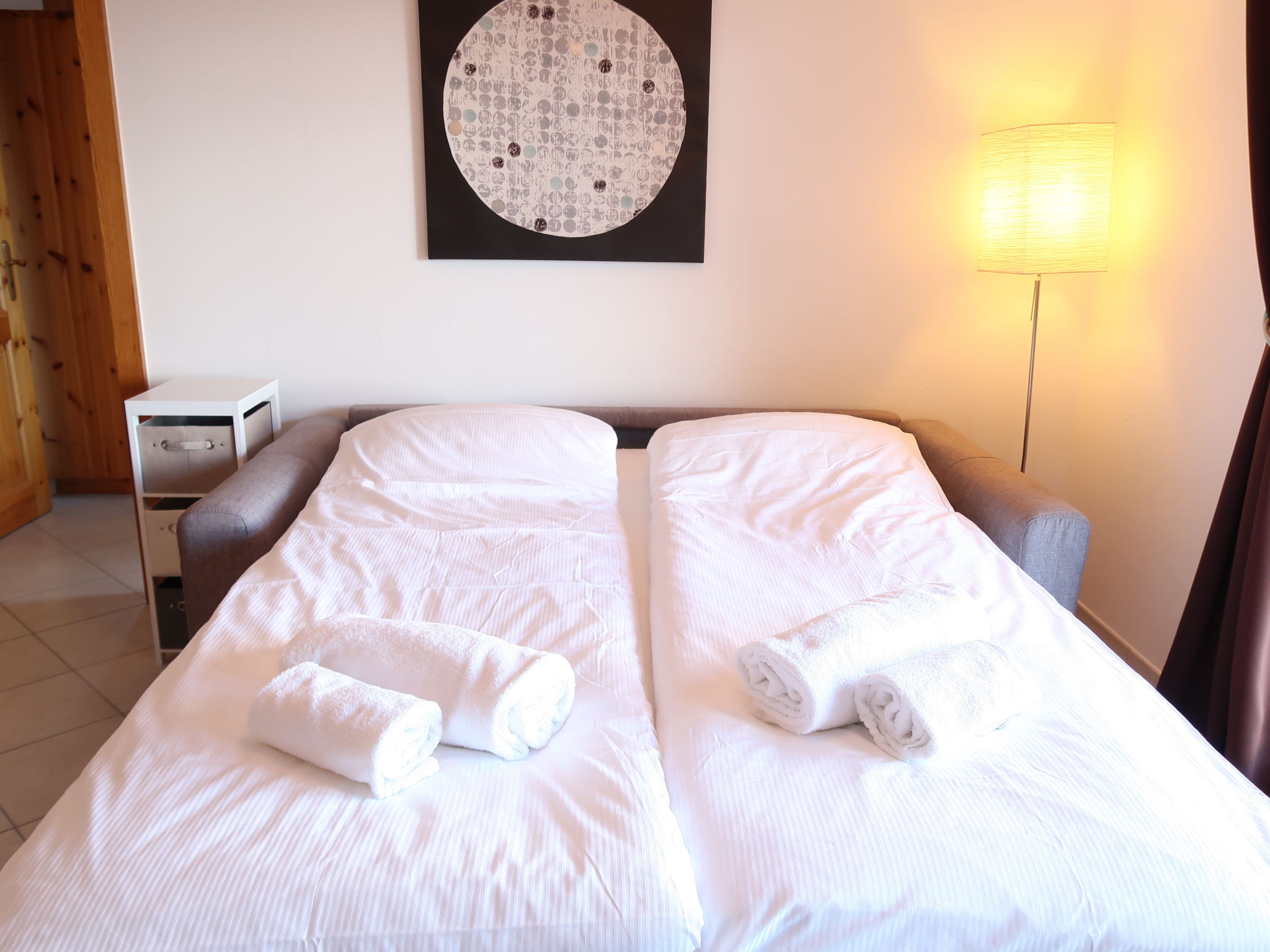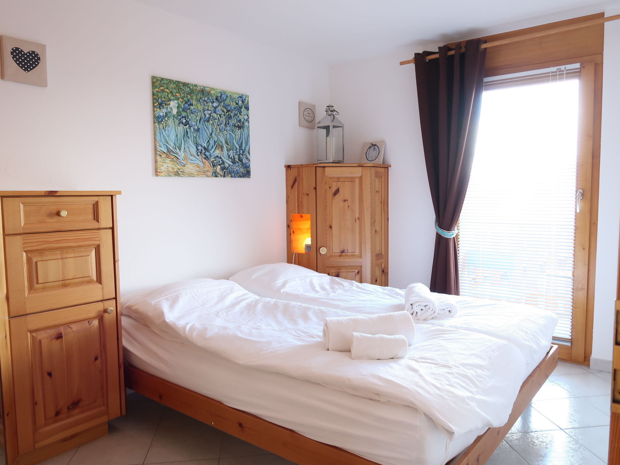 "Grand Panorama A5", 2-Zimmer-Wohnung 65 m2 im 1. Stock, Nordlage. Hell, komfortabel und schön eingerichtet: Wohn-/Esszimmer mit Panoramafenster mit 1 Doppeldiwanbett (140 cm, Länge 190 cm), Kabel-TV. Ausgang zum Balkon, Richtung Norden und Richtung Nordosten. 1 Zimmer mit 1 Doppelbett (160 cm, Länge 190 cm). Ausgang zum Balkon. Offene Küche (Backofen, 4 Glaskeramikplatten, Toaster, Wasserkocher, elektrische Kaffeemaschine, Kapseln für die Kaffeemaschine (nespresso), Racletteofen). Dusche/WC. Balkonmöbel. Sehr schöne Sicht auf die Berge. Zur Verfügung: Internet (WLAN, gratis). Parkplatz Nr. A5. Bitte beachten: geeignet für Familien. Nichtraucher-Unterkunft.