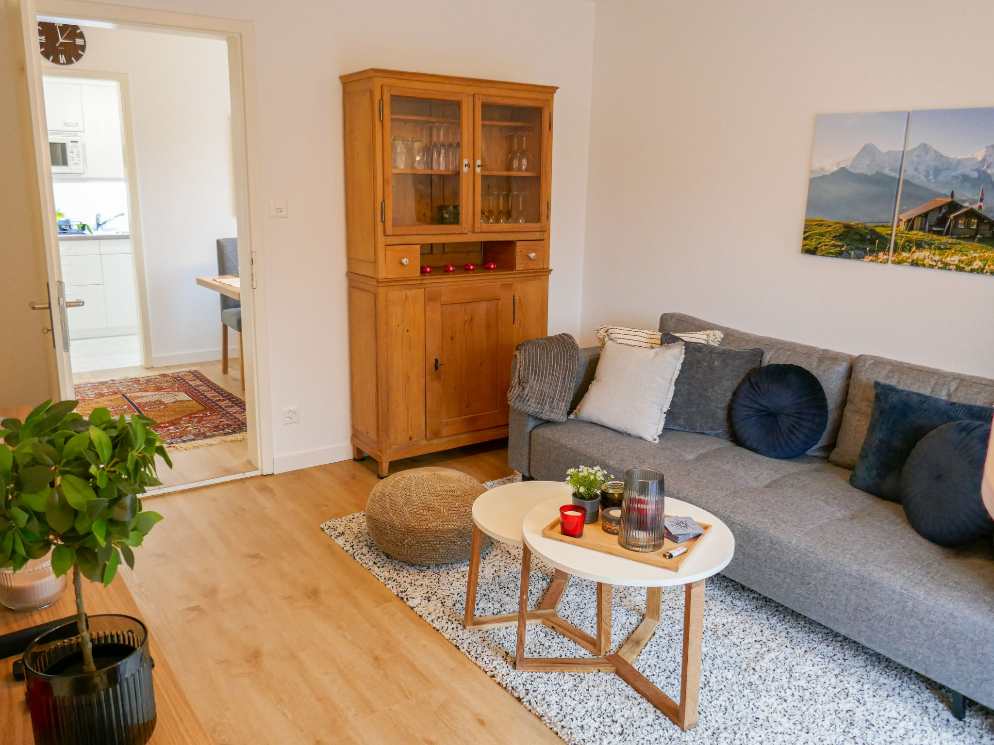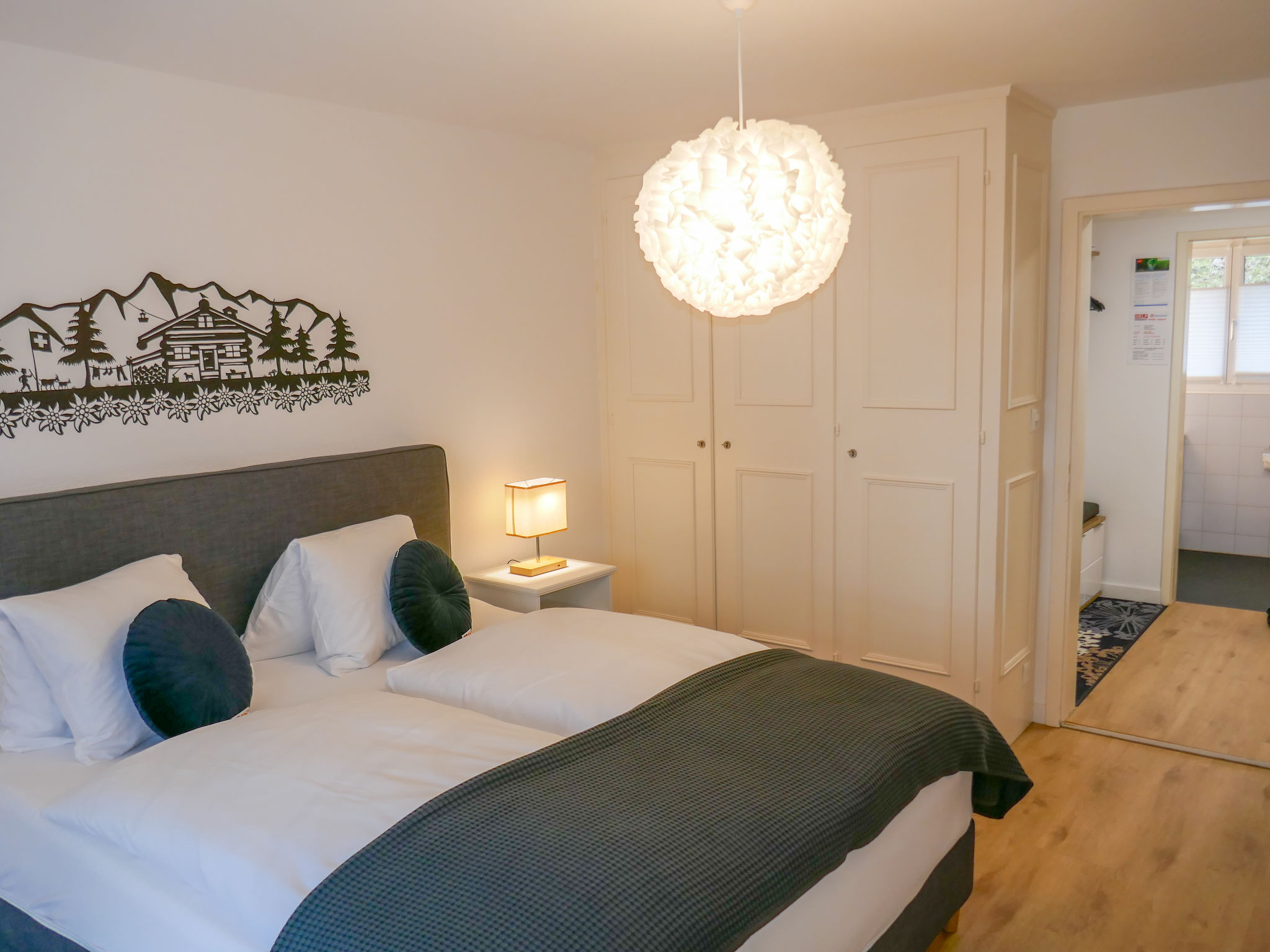 2-Zimmer-Wohnung 70 m2, Südlage. Hell, vollständig renoviert im Jahre 2022, schön und gemütlich eingerichtet: Wohn-/Schlafzimmer mit 1 Diwanbett (160 cm, Länge 200 cm), Digital-TV. Ausgang zum Balkon, Richtung Süden. 1 Zimmer mit 1 Bett (180 cm, Länge 200 cm), Digital-TV. Ausgang zum Balkon, Richtung Süden. Küche (Backofen, Geschirrspüler, 4 Glaskeramikplatten, Toaster, Wasserkocher, Mikrowelle, elektrische Kaffeemaschine, Kapseln für die Kaffeemaschine (Nespresso) extra, Racletteofen, Fondue Set (Käse)). Bad/WC. Parkettboden. Südlage. Herrliche Sicht auf die Berge, das Tal und Eigernordwand. Zur Verfügung: Haartrockner. Internet (Wireless LAN, gratis). Parkplatz Nr. BE38501. Bitte beachten: Nichtraucher-Unterkunft. Feuerlöscher, kein Fahrstuhl.