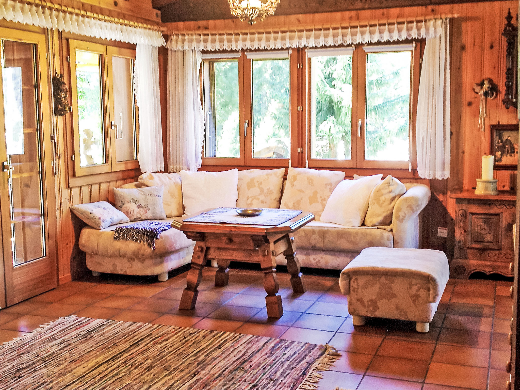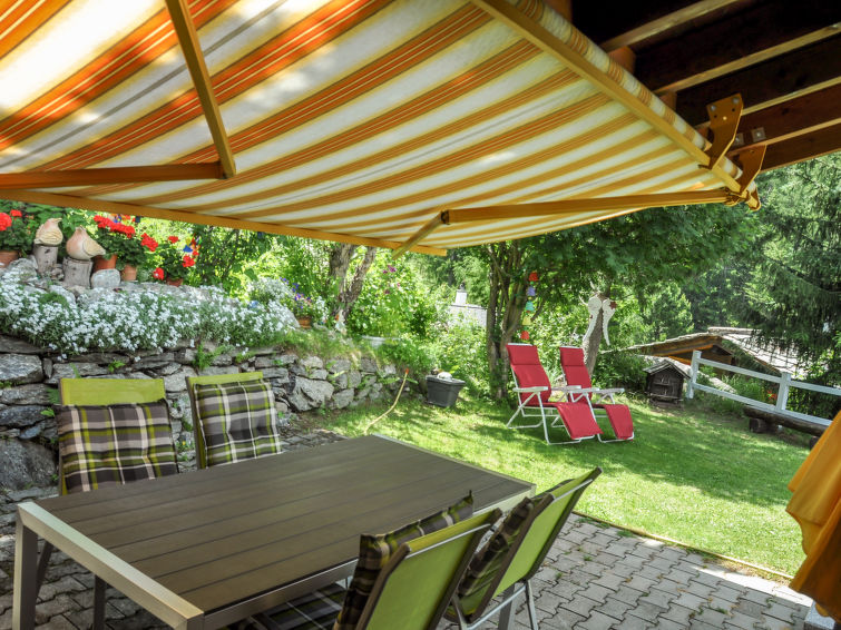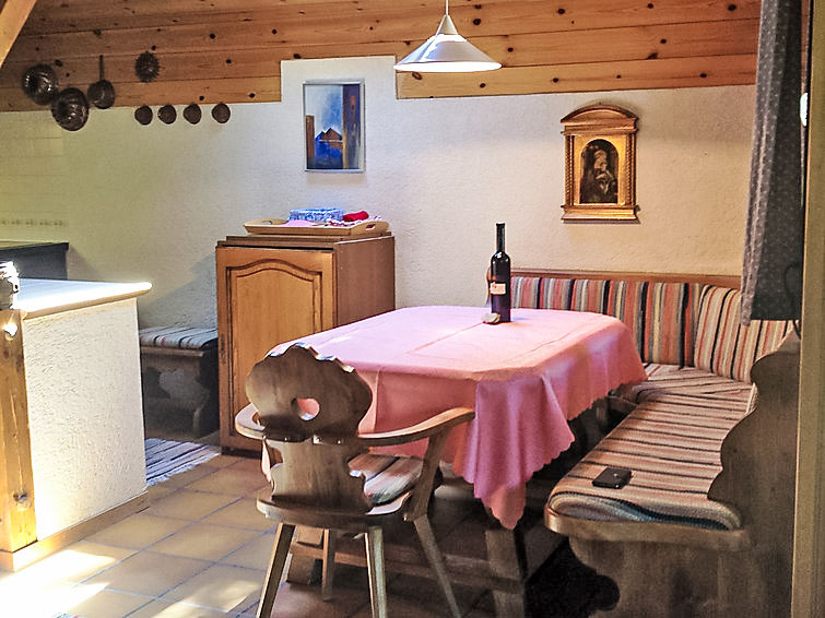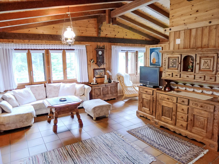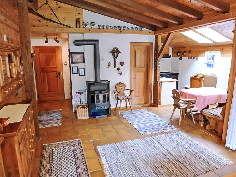 2-Zimmer-Chalet 90 m2. Komfortabel und gemütlich eingerichtet: Wohn-/Esszimmer mit Schwedenofen, Essecke und Kabel-TV (Flachbildschirm). Ausgang zum Garten, zum Gartensitzplatz, Richtung Süden. 1 Doppelzimmer. Offene Küche (Backofen, Geschirrspüler, 4 Glaskeramikplatten, elektrische Kaffeemaschine, Racletteofen, Fondue Set (Käse)). Bad/WC. Bodenheizung. Grosser Gartensitzplatz, Garten 40 m2. Terrassenmöbel, Gartengrill, Liegestühle (2), Abstellkammer. Herrliche Panoramasicht auf die Berge und die Landschaft. Zur Verfügung: Waschmaschine, Bügeleisen, Babybett, Haartrockner. Internet (Wireless LAN, gratis). Garage in 200 m. Bitte beachten: Nichtraucher-Unterkunft.