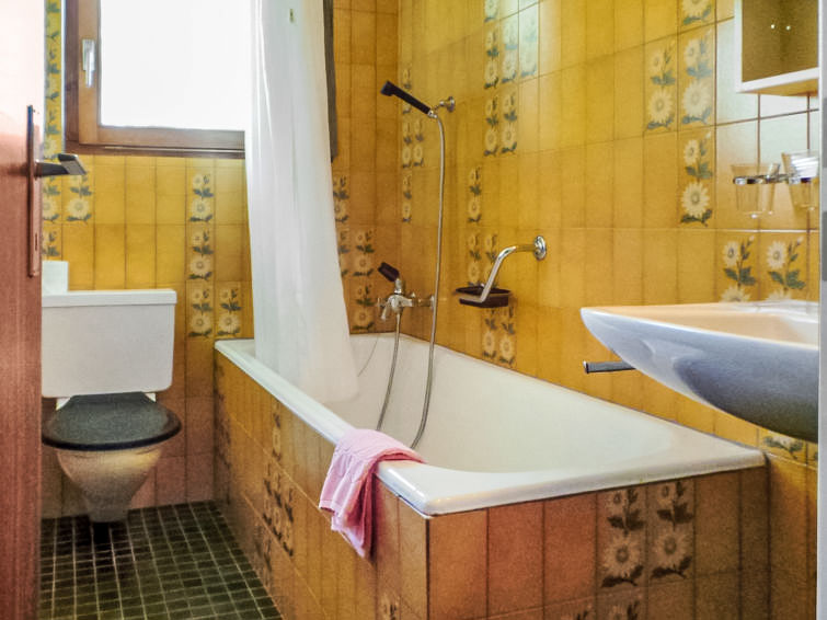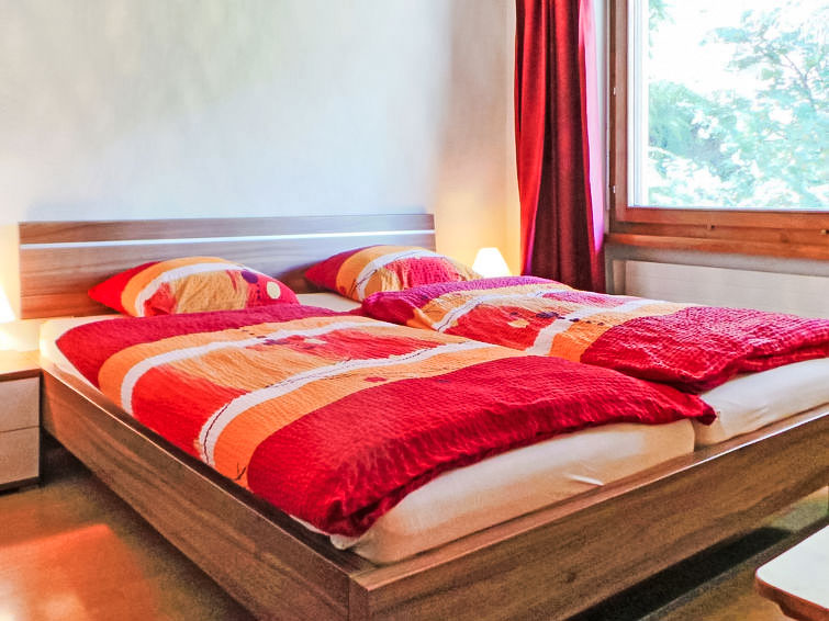 3-Zimmer-Wohnung 70 m2 im 2. Stock. Einfach und zweckmässig eingerichtet: Wohnzimmer mit TV, Radio und DVD. Ausgang zum Balkon. 1 Zimmer mit 1 Doppelbett (2 x 90 cm, Länge 200 cm). 1 Zimmer mit 1 Bett (90 cm, Länge 200 cm), 1 x 2 Etagenbetten (90 cm, Länge 200 cm). Wohnküche (4 Kochplatten, Backofen, Toaster, Wasserkocher, Tiefkühler, elektrische Kaffeemaschine, Fondue Set (Chinoise)) mit Esstisch. Bad/WC. Balkon. Balkonmöbel. Schöne Sicht auf die Berge und die Ortschaft. Zur Verfügung: Haartrockner. Internet (Wireless LAN, gratis). Bitte beachten: Nichtraucher-Unterkunft.
