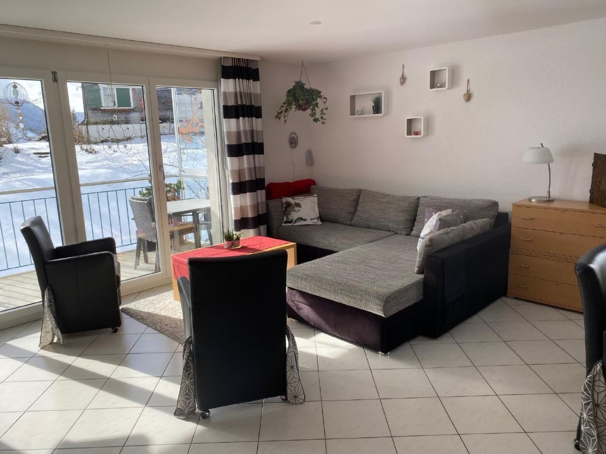 Nach außen hin eröffnet sich vom Balkon aus ein atemberaubender Blick auf die Churfirsten – der perfekte Ort, um im Sommer die Seele baumeln zu lassen. Die Wohnung ist Teil eines im Jahr 2007 erbauten Mehrfamilienhauses mit 7 Einheiten und genießt trotz ihrer sehr ruhigen Lage eine zentrale Position. Kurze Gehwege führen zu wichtigen Anlaufstellen wie der Talstation nach Oberdorf-Gamserug oder der Postautostation Lisighus.