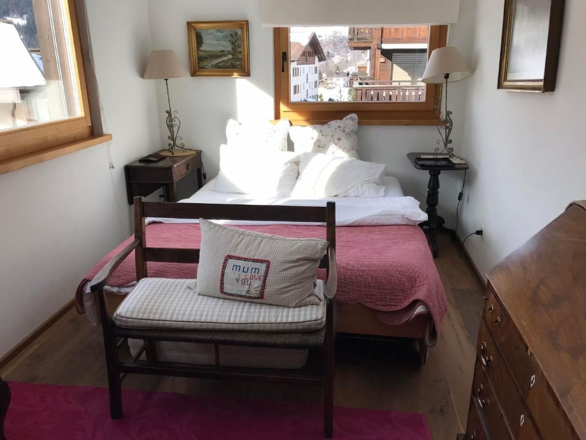 Charmante Wohnung im traditionellen Stil mit allem modernen Comfort. Alle Raeume haben Eichen-Holzfussboeden mit Fussbodenheizung. Der Haupt-Schlazimmer hat einen Duschraum mit Waschbecken und WC en suite, sowie ein Ankleidezimmer. Es gibt 2 weitere Doppelschlafzimmer und ein kleineres Zimmer. Das Familienbad hat 2 Becken, ein Wanne und eine separate Dusche (plus WC) und Waschmaschine/Trockner. Dazu gibt es noch ein weiteres Duschzimmer. Die Wohnung liegt ideal: ganz ruhig und in 5 min sind Sie per Fuss auf flachem Terrain im Dorf, beim Coop, Bahnhof und Gotschna Gondel zum Skigebiet. Es gibt eine grosse Terrasse mit voller Bergsicht von allen Zimmern. Die Wohnung ist ausgestattet mit prachtvollen Moebeln und Bildern: alles ist elegant und gleichzeitig gemütlich. Die schoene offene Holz-Küche hat zwei Ofen, einen riesigen amerikanischem Eisschrank (mit grossem Gefrierschrank) und hat eine Kochinsel, an der sich wunderbar arbeiten lasst. Kinder fühlen sich bei uns besonders wohl: wir haben Kinderbettchen und -stühlchen, Spielzeug, ein kleines Trampolin, Schlitten usw., und sie können im Garten spielen. Von der warmen Tiefgarage kommt der Gast per Lift in die Wohnung (1. Stock), ohne Stufen (Rollstuhl-freundlich).