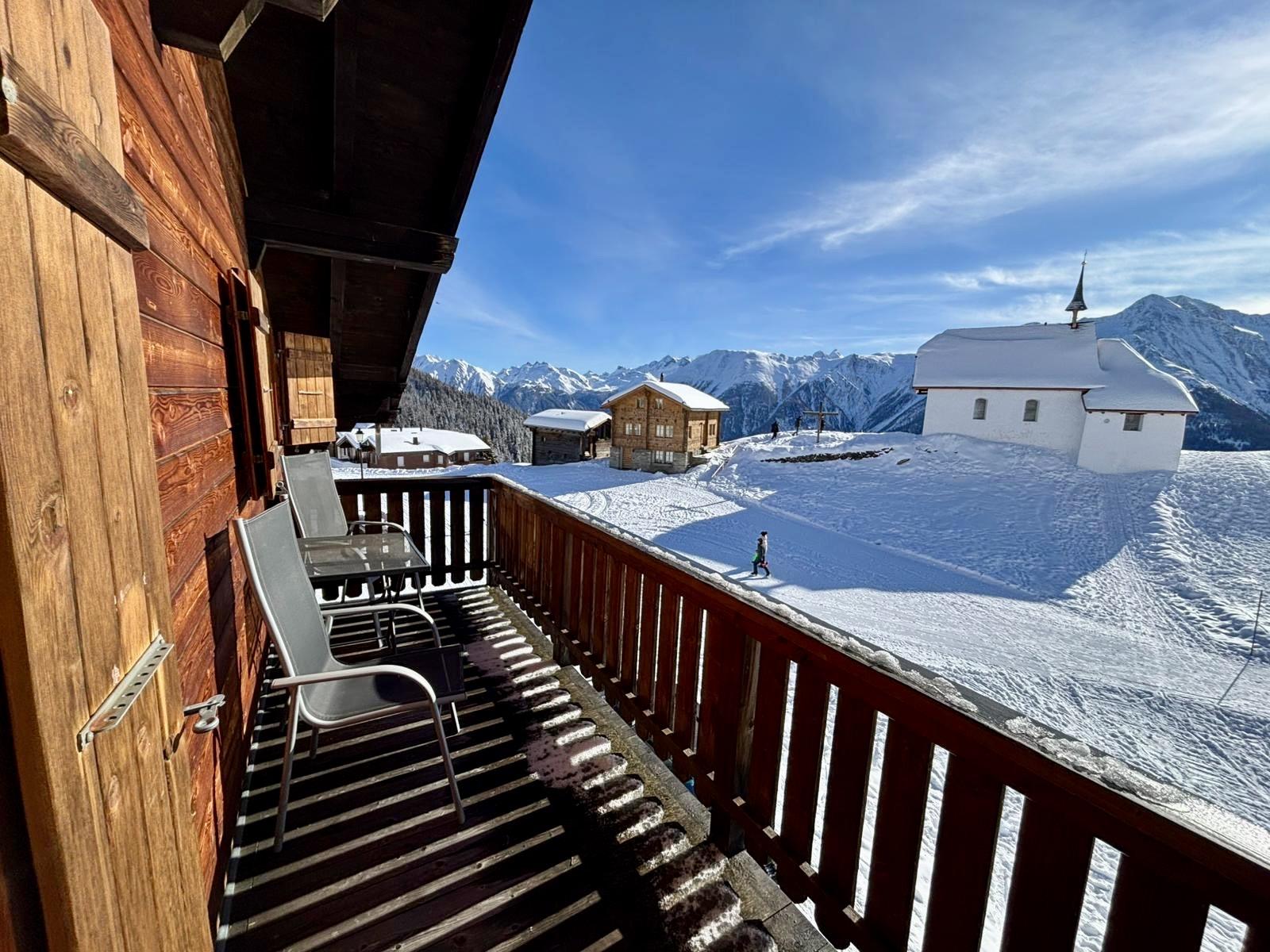 Das Chalet Messfluh begrüsst dich auf der autofreien Bettmeralp, direkt gegenüber der Kapelle Maria zum Schnee. Die Dachgeschosswohnung vereint traditionelle Chalet-Elemente mit modernem Wohnkomfort und bietet dir eine ruhige, zentrale Lage mitten im Dorf. In wenigen Minuten erreichst du zu Fuss sowohl Einkaufsmöglichkeiten als auch Restaurants und die Skilifte. Von der Unterkunft aus geniesst du ein eindrucksvolles Panorama auf die umliegende Bergwelt der Walliser Alpen.