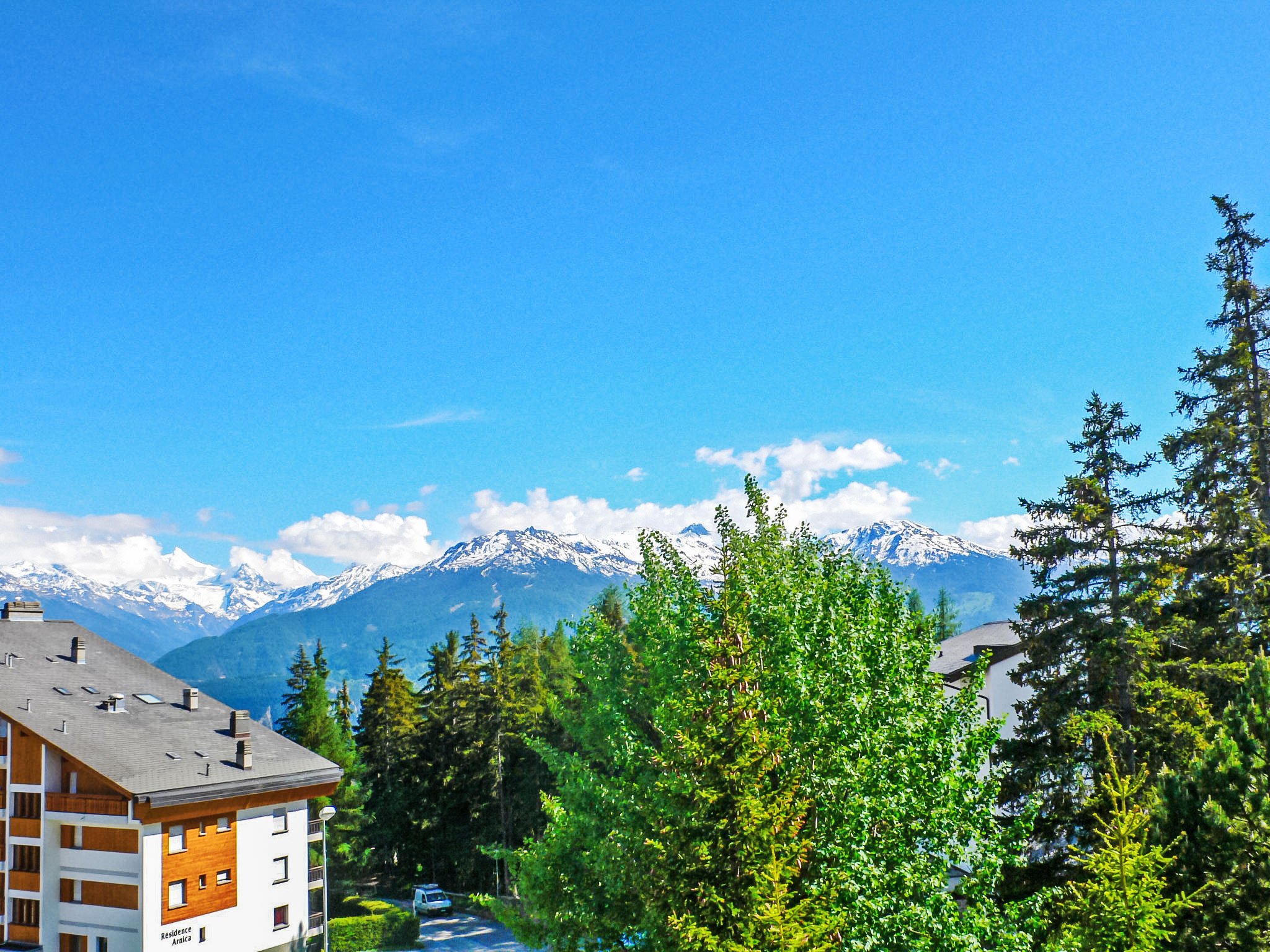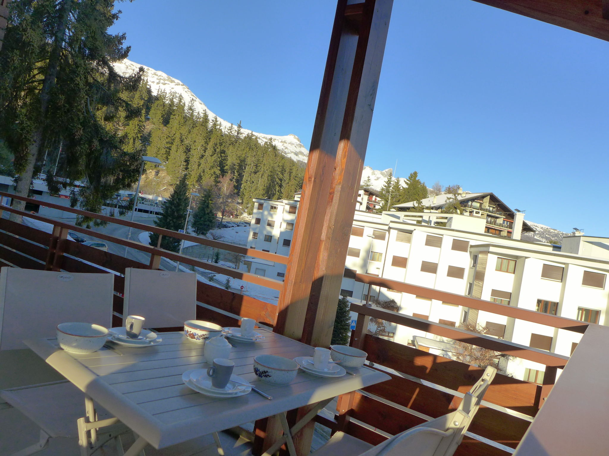 Komfortable Residenz "Tsaumiau A". Oberhalb von Montana, im Ortsteil Violettes, 1.5 km vom Zentrum von Montana, 2.1 km vom See, 100 m vom Skigebiet, Richtung Osten. In der Anlage: Fahrstuhl, Skiraum, Zentralheizung, Waschmaschine, Wäschetrockner (zur Mitbenutzung, extra). Parkplatz (überdacht) beim Haus in 150 m Gemeinschaftsgarage. Einkaufsgeschäft 1.5 km, Supermarkt 1.6 km, Restaurant 1.5 km, Bäckerei 250 m, Bushaltestelle "télé Violettes" 200 m, Bahnstation "Funiculaire Montana Gare" 1.1 km, Badesee "Moubra" 2.8 km, See Grenon 2.1 km. Golfplatz (18 Loch) 3.9 km, Skisportanlagen, Skipisten, Skiverleih 100 m, Skibushaltestelle 200 m. Bekannte Seen in der Umgebung sind gut erreichbar: Lac de la Moubra 2.8 km, Etang Long 3.7 km. Bitte beachten: Gratis Skibus. Weitere Unterkünfte sind buchbar.