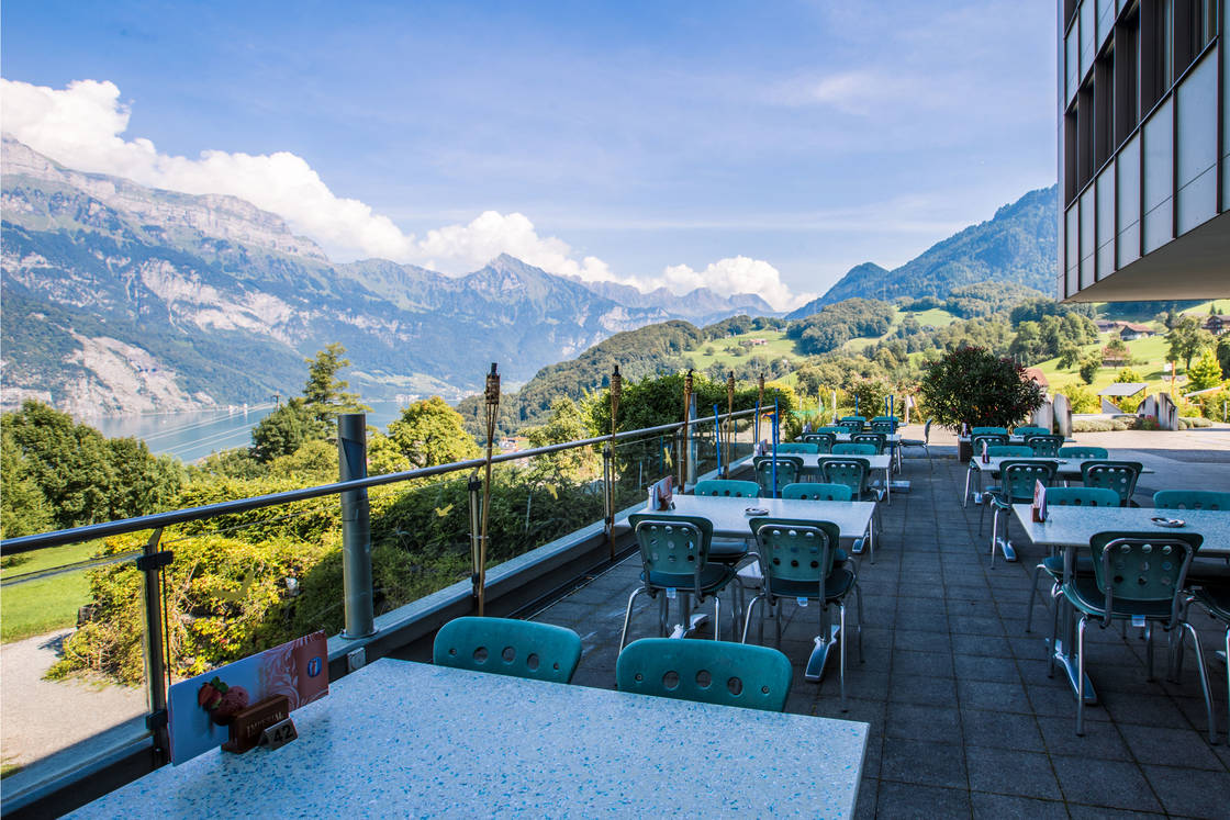 Hoch schwebend über dem Walensee mit atemberaubendem Panoramablick auf die Churfirstenkette befindet sich eine Hotelwelt mit 59 Gästezimmern und 6 Apartments, Panoramaterrasse, Restaurant, einer kleinen Vitalitätsoase, einem Konzertsaal und Seminar- und Tagungszentrum. Eine Kapelle vollendet den Segensort. Mit gratis-WLAN die technischen Geräte und durch imposante Aussichten auf See und Berge die Lebensbatterien aufladen und Sternstunden geniessen. Während Sie am Balkon eine zarte Ferienbrise umweht, Sie ein Naturschauspiel ins Staunen versetzt, verschwindet der Alltag am Horizont. Tauchen Sie ein in unsere Wohlfühlwelt und geniessen Sie Stille und die Qualität von Rückzug und Abgeschiedenheit. Zeit für imposante Aussichten. Alle unsere Zimmer und Apartments sind mit Balkon und See- und Bergsicht sowie mit Bad/Dusche/WC, WLAN und TV ausgestattet. 59 moderne und gemütliche Hotelzimmer mit stylishen Akzenten. Stilvolle Materialien sorgen für Behaglichkeit und Atmosphäre. BIKEHOTEL HEIDILAND: Das Hotel Neu-Schönstatt ist mit dem Gütesiegel "Bikehotel Heidiland" ausgezeichnet. Radfahrer profitieren hier von einem abschliessbaren Abstellraum, einer zweckmässig eingerichteten Werkstatt, einem Waschplatz, einem Wäscheservice und weiteren Dienstleistungen.