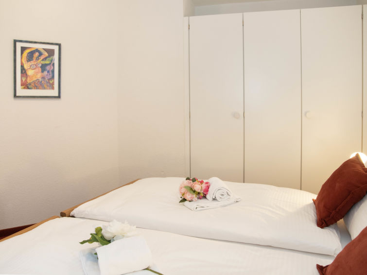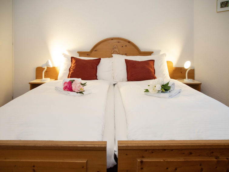 3-Zimmer-Wohnung 57 m2 im 2. Stock, Südlage. Wohn-/Esszimmer mit Kabel-TV (Flachbildschirm). 2 Doppelzimmer. Offene Küche (Backofen, Geschirrspüler, 4 Glaskeramikplatten, Toaster, Wasserkocher, elektrische Kaffeemaschine). Bad/WC. Balkon, Südlage. Terrassenmöbel. Schöne Sicht auf die Berge und Eiger. Zur Verfügung: Haartrockner. Internet (Wireless LAN, gratis). Bitte beachten: Nichtraucher-Unterkunft. Maximal 1 Haustier/Hund erlaubt. Ein Fondue Set (Fleisch oder Käse) sowie ein Raclette Ofen kann an der Rezeption ausgeliehen werden.