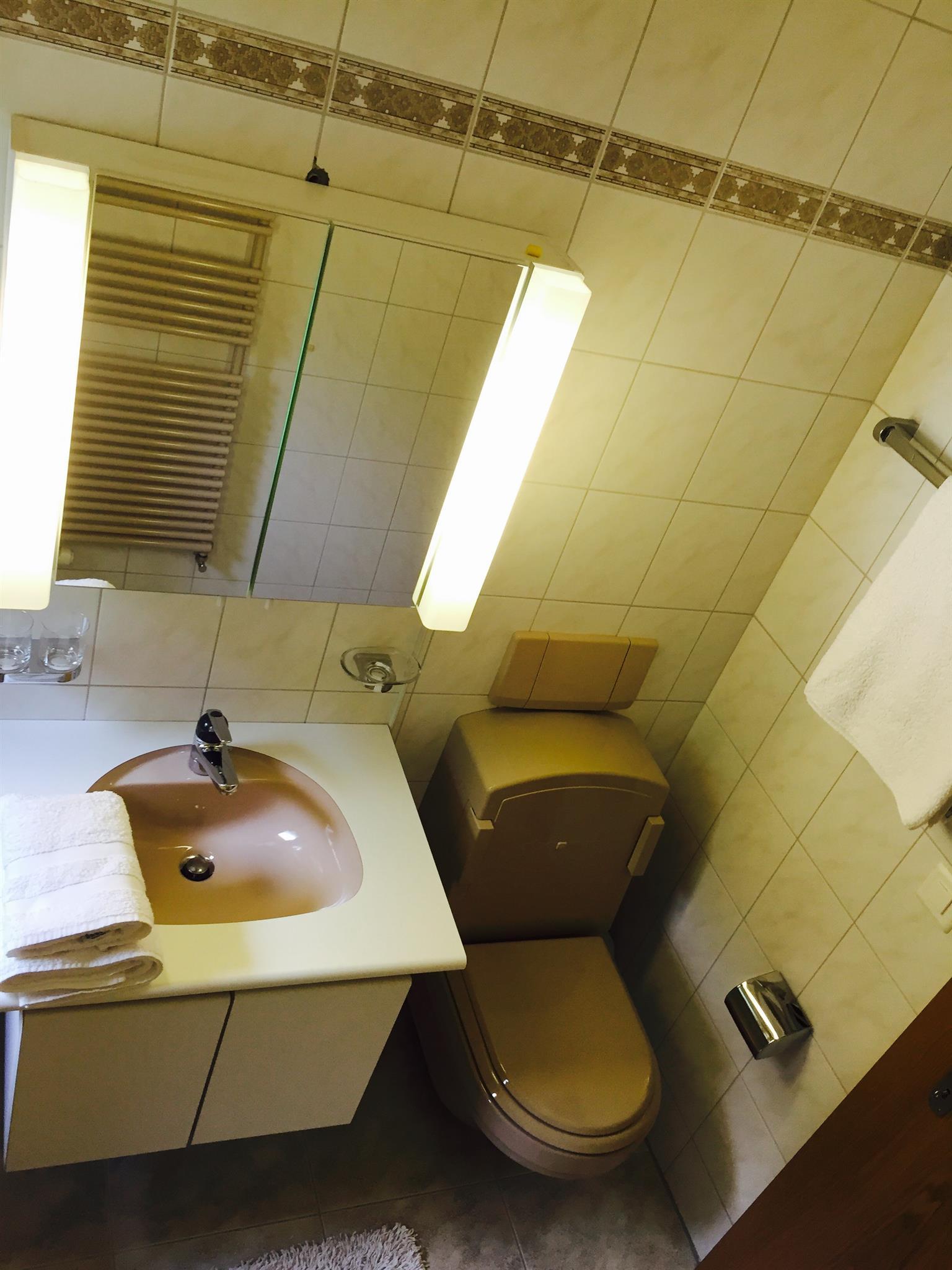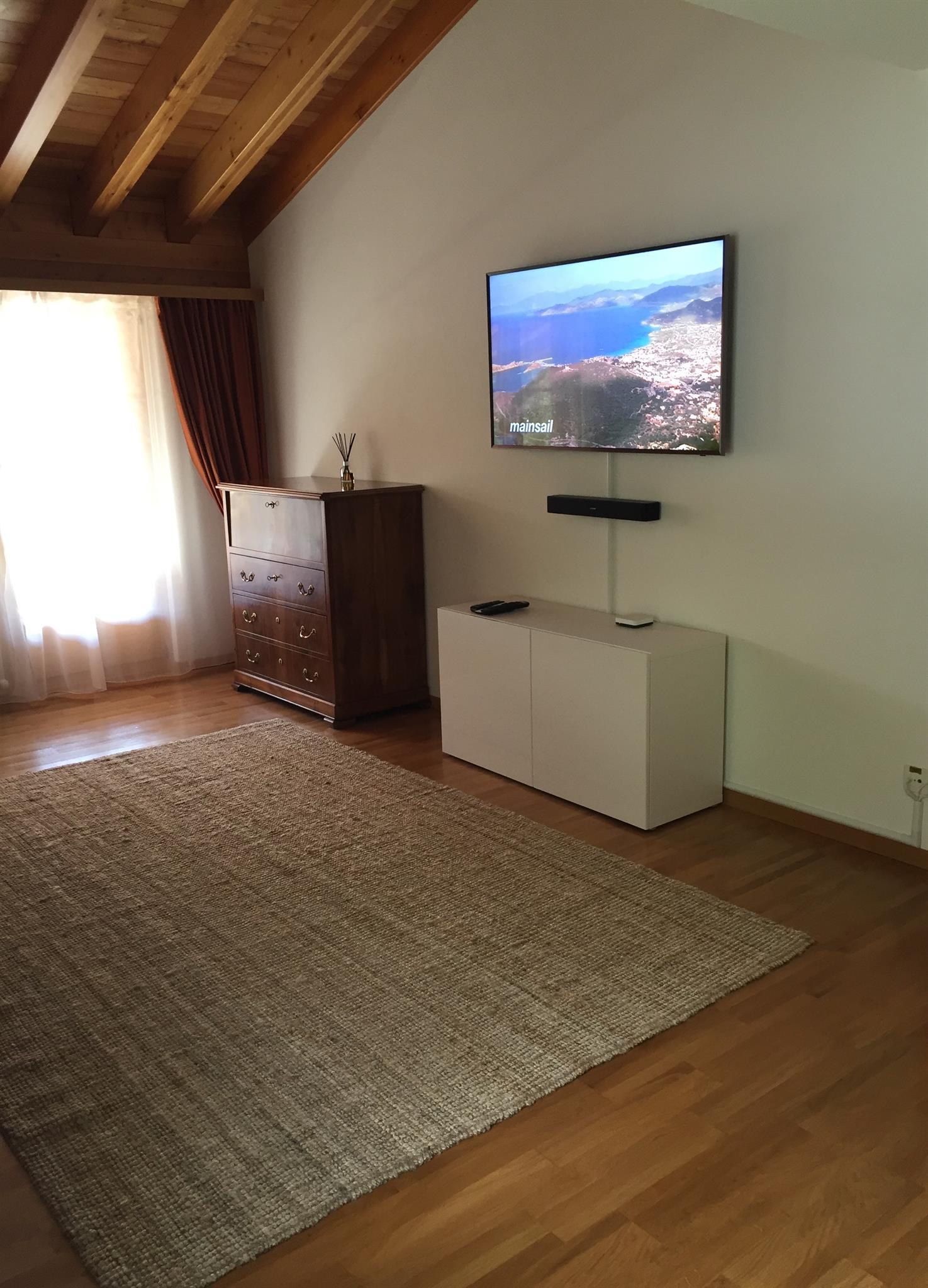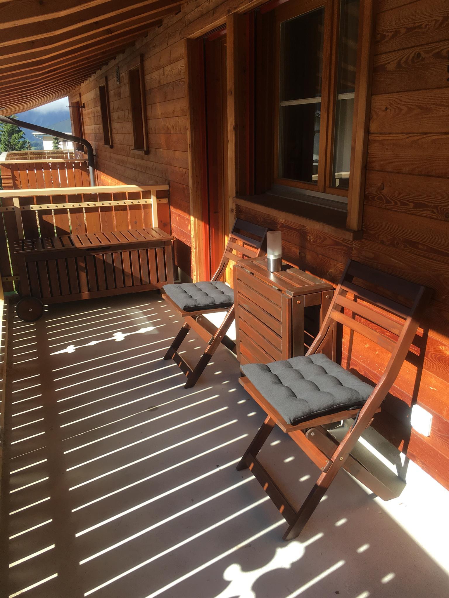 1-Zimmerwohnung (28m2) in der 4. Etage: Wohn-/Ess-/Schlafzimmer mit 2 Schrankbetten, Flat-TV, gratis W-Lan, BlueTooth Sound-System, offene Küche mit Geschirrspüler, Bad/WC, Nord-West-Balkon mit Panorama-Aussicht auf die Berge. Garage im Haus inklusive. Haustiere sind nicht erlaubt. Nichtraucher-Wohnung.