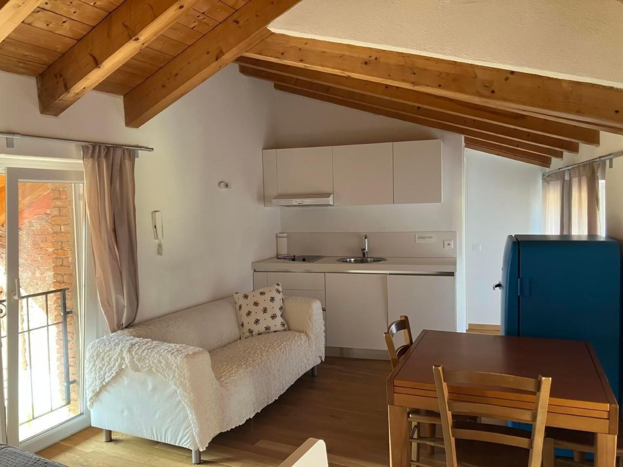 Das Innere des Hauses erweist sich als eine Oase des Komforts und des Stils. Die erste Wohnung erstreckt sich über zwei Etagen: In der unteren Etage erwartet die Gäste ein helles Wohnzimmer mit Sofa und Essecke, eine gut ausgestattete Küche, die an eine Terrasse grenzt, auf der man in Ruhe speisen kann, sowie ein Gästebad. Auf der oberen Etage erwartet Sie ein Schlafzimmer mit Doppelbett, Ankleidezimmer, privatem Balkon und einem Badezimmer mit Badewanne. Auf der dritten Ebene befindet sich ein zweites Studio mit sichtbaren Balken, einem Wohnzimmer mit Doppelbett, einer kleinen Küche und einem Badezimmer mit Dusche, alles sehr schön eingerichtet.