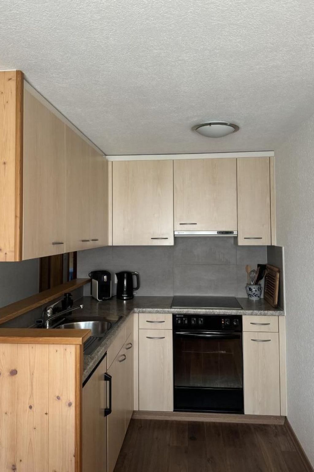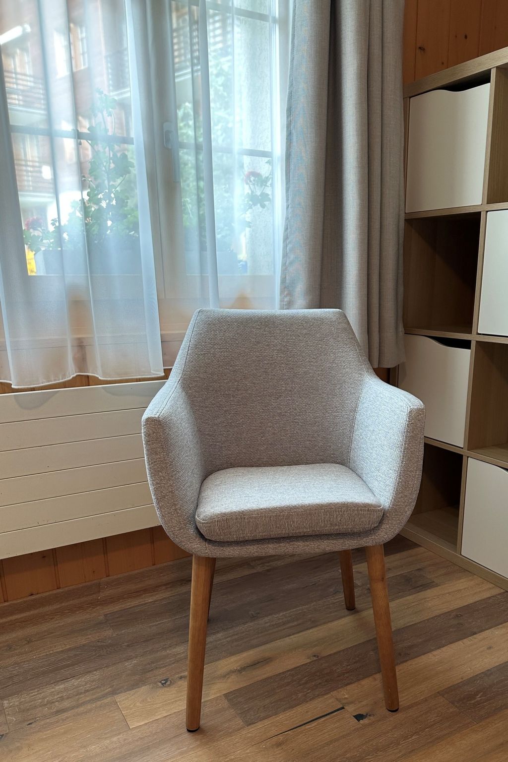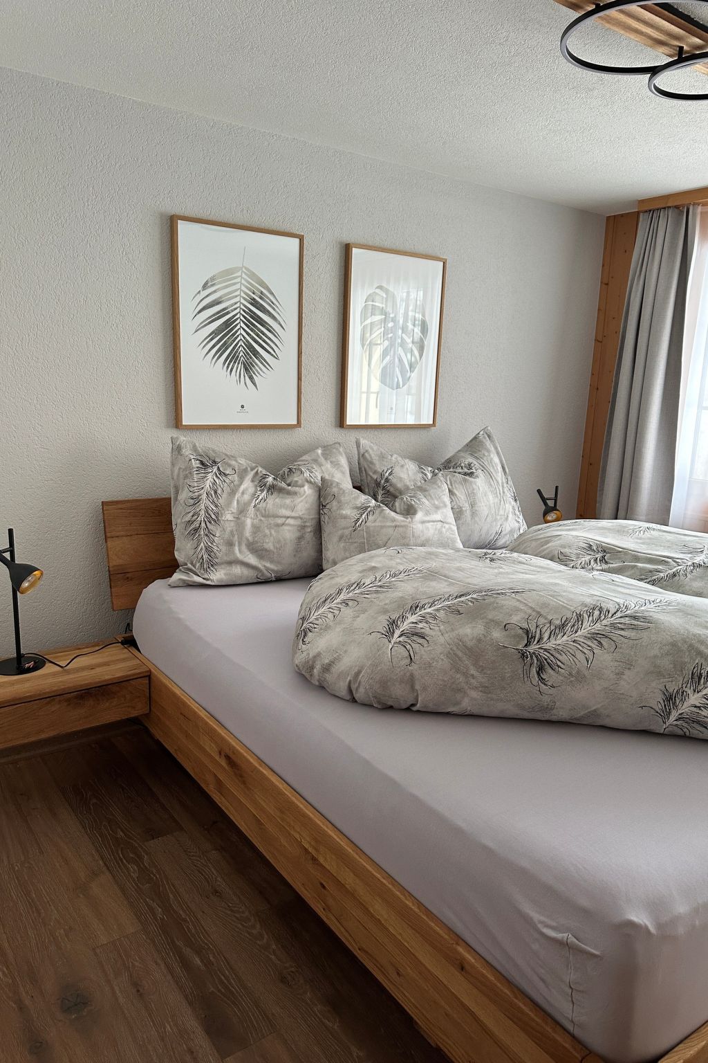 Innen besticht die Wohnung durch eine hochwertige Ausstattung, die keine Wünsche offenlässt: Eine gut ausgestattete Küche mit Glaskeramik-Kochfeld, Kühlschrank, Backofen sowie einer Auswahl an Kaffeemaschinen (Filter und Kapsel), einem Wasserkocher, einem Käsefondue-Set und einem Raclette Ofen. Im Wohnzimmer lädt eine bequeme Lederpolstergruppe zum Entspannen ein, ergänzt durch Stoffsessel, Beistelltische, Swisscom TV und WLAN. Die Schlafzimmer sind einladend gestaltet, eines mit einem Doppelbett, das andere mit zwei Einzelbetten, die zu einem großen Bett kombiniert werden können, neben praktischen Kleiderständern und Nachttischen.