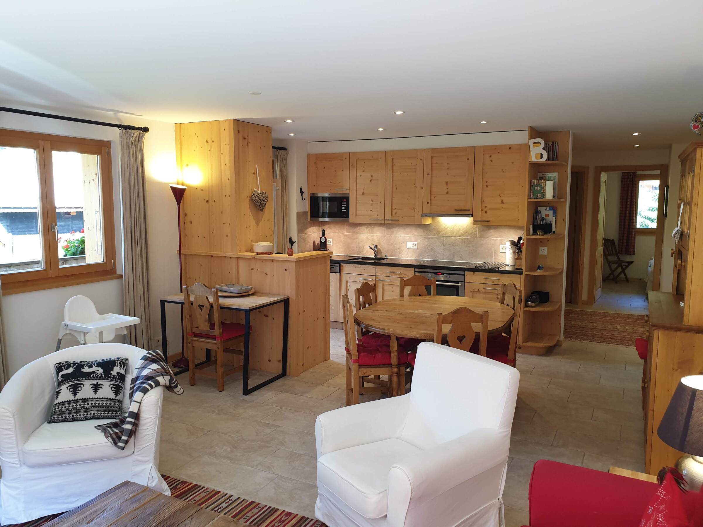 - Séjour avec tv et poêle à bois - Wifi - Coin cuisine avec lave-vaisselle - Balcons côtés sud, ouest et nord - 2 places de parc intérieures no. 4 - Box Ski - Disposition des lits (3 chambres, wc-bain, wc-douche) : - 1 chambre à 1 lit pour 2 personnes = 2 - 1 chambre à 2 lits pour 1 personne = 2 - 1 chambre à 1 lit étage : 2 personnes = 2