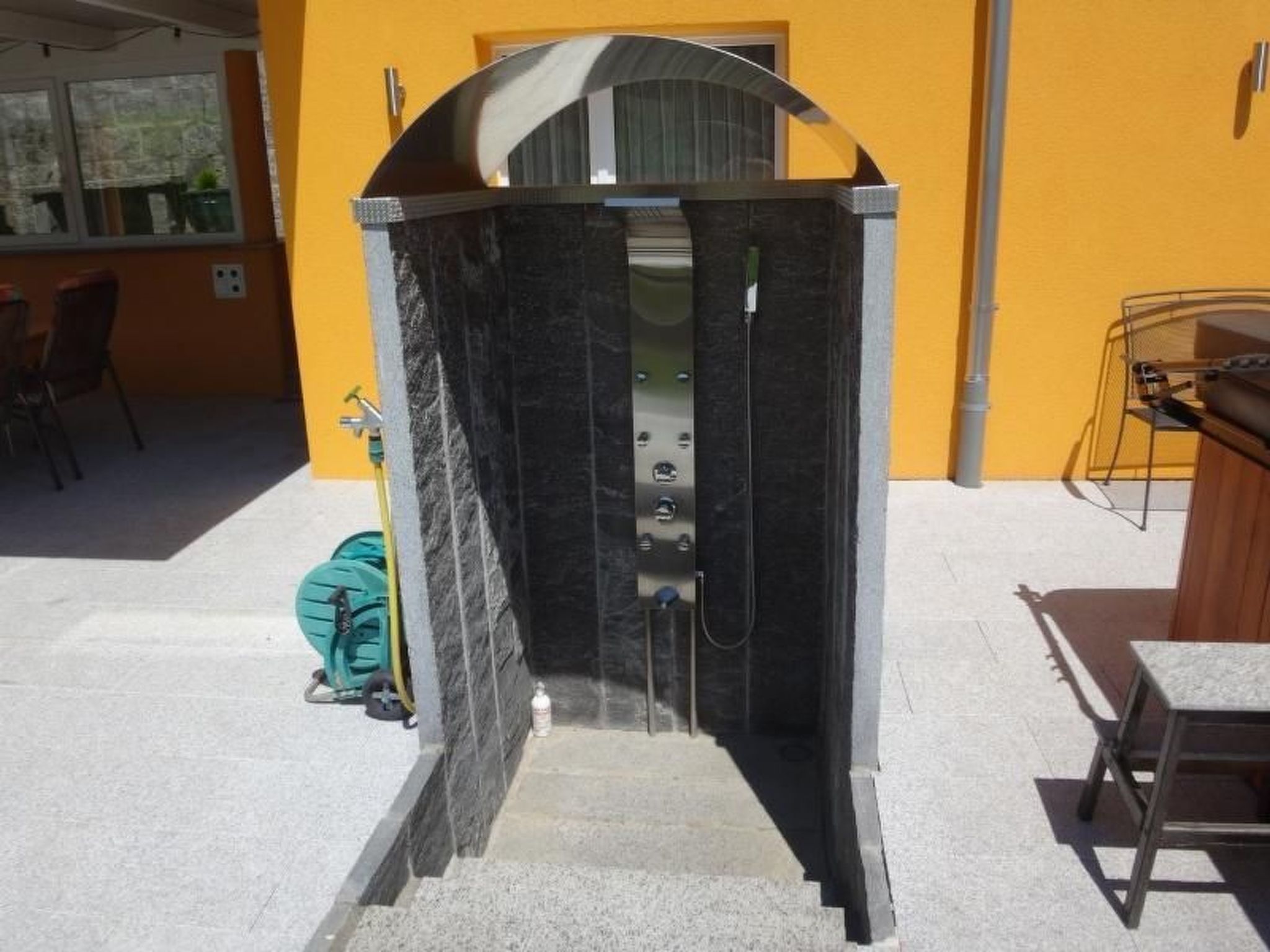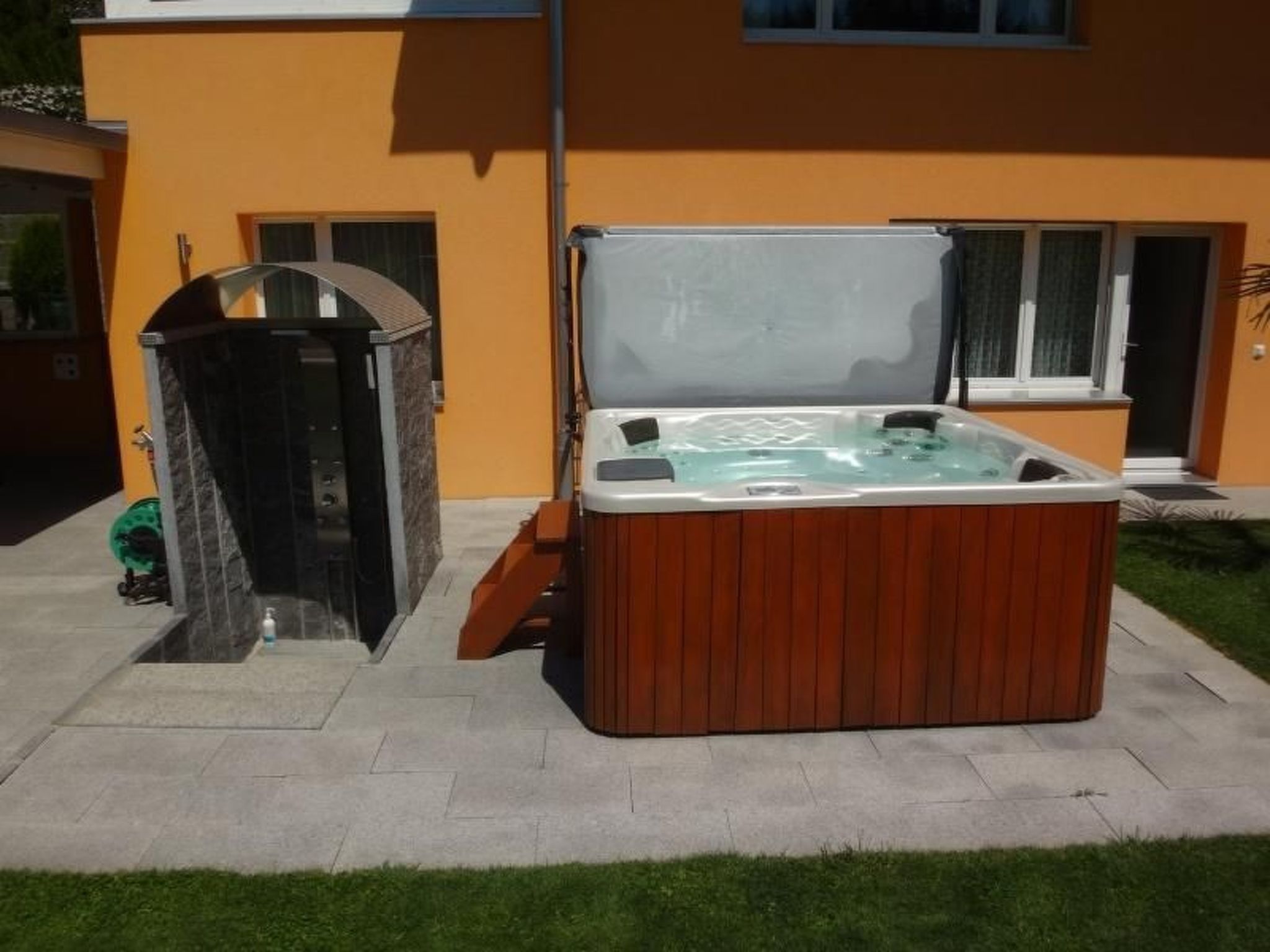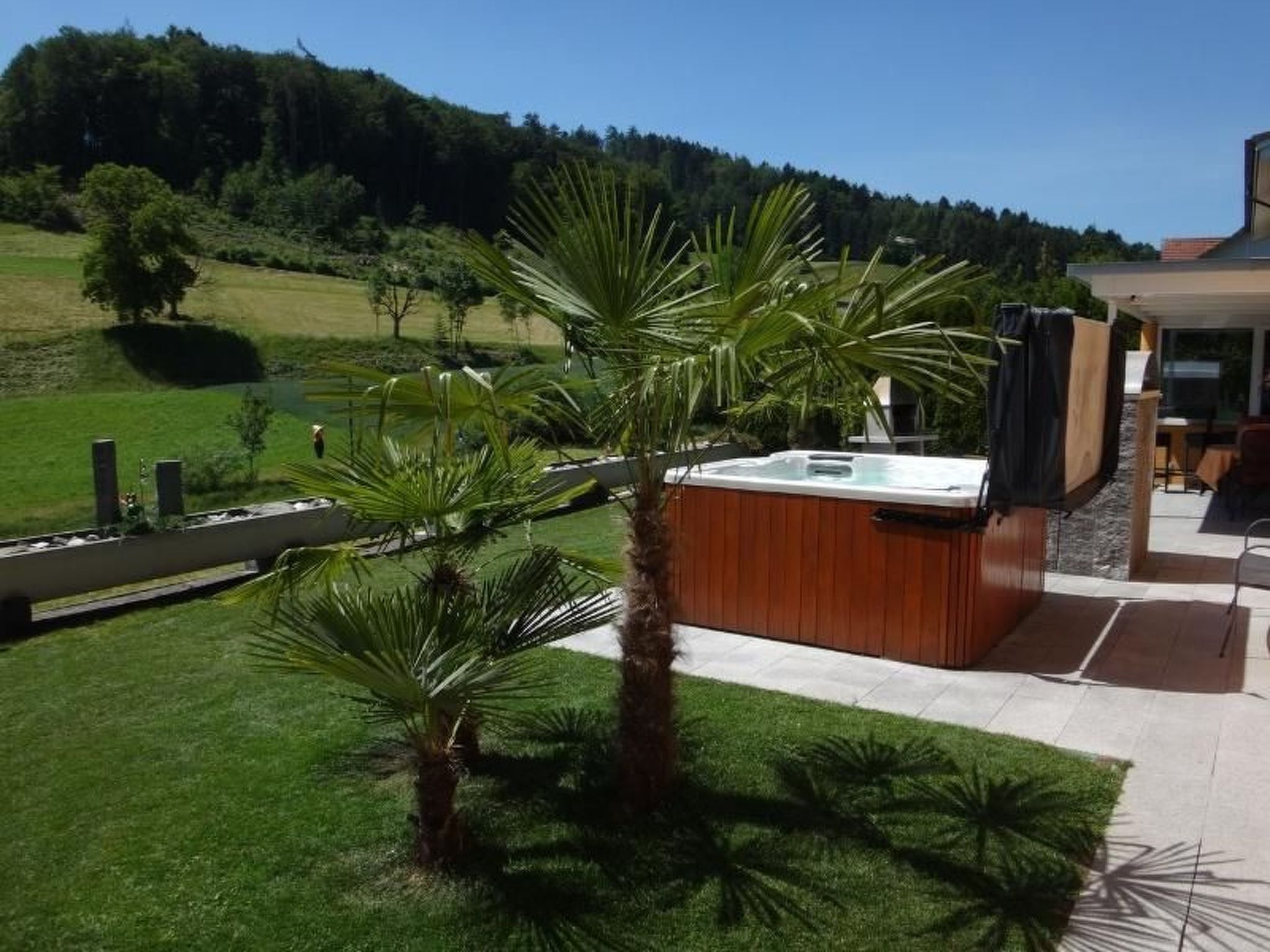 Moderne Ferienwohnung mit aussen Whirlpool (ganz jährig benutzbar - geheizt, von 8.00 bis 22.00 Uhr) und Erlebnis-Dusche (April - Oktober benutzbar) mit Sonnen-Terrasse gedeckter Sitplatz und herrlicher Aussicht auf Wald und Wiesen vom Schlafzimmer, Wohnzimmer, Sitzplatz oder vom Whirlpool aus. Eine richtige Wohlfühloase.