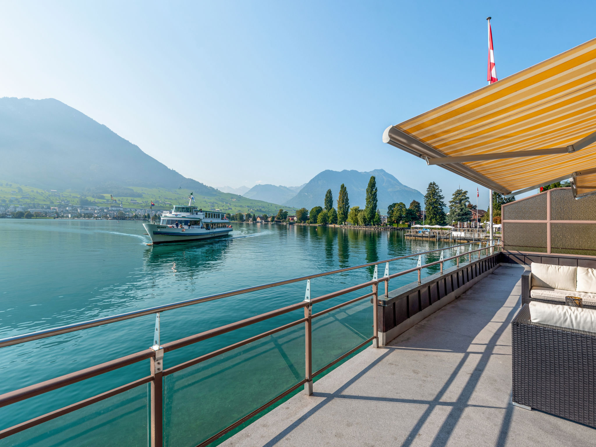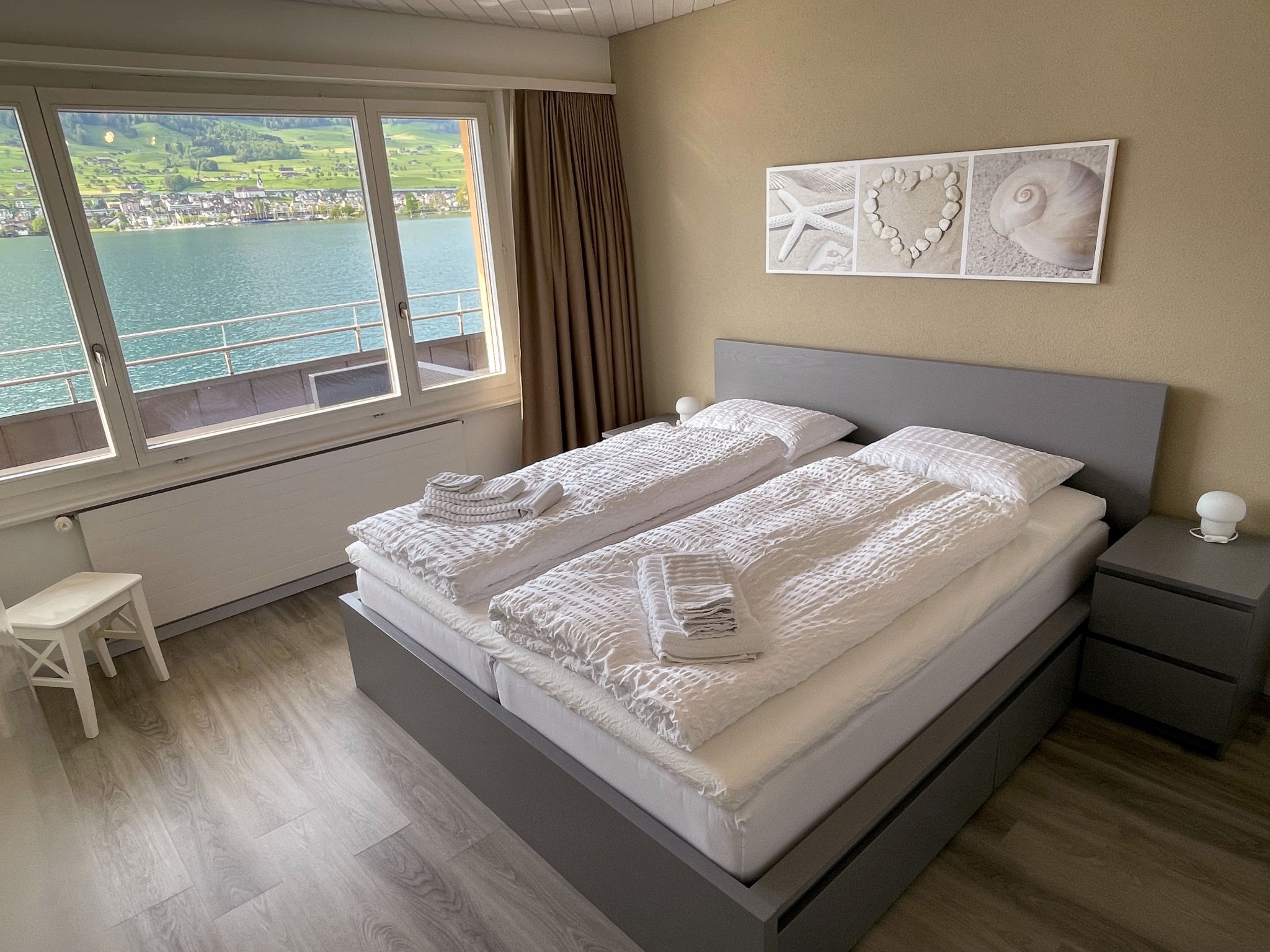 Gemütliches, komfortables Einfamilienhaus "Seestern direkt am See". Am Ortsrand, ruhige, sonnige Lage, direkt am See. Zur Mitbenutzung: Liegewiese 50 m2 (eingezäunt). Badesteg Badeplatz. Im Hause: Zentralheizung. Motorboot (auf Anfrage). Zufahrt bis zum Haus. Parkplatz (für 2 Autos) beim Haus. Einkaufsgeschäft, Lebensmittelgeschäft 300 m, Supermarkt 1 km, Restaurant 50 m, Bushaltestelle 300 m, Bahnstation 4 km, Steinstrand 5 m, Freibad 1 km, See Vierwaldstättersee 5 m. Luftseilbahn 5 km, Skilift 5 km, Skischule 5 km, Kinderspielplatz 500 m. Nahe gelegene Sehenswürdigkeiten: Stanserhorn 5 km. Bekannte Skigebiete sind gut erreichbar: Klewenalp 5 km, Engelberg 20 km. Bekannte Seen in der Umgebung sind gut erreichbar: Vierwaldstättersee. Schiffsstation Ennetbürgen 50m entfernt. Einkaufsladen Volg auch sonntags geöffnet. Motorboot: Das Ferienhaus Seestern hat ein Bootshaus. Exklusiv für die Feriengäste besteht die Möglichkeit, das Motorboot (2021) während des Aufenthalts dazu zu mieten: Morningstar M 498 R für 5 Personen (Führerschein Kat. A), Aussenbord-Motor: Suzuki DF 80 ATL, Badeplattform, vollkasko-versichert. Depot CHF 500.00 (Versicherungs-Selbstbehalt), exkl. Benzin. Für Gäste ohne Schiffsführerschein besteht die Möglichkeit einen Halbtagesausflug zu buchen. Kontaktieren Sie bitte den Gastgeber bei Erhalt der Reiseunterlagen. Das Boot ist ganzjährig zu fahren.