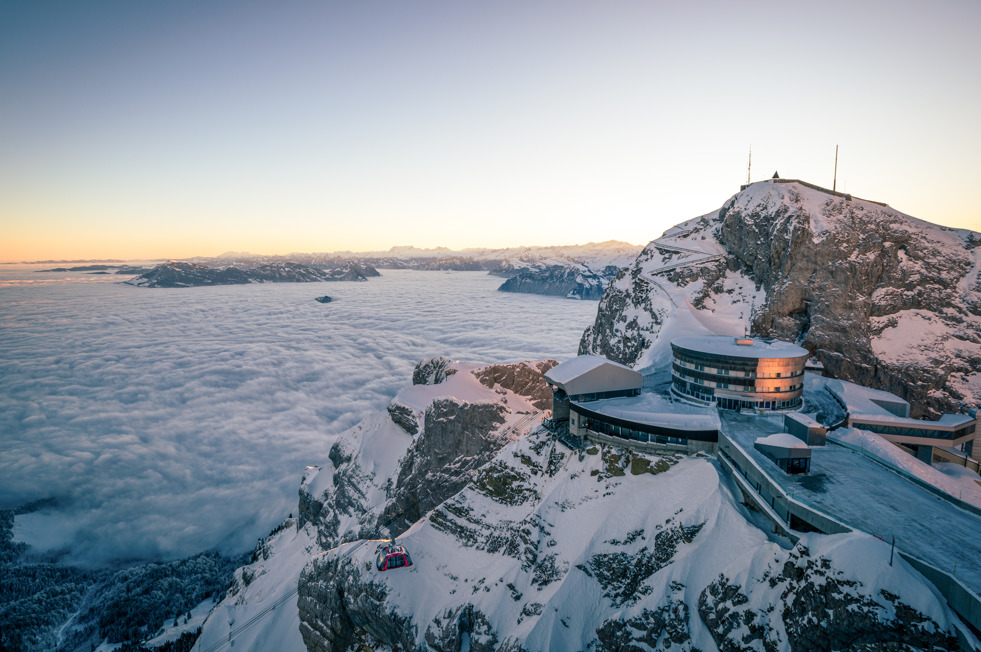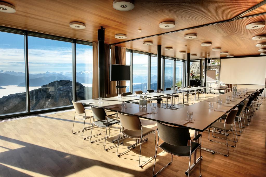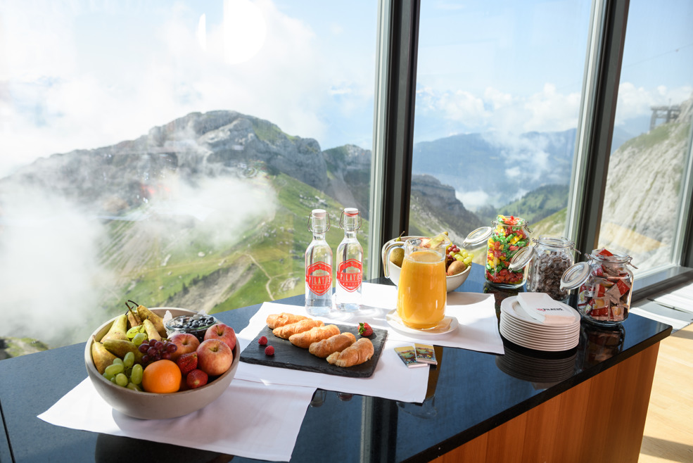 Nirgendwo leuchten die Sterne intensiver und sind die Sonnenaufgänge spektakulärer als auf Pilatus Kulm. So nah bei Luzern und doch in einer ganz anderen Welt. Das historische Berghotel Pilatus-Kulm**** wurde 1890 erbaut und 2010 komplett saniert. Es verfügt über 27 Superior Doppelzimmer und 3 Junior Suiten, alle mit atemberaubender Sicht auf das Alpenpanorama. Weitere 15 Standard Doppelzimmer befinden sich im Hotel Bellevue***. Im modernen Business Center bieten die lichtdurchfluteten Veranstaltungsräume auf 2‘132 Meter über Meer Platz für Events bis 160 Personen. Die deckenhohen Panoramafenster bieten einen atemberaubenden Blick auf die Alpen, die einen bleibenden Eindruck hinterlassen. Runden Sie Ihr Gipfelerlebnis mit einem gemütlichen Abendessen ab und lassen Sie sich am nächsten Morgen sanft vom fantastischen Sonnenaufgang wecken. Die Berghotels Pilatus-Kulm**** und Bellevue*** thronen auf dem Gipfel des Hausbergs von Luzern auf 2132 Meter über Meer. Erklimmen Sie den Gipfel entweder von der Talstation in Alpnachstad mit der steilsten Zahnradbahn der Welt in 30 Minuten oder von Kriens/Luzern aus per Gondelbahn. Beide Talstationen sind über die Autobahn einfach zu erreichen.