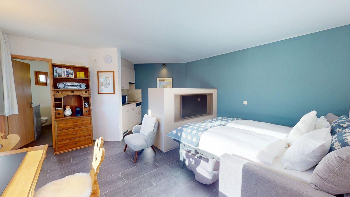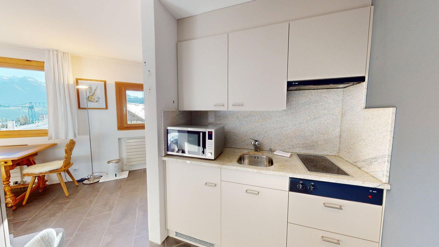 Stilvoll eingerichtete 1-Zimmerwohnung im Hochparterre. Das liebevoll gestaltete Wohn- und Esszimmer ist mit hochwertigen Möbeln sowie einem komfortablen Sofabett ausgestattet und bietet ein gemütliches Ambiente. Von der Terrasse aus geniessen Sie eine atemberaubende Aussicht auf St. Moritz und die umliegende Berglandschaft. Die Wohnung verfügt über eine kleine, gut ausgestattete Küche, ein Bad mit Badewanne und Dusche sowie eine eigene Waschmaschine. Ein Garagenplatz ist ebenfalls vorhanden.