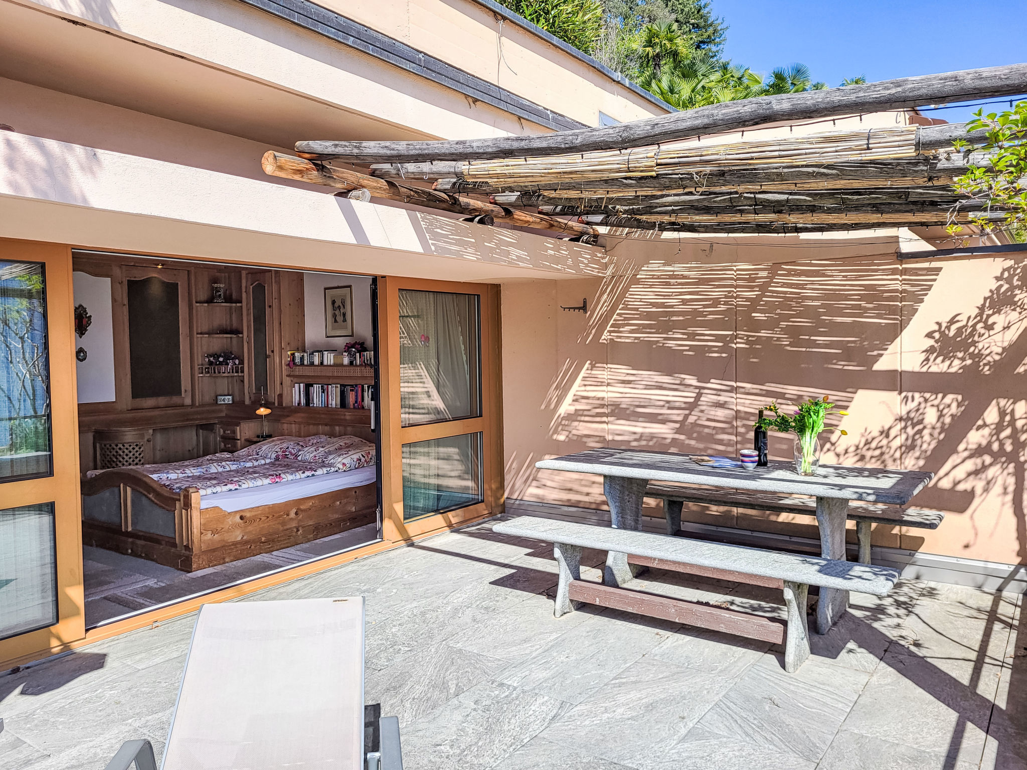 Orselina 2 km von Locarno: Schönes Terrassenhaus "Terrazzo Prato Pernice", auf 4 Stockwerken, umgeben von Bäumen und Feldern. Oberhalb von Orselina, in einem Weiler, ruhige, sonnige Lage, 50 m vom Waldrand, 3 km vom See, im Grünen, Richtung Süden. Zur Mitbenutzung: Schwimmbad eckig (10 x 20 m, saisonale Verfügbarkeit: 01.Mai. - 25.Okt.) mit Innentreppe und Rollladenabdeckung. Im Hause: Einstellraum für Fahrräder, Zentralheizung. Zufahrt bis zum Haus. Treppenweg (20 Stufen) bis zum Haus. Parkplatz Nr. 09/12 (für 2 Autos, überdacht) beim Haus. Lebensmittelgeschäft 300 m, Supermarkt 2 km, Restaurant, Bäckerei 300 m, Straßenbahn "Madonna del Sasso (Li.2620" 500 m, Bushaltestelle "Orselina Albergo (Li.3)" 500 m, Bahnstation "Seilbahn Cardada-Cimetta" 700 m, Thermalbad "Termali & Salini, Locarno" 3 km. Jacht-Hafen 3 km, Golfplatz (18 Loch) 5 km, Segelschule 3 km, Tennishalle 3 km, Minigolf 3 km, Wanderwege ab Haus 50 m, Luftseilbahn 600 m, Sessellift 3 km. Nahe gelegene Sehenswürdigkeiten: Madonana del Sasso, Orselina, Isole di Brissago, Falconeria, Kamelienpark, Piazza Grande, Monte Verità. Bekannte Seen in der Umgebung sind gut erreichbar: Lago Maggiore, Lago di Sambuco. Wandergebiete: Cardada Cimetta, Vallemaggia - Valle Verzasca, Bré sopra Locarno. Objekt geeignet für 4 Erwachsene + 2 Kinder. Der Besitzer akzeptiert keine Jugendgruppen.