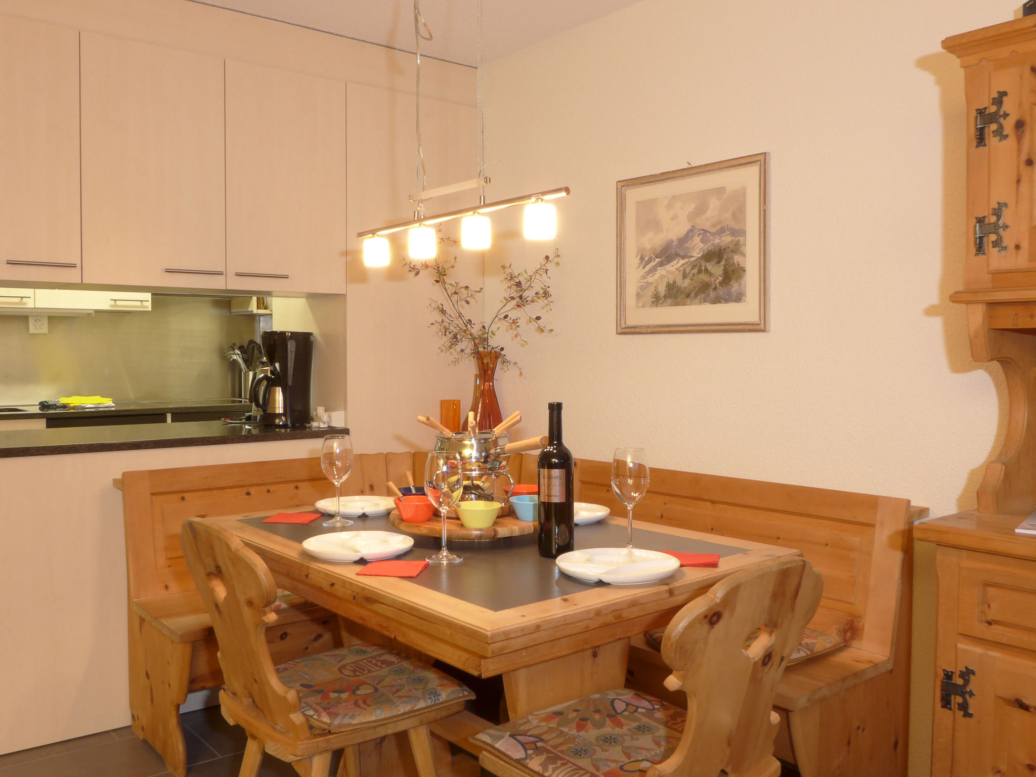 "Schoneggacher Apt. S", 3-Zimmer-Wohnung 67 m2 im 1. Stock, Südlage. Hell, modern und gemütlich eingerichtet: Wohn-/Esszimmer 23 m2 mit Kabel-TV (Flachbildschirm), Stereoanlage und DVD. Ausgang zum Balkon. 1 Doppelzimmer mit 1 Doppelbett (180 cm, Länge 200 cm). Ausgang zum Balkon. 1 Zimmer mit 2 Betten (90 cm, Länge 210 cm), sep. WC, Dusche/WC und Doppelwaschbecken. Offene Küche (Backofen, Geschirrspüler, 4 Glaskeramikplatten, Toaster, Wasserkocher, elektrische Kaffeemaschine, Kapseln für die Kaffeemaschine (Nespresso) extra, Racletteofen, Fondue Set (Chinoise, Käse)). Heizung. Natursteinboden. Balkon 7 m2, Balkon 3 m2, Südlage. Herrliche Panoramasicht auf die Berge und die Skipiste. Zur Verfügung: Internet (Wireless LAN, gratis). Bitte beachten: geeignet für Familien. Nichtraucher-Unterkunft.