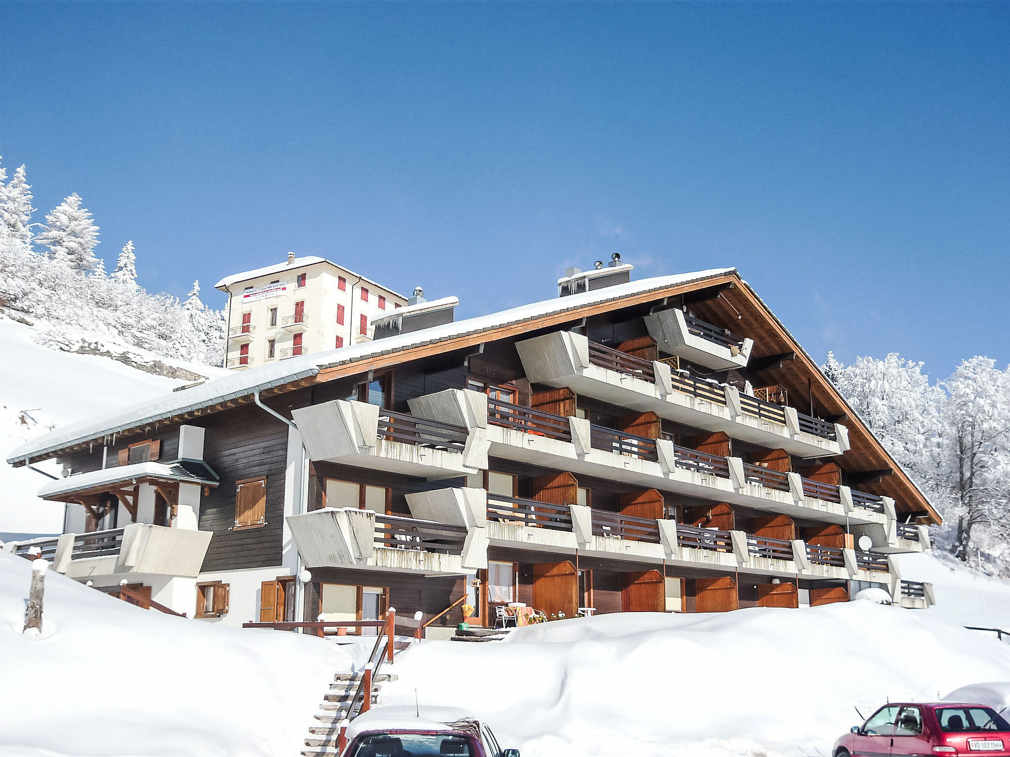 Les Petites Roches: Chalet "Licorne". Am Ortsrand, 3 km vom Zentrum, sonnige Lage, Richtung Süden. Im Hause: Skiraum, Zentralheizung, Waschmaschine (extra) (zur Mitbenutzung). Öffentliche Parkplätze 20 m. Einkaufsgeschäft 3 km, Restaurant 100 m, Bushaltestelle 500 m, Bahnstation 3 km, Freibad 500 m, Hallenbad 2 km, Thermalbad 20 km. Tennis 3 km, Sportzentrum 3 km, Skisportanlagen 2 km, Skischule 2 km, Kinderskischule 2 km, Langlaufloipe 2 km, Eisfeld 8 km. Bitte beachten: Fahrzeug empfohlen. Das Chalet liegt im oberen Teil der Residenz.