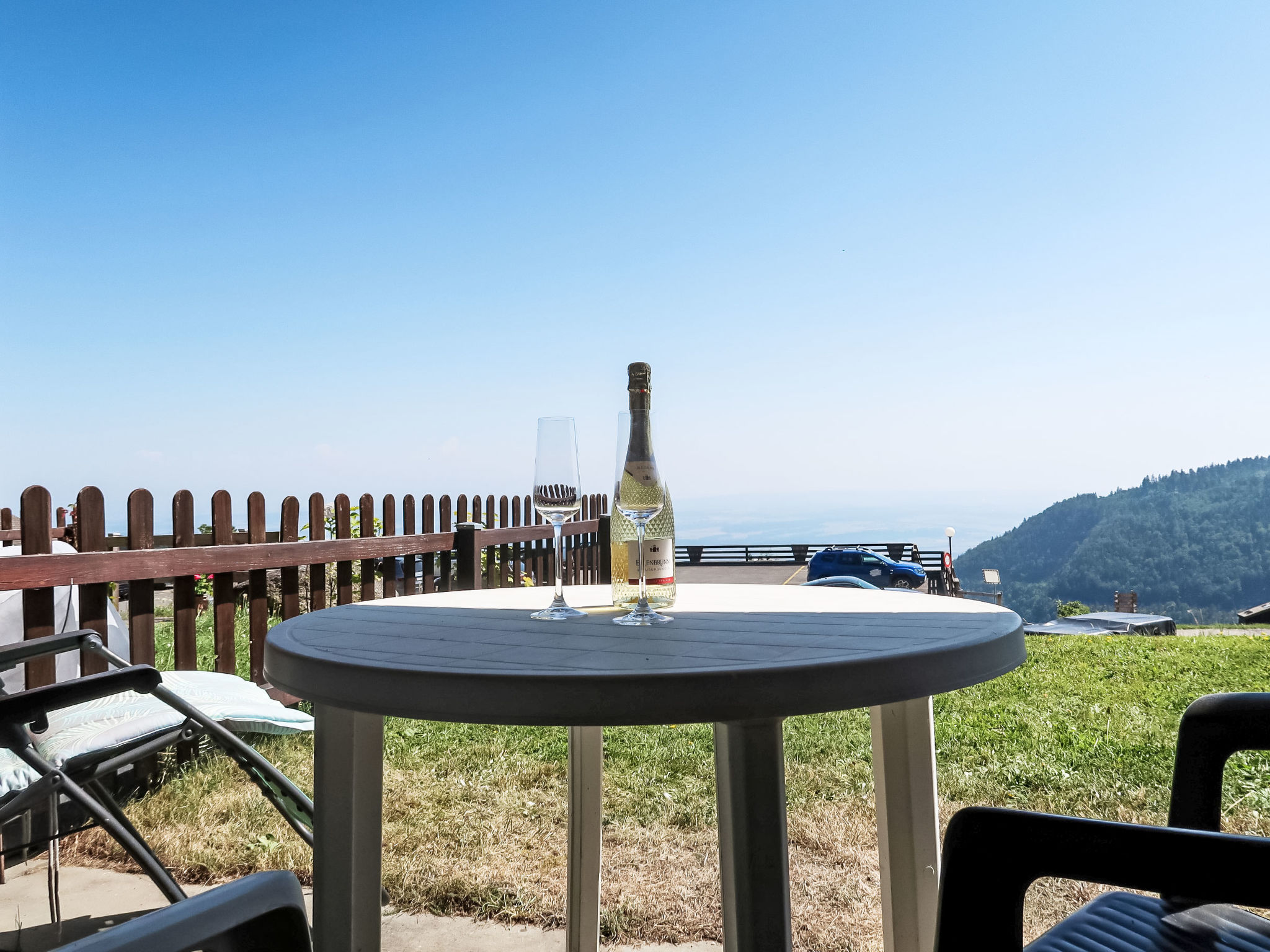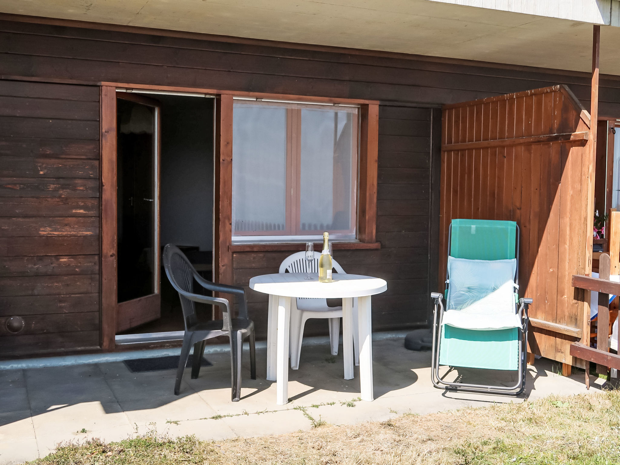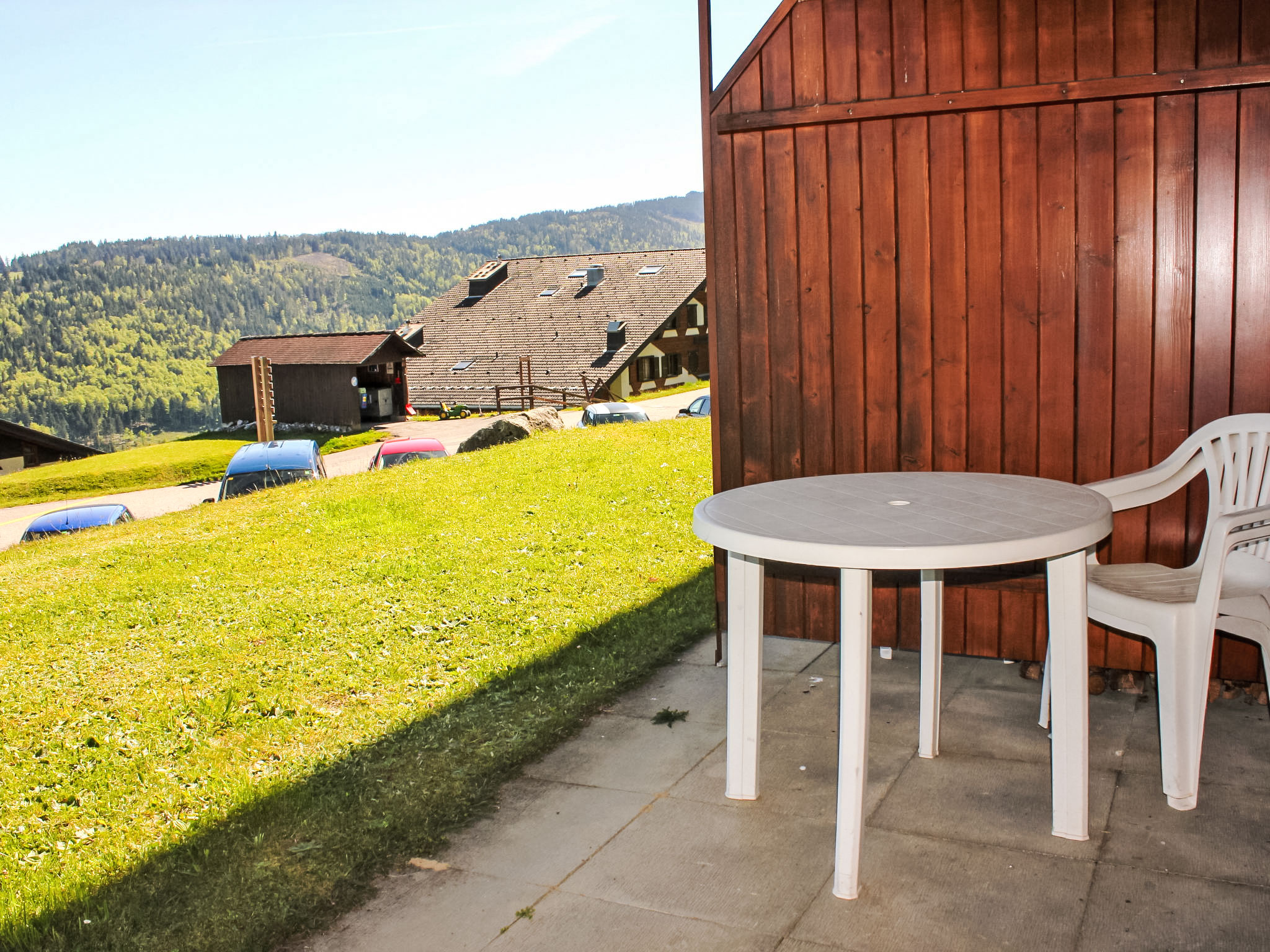 1-Zimmer-Wohnung 25 m2, im Erdgeschoss, Südlage. Zweckmässig eingerichtet: Wohn-/Schlafzimmer mit 1 Diwanbett (150 cm, Länge 190 cm), offenem Kamin (nur Deko), Esstisch. Ausgang zum Gartensitzplatz. Kochnische (4 Kochplatten, Backofen, Wasserkocher, Mikrowelle, Fondue Set (Käse)). Bad/WC. Heizung. Südlage, kleiner Gartensitzplatz. Terrassenmöbel. Schöne Sicht auf die Berge und das Tal. Zur Verfügung: Babybett bis 2 Jahre (extra). Parkplatz.