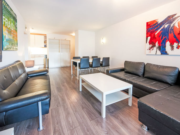 "Wildhorn 222", 2-Zimmer-Wohnung 59 m2 im 2. Stock. Komfortabel und geschmackvoll eingerichtet: Wohn-/Schlafzimmer mit 1 Diwanbett (80 cm, Länge 200 cm), TV. Ausgang zum Balkon. 1 Zimmer mit 1 Doppeldiwanbett (2 x 90 cm, Länge 190 cm). 1 kleines Zimmer, ohne Fenster mit 1 x 2 Etagenbetten (90 cm, Länge 190 cm). (Geschirrspüler, 3 Glaskeramikplatten, Kombinationsmikrowelle). Dusche/WC. Balkon, Ostlage. Balkonmöbel. Sehr schöne Sicht auf die Berge und das Tal. Zur Verfügung: Internet (Wireless LAN, extra). Bitte beachten: Nichtraucher-Unterkunft.