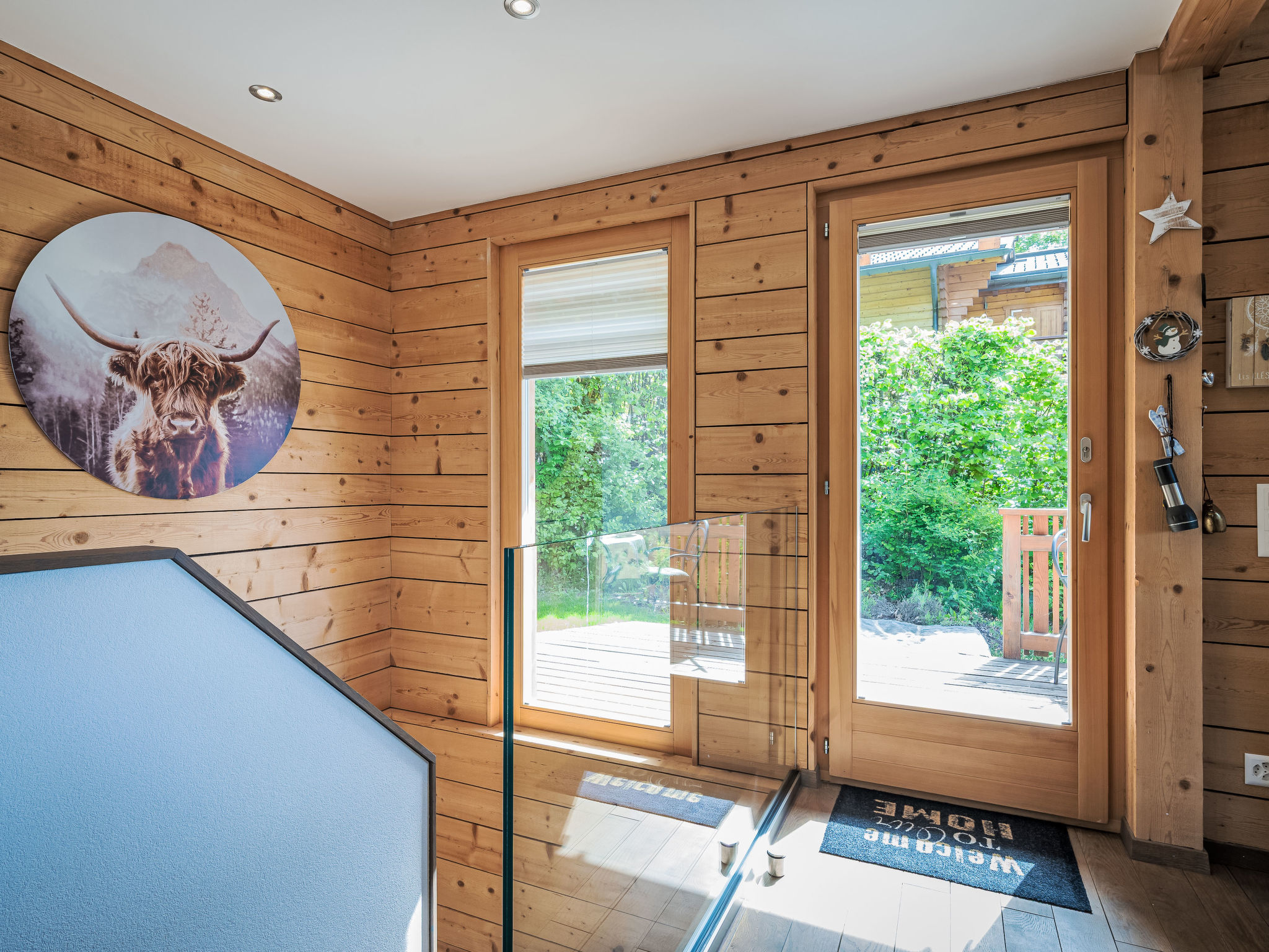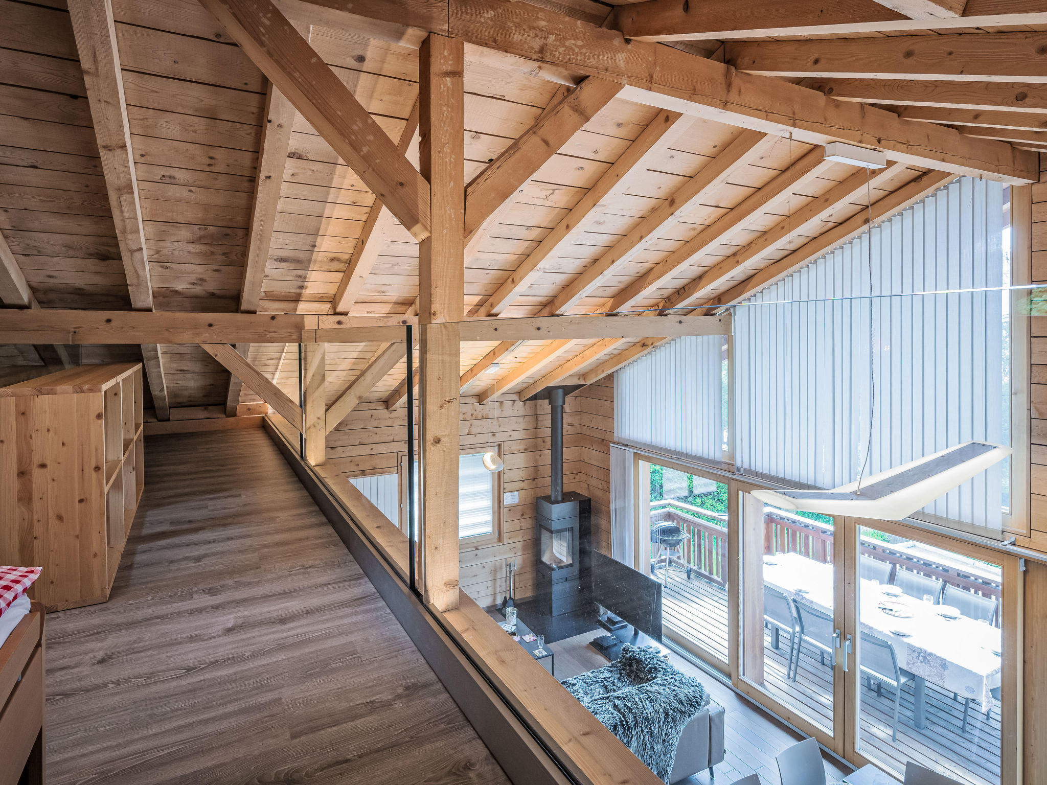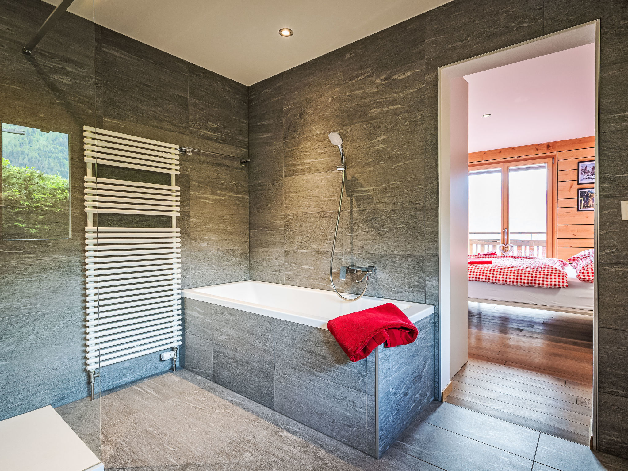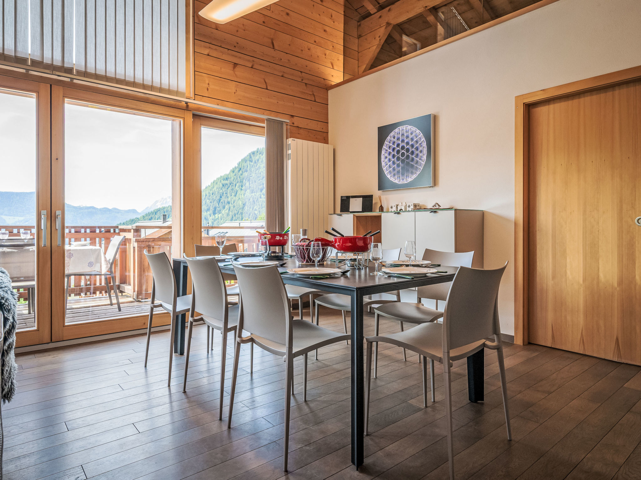 "L'Eden", 5-Zimmer-Chalet 150 m2 auf 3 Stockwerken, Südlage. Hell, renoviert im Jahre 2019, komfortabel und modern eingerichtet: Wohn-/Esszimmer mit Schwedenofen, Kabel-TV, Radio und CD. Ausgang zum Garten, zum Balkon. 1 Zimmer mit 1 franz. Bett (160 cm, Länge 200 cm), Bad/Dusche/WC und Kabel-TV. Ausgang zum Balkon. Offene Küche (Backofen, Geschirrspüler, 4 Induktionskochplatten, Wasserkocher, Mikrowelle, Tiefkühler, elektrische Kaffeemaschine, Kapseln für die Kaffeemaschine (Nespresso) extra, Racletteofen, Kochinsel, Fondue Set (Käse)). Sep. WC. Unteres Geschoss: 1 Zimmer mit 1 franz. Bett (160 cm, Länge 200 cm). Ausgang zur Terrasse. 1 Zimmer mit 1 franz. Bett (160 cm, Länge 200 cm). Ausgang zur Terrasse. Dusche/WC. Dachgeschoss: (steile Treppe) abgeschrägte, offene Galerie mit 2 Betten (90 cm, Länge 200 cm). Grosser Balkon, Südlage, kleine Terrasse, Ostlage, grosse Terrasse, Südlage, Garten 350 m2, Nordlage. Balkonmöbel, Gartengrill (mobil), Liegestühle (3). Sehr schöne Sicht auf die Berge, das Tal und die Landschaft. Zur Verfügung: Waschmaschine, Wäschetrockner, Haartrockner. Internet (Wireless LAN, gratis). Parkplatz (4 Autos), Garage, Höhe 210 cm, Breite 250 cm. Bitte beachten: Nichtraucher-Haus.
