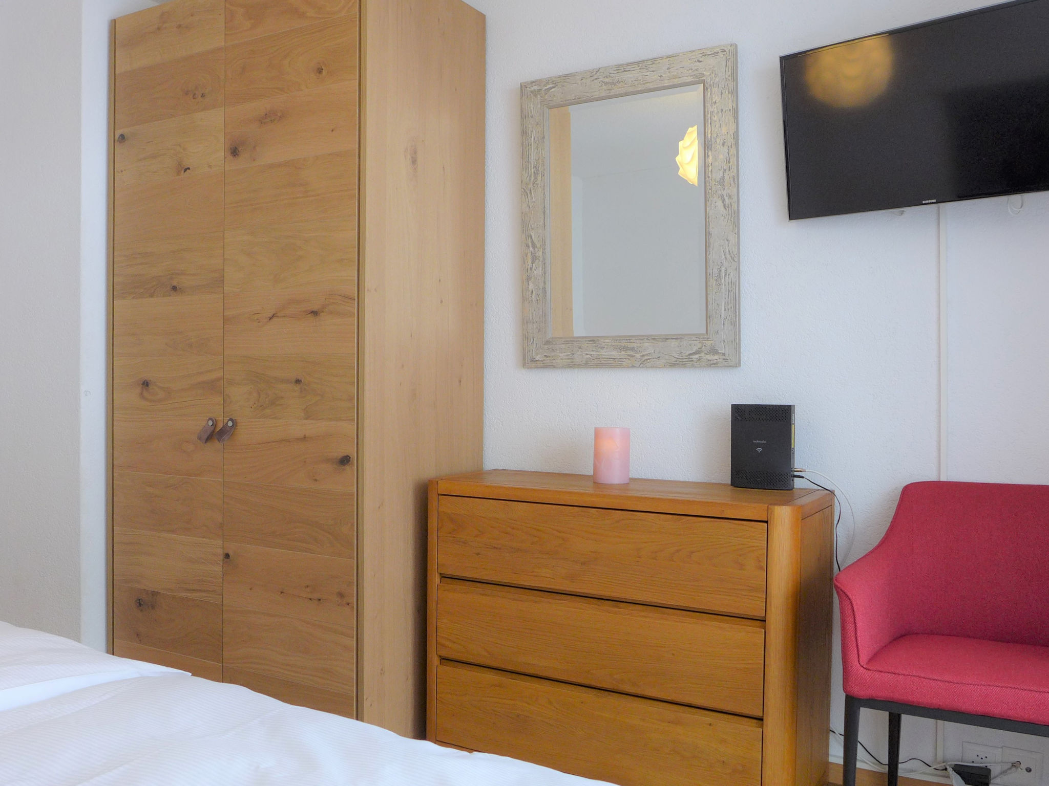 2-Zimmer-Wohnung 51 m2, im Obergeschoss. Renoviert im Jahre 2019, schön und gemütlich eingerichtet: Wohn-/Esszimmer mit 1 Doppeldiwanbett (145 cm, Länge 200 cm), Kabel-TV und Radio. Ausgang zur Terrasse, Richtung Süden und Richtung Westen. 1 Zimmer mit 1 Doppelbett (2 x 90 cm, Länge 200 cm), TV. Ausgang zum Balkon, Richtung Süden und Richtung Westen. Offene Küche (Backofen, Geschirrspüler, 4 Glaskeramikplatten, Toaster, Wasserkocher, Mikrowelle, Tiefkühler, elektrische Kaffeemaschine, Racletteofen, Fondue Set (Chinoise, Käse)). Bad/WC. Balkon 9 m2, Südlage und Westlage, grosse Terrasse 29 m2, Südlage und Westlage. Terrassenmöbel. Schöne Sicht auf die Berge und das Matterhorn. Zur Verfügung: Haartrockner. Internet (Wireless LAN). Bitte beachten: Nichtraucher-Unterkunft. Maximal 1 Haustier/Hund erlaubt.