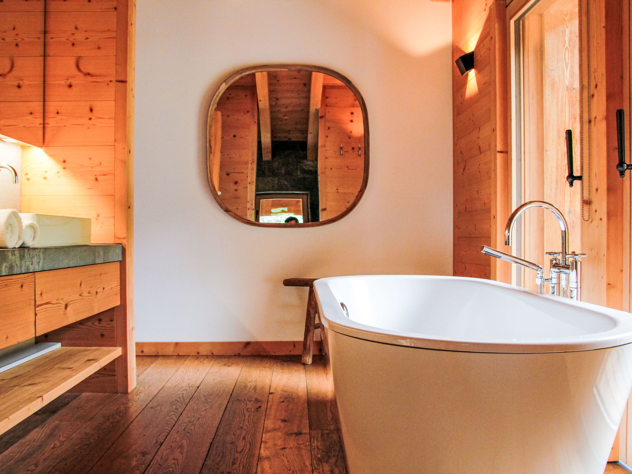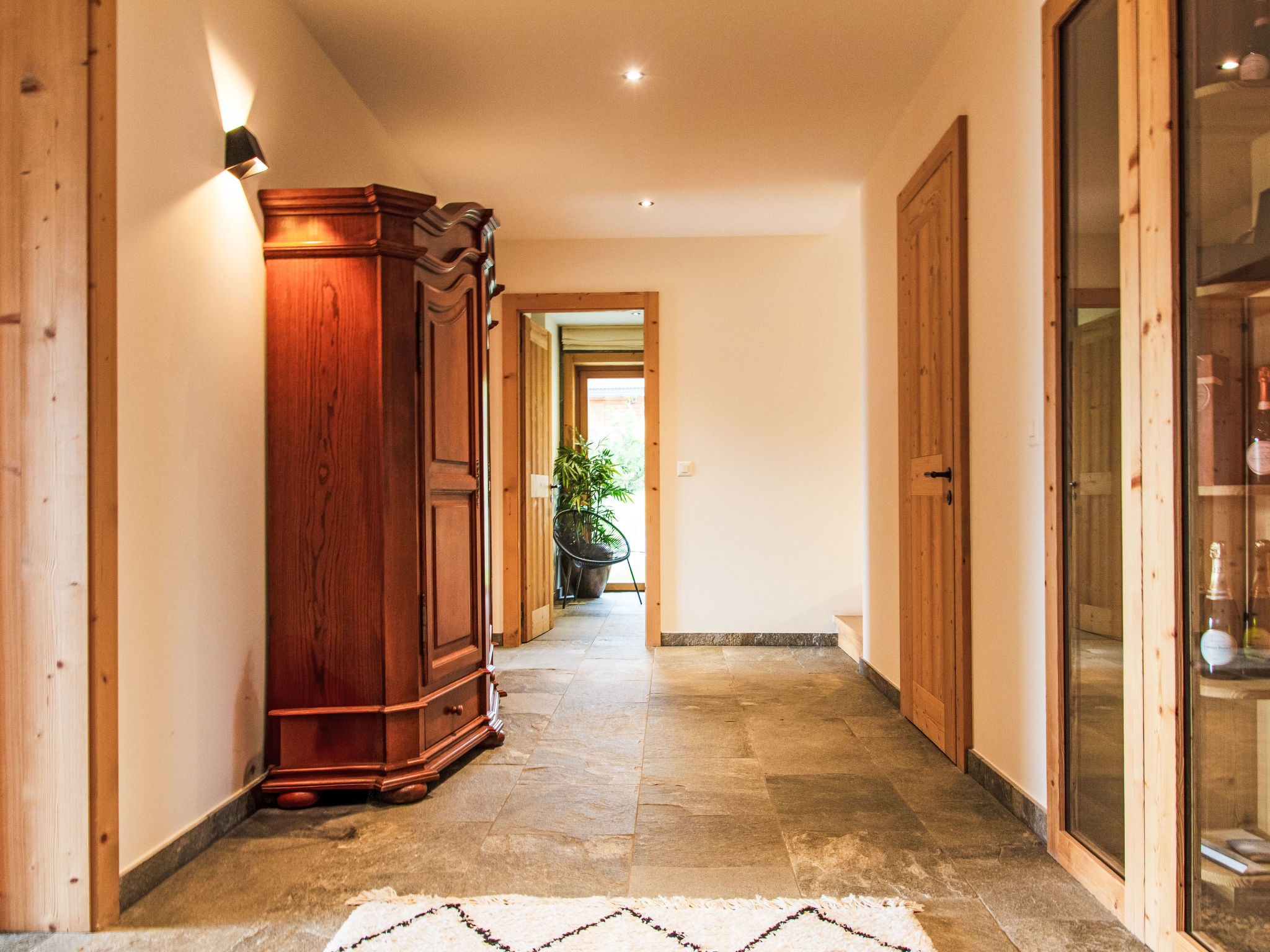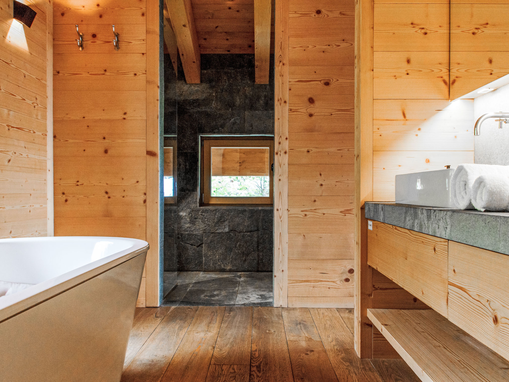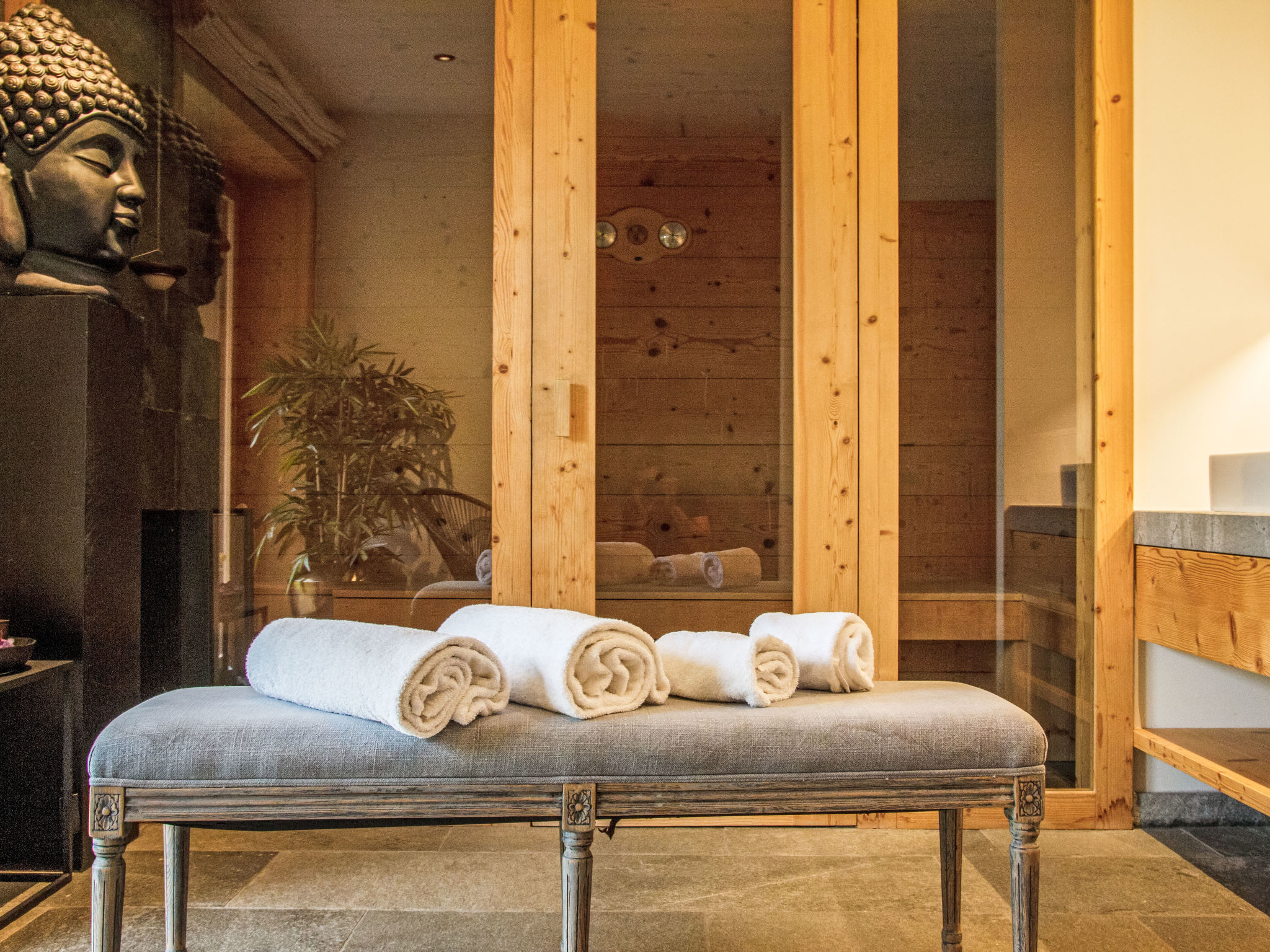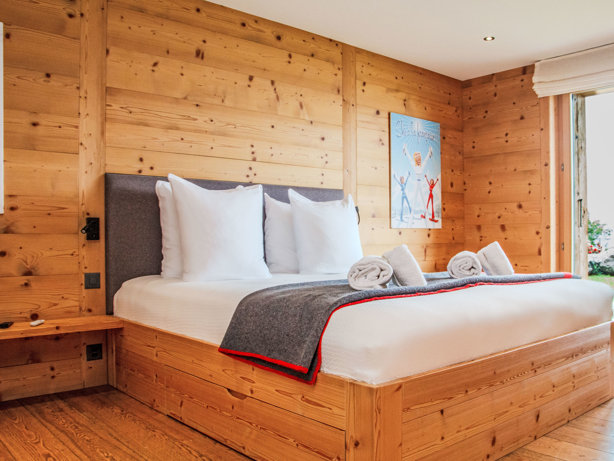"Chalet Gerritsen", 6-Zimmer-Chalet 280 m2 auf 3 Stockwerken, Nordwestlage. Geräumig und hell, modern und luxuriös eingerichtet: Eingang mit sep. WC. Grosses Wohn-/Esszimmer mit offenem Kamin, Kabel-TV, Stereoanlage und Heimkino. Ausgang zur Terrasse, Richtung Norden und Richtung Westen. Grosse, offene Küche (Backofen, Geschirrspüler, 5 Flammen, Toaster, Wasserkocher, Mikrowelle, Tiefkühler, elektrische Kaffeemaschine, Racletteofen, Kochinsel, Fondue Set (Käse)). Ausgang zur Terrasse. Fussbodenheizung. Unteres Geschoss: 1 Zimmer mit 1 franz. Bett (180 cm, Länge 200 cm), Bad/Bidet/WC und Kabel-TV. Ausgang zum Garten. 1 Zimmer mit 1 x 2 Etagenbetten (90 cm, Länge 200 cm), Kabel-TV. Ausgang zum Garten. 1 Zimmer mit 1 franz. Bett (180 cm, Länge 200 cm), Dusche/WC. Ausgang zum Garten. Dusche/WC, Sauna. Obergeschoss: offenes Büro. 1 Zimmer mit 1 franz. Bett (180 cm, Länge 200 cm), Bad/Dusche/WC, Doppelwaschbecken und Kabel-TV. Ausgang zum Balkon, Richtung Norden und Richtung Süden. Parkettboden. Grosse Terrasse, Nordlage und Westlage, grosser Garten. Terrassenmöbel, Gartengrill, Liegestühle (2). Herrliche Sicht auf die Berge und das Tal. Zur Verfügung: Waschmaschine, Wäschetrockner, Kinderhochstuhl, Babybett, Haartrockner. Internet (WLAN, gratis). Parkplatz (2 Autos), im Winter in 50 m. Bitte beachten: Nichtraucher-Unterkunft. Maximal 1 Haustier/Hund erlaubt.