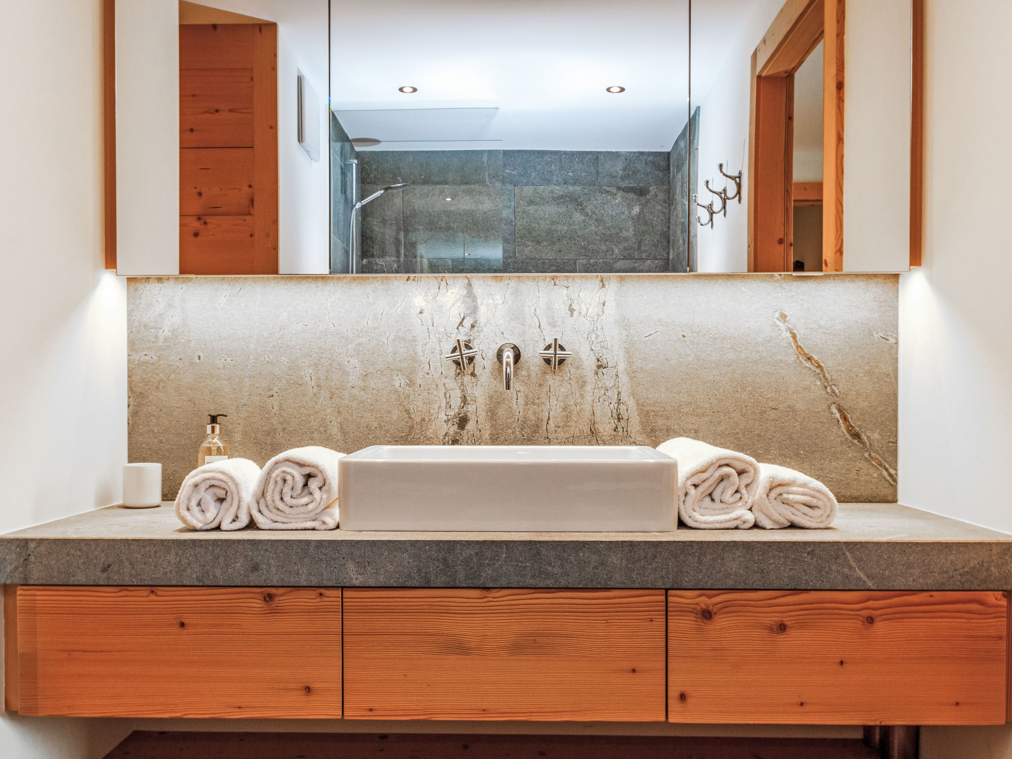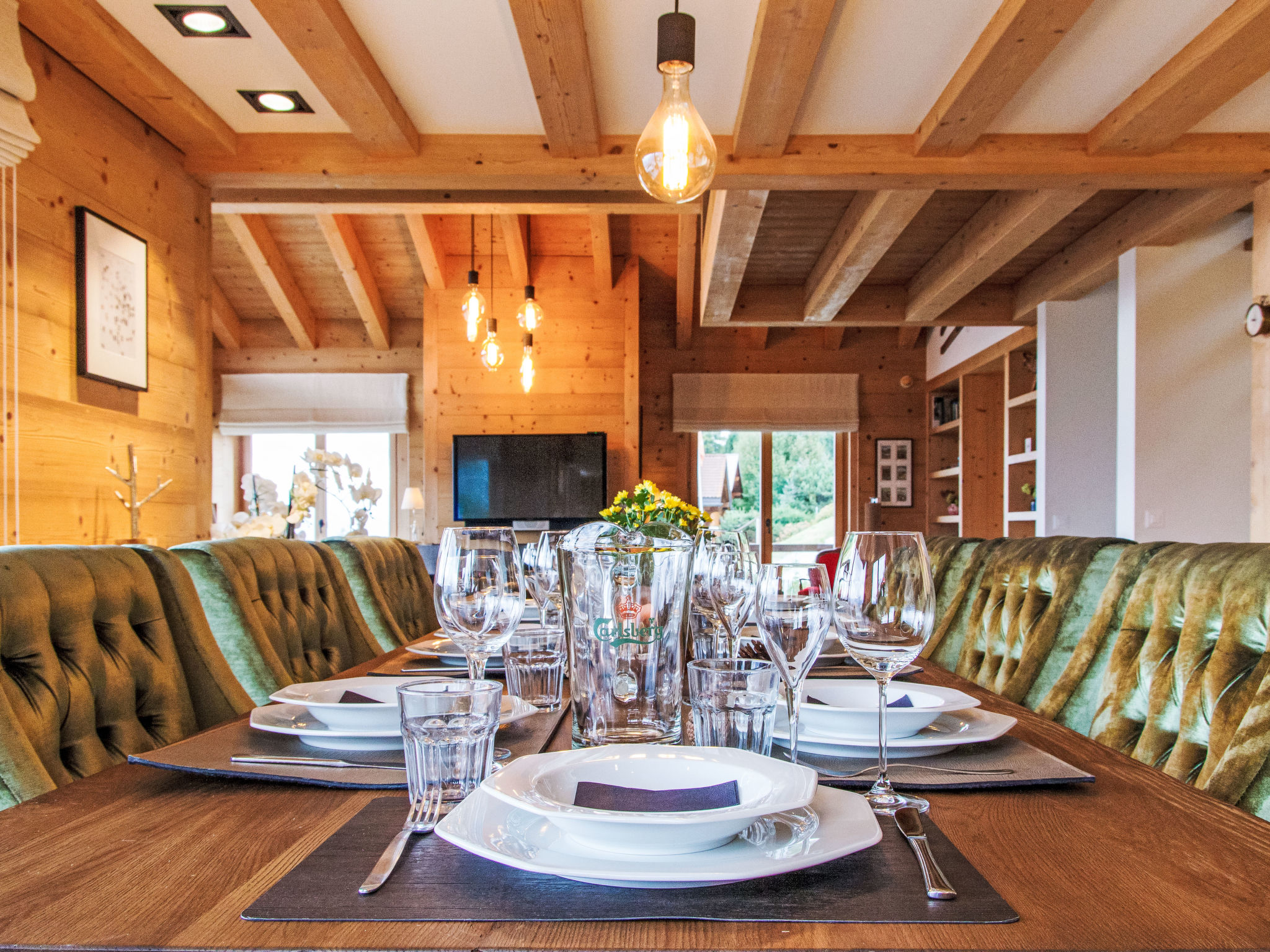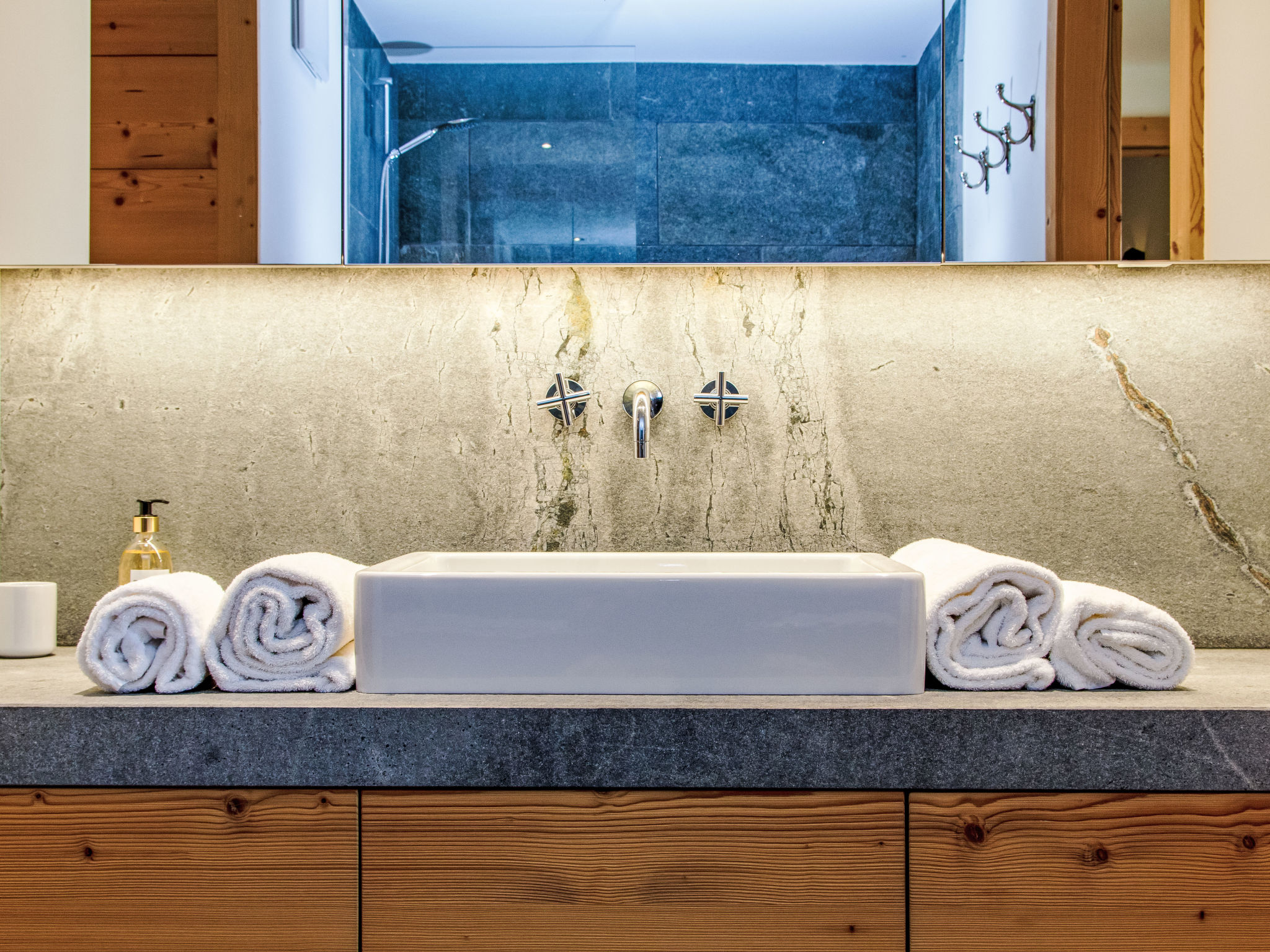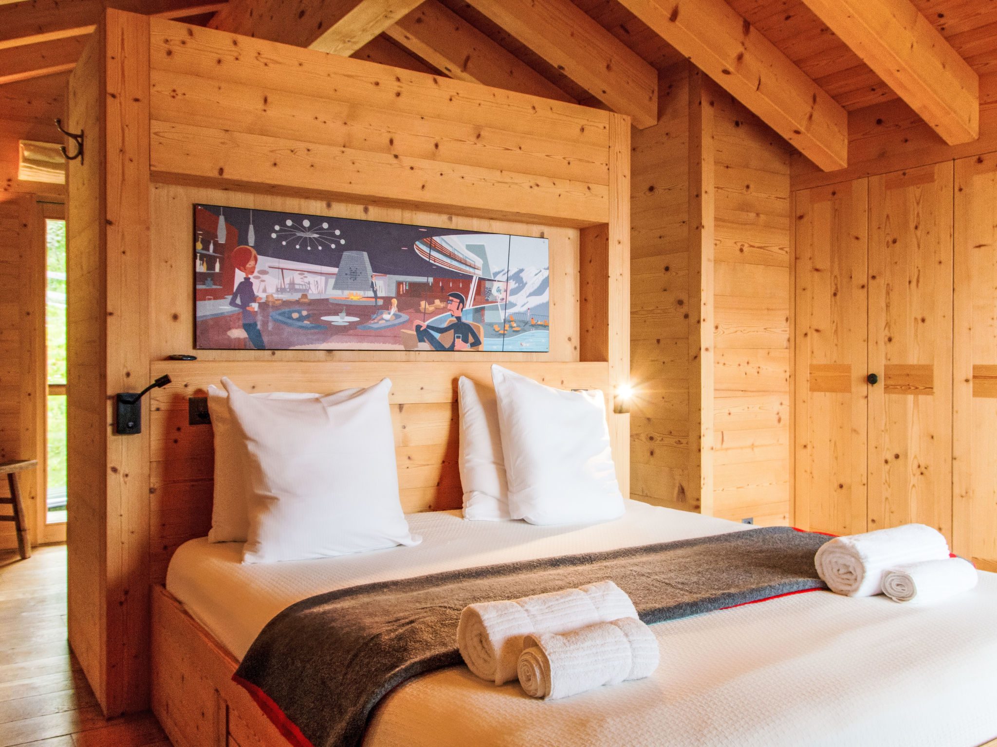 "Chalet Gerritsen", 6-Zimmer-Chalet 280 m2 auf 3 Stockwerken, Nordwestlage. Geräumig und hell, modern und luxuriös eingerichtet: Eingang mit sep. WC. Grosses Wohn-/Esszimmer mit offenem Kamin, Kabel-TV, Stereoanlage und Heimkino. Ausgang zur Terrasse, Richtung Norden und Richtung Westen. Grosse, offene Küche (Backofen, Geschirrspüler, 5 Flammen, Toaster, Wasserkocher, Mikrowelle, Tiefkühler, elektrische Kaffeemaschine, Racletteofen, Kochinsel, Fondue Set (Käse)). Ausgang zur Terrasse. Fussbodenheizung. Unteres Geschoss: 1 Zimmer mit 1 franz. Bett (180 cm, Länge 200 cm), Bad/Bidet/WC und Kabel-TV. Ausgang zum Garten. 1 Zimmer mit 1 x 2 Etagenbetten (90 cm, Länge 200 cm), Kabel-TV. Ausgang zum Garten. 1 Zimmer mit 1 franz. Bett (180 cm, Länge 200 cm), Dusche/WC. Ausgang zum Garten. Dusche/WC, Sauna. Obergeschoss: offenes Büro. 1 Zimmer mit 1 franz. Bett (180 cm, Länge 200 cm), Bad/Dusche/WC, Doppelwaschbecken und Kabel-TV. Ausgang zum Balkon, Richtung Norden und Richtung Süden. Parkettboden. Grosse Terrasse, Nordlage und Westlage, grosser Garten. Terrassenmöbel, Gartengrill, Liegestühle (2). Herrliche Sicht auf die Berge und das Tal. Zur Verfügung: Waschmaschine, Wäschetrockner, Kinderhochstuhl, Babybett, Haartrockner. Internet (WLAN, gratis). Parkplatz (2 Autos), im Winter in 50 m. Bitte beachten: Nichtraucher-Unterkunft. Maximal 1 Haustier/Hund erlaubt.