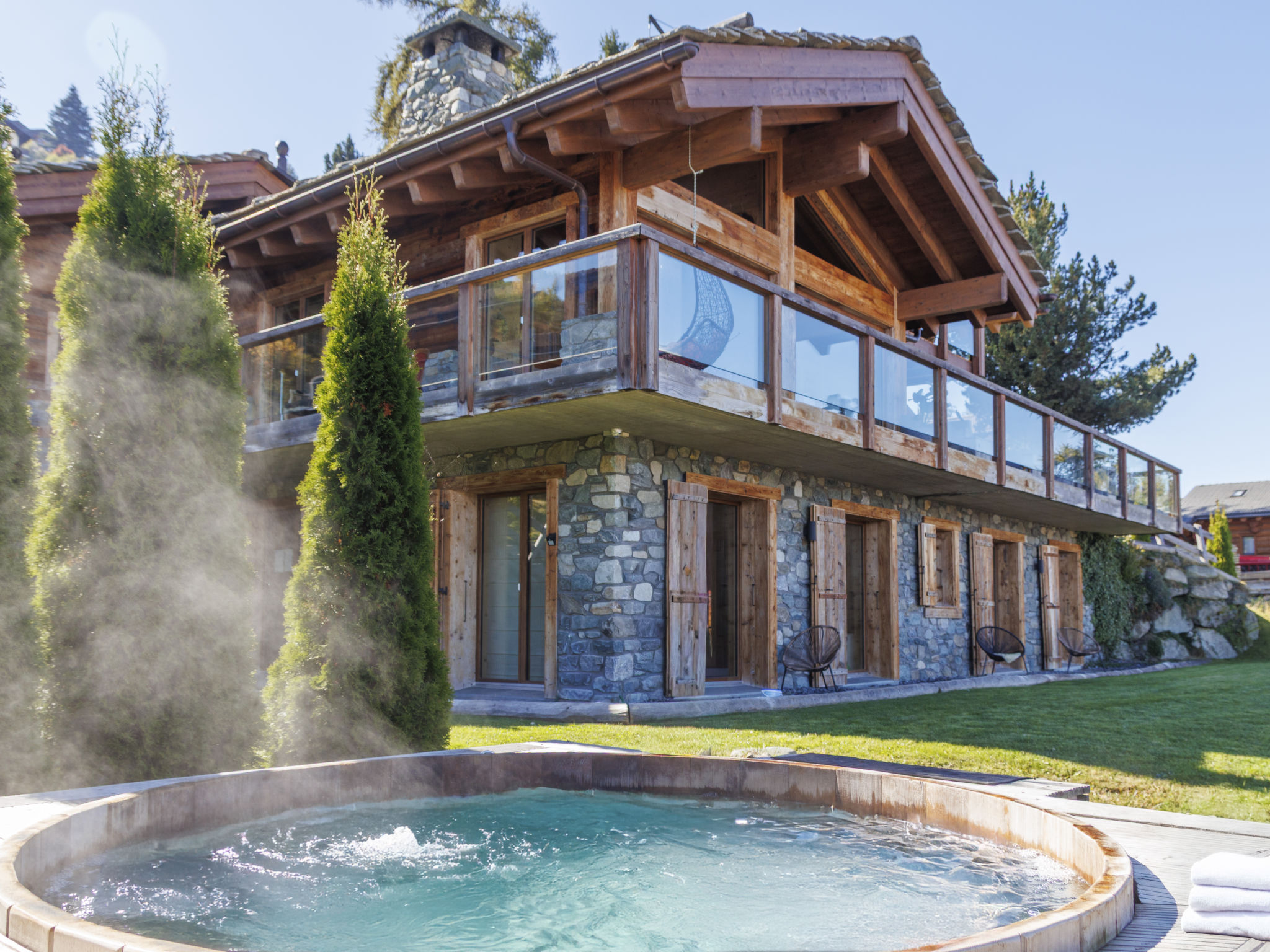 Sehr schönes Chalet "Alpview VG", auf 3 Stockwerken, Baujahr 2017. Am Ortsrand, 1.1 km vom Zentrum, ruhige Lage. Zur Alleinbenutzung: gepflegter Garten 1'000 m2 (nicht eingezäunt). Sprudelbad. Im Winter bitte Schneeketten mitbringen, im Winter 4x4 empfohlen. Parkplatz (für 2 Autos). Einkaufsgeschäft 1 km, Restaurant 1 km, Bäckerei 1 km, Bushaltestelle "Haute-Nendaz, station/poste" 1.5 km, Bahnstation "Sion" 17.2 km, Freibad 700 m. Golfplatz (18 Loch) 15 km, Tennis 700 m, Skisportanlagen 2 km, Skibushaltestelle 600 m, Ski-Kindergarten 700 m, Langlaufloipe 5 km, Eisfeld 1 km, Kinderspielplatz 850 m. Nahe gelegene Sehenswürdigkeiten: Alaïa Bay - Surf Park 16 km. Bekannte Skigebiete sind gut erreichbar: Nendaz Tracouet 4 Vallées 2 km. Wandergebiete: Bisse du Milieu 1.5 km. Bitte beachten: Gratis Skibus.