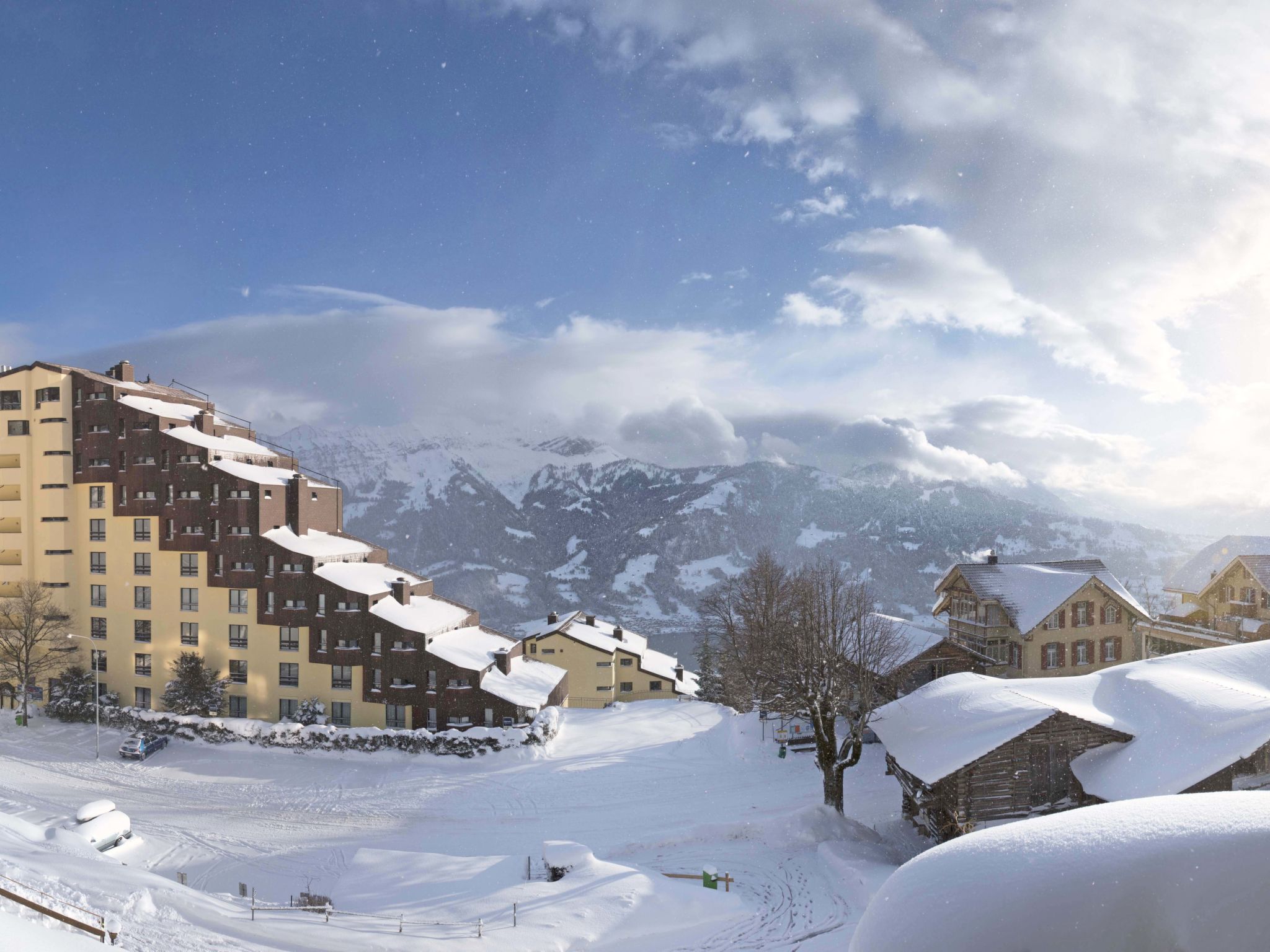 Modernes, komfortables Apart-Hotel "Dorint Hotel Blüemlisalp". Ausserhalb des Ortes, 2 km vom Zentrum, ruhige, sonnige Lage am Hang. Zur Mitbenutzung: grosser Garten, Hallenbad. Kinderspielplatz. In der Anlage: Empfang, Restaurant, Bar, Frühstücksraum, Aufenthaltsraum, Sauna, Massage (extra). Infrarotwärmekabine, Ruheraum, Wellnessbereich, Tischtennis, Billard, Spielzimmer, Fahrstuhl, Einstellraum für Fahrräder, Sonnenterrasse, Skiraum, Zentralheizung, Waschmaschine, Wäschetrockner (zur Mitbenutzung, extra). Wäschewechsel 1 mal wöchentlich. Frühstück möglich (extra). Parkplatz (im Winter extra), Gemeinschaftsgarage. E-Ladestation. Bushaltestelle 10 m, Bahnstation "Interlaken West" 12 km, Freibad 14 km. Golfplatz (18 Loch) 14 km, Minigolf 50 m, Wanderwege ab Haus, Gondelbahn 650 m, Skisportanlagen 650 m, Skibushaltestelle 10 m. Nahe gelegene Sehenswürdigkeiten: Beatushöhlen, Interlaken, Jungfraujoch. Bekannte Skigebiete sind gut erreichbar: Jungfrau-Region. Bekannte Seen in der Umgebung sind gut erreichbar: Thuner- und Brienzersee. Wandergebiete: Niederhorn, Hohgant, Via Jacobi. Bitte beachten: Weitere Unterkünfte sind buchbar.