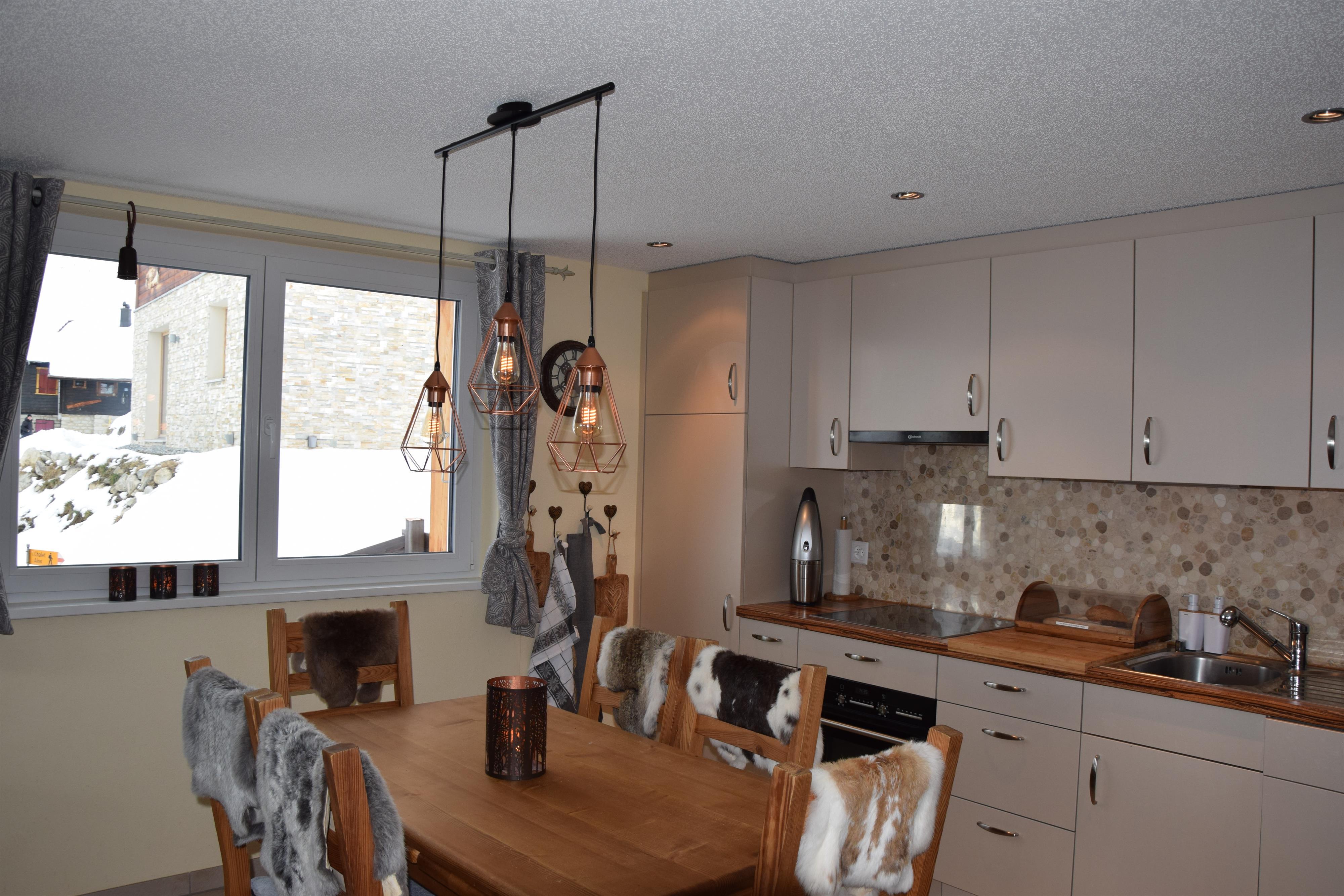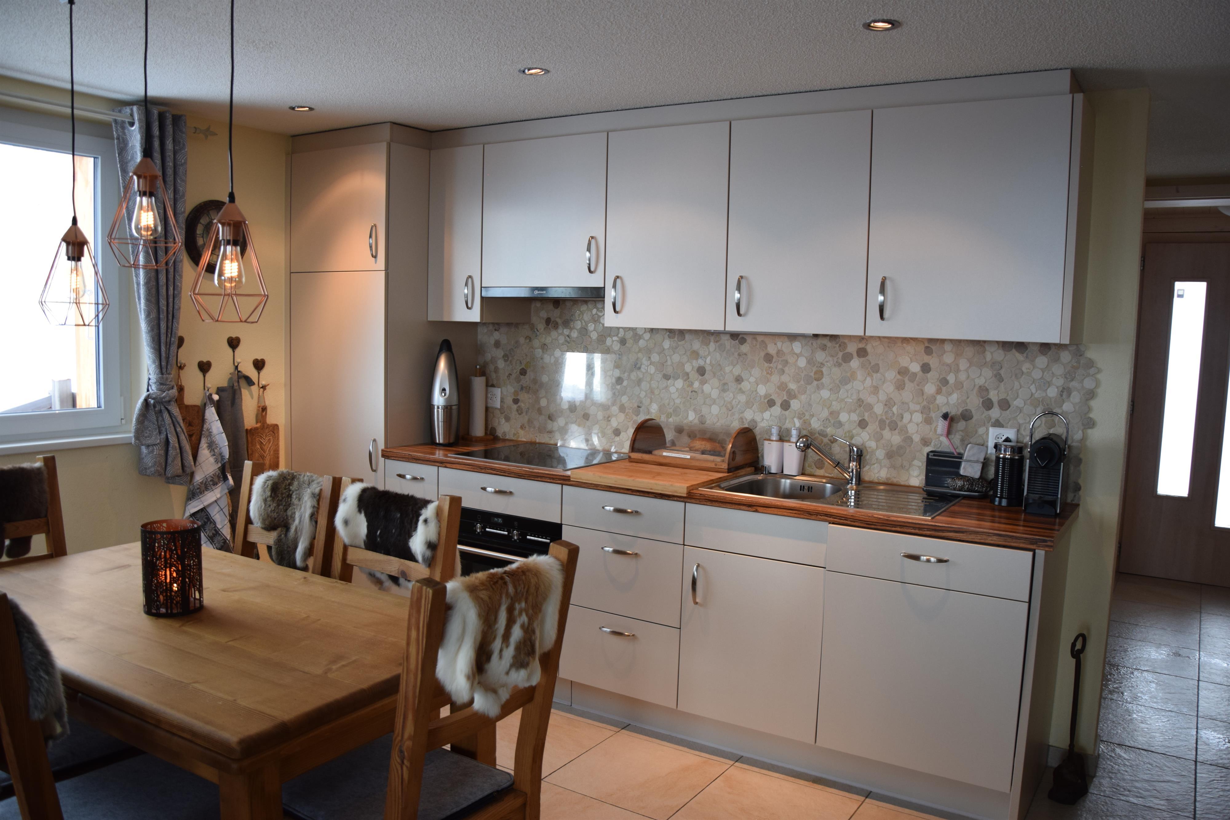 Perfekt ausgerüstete Küche, Raclette-, Fondue- und Fondue Bourguinionne - Ausrüstung.