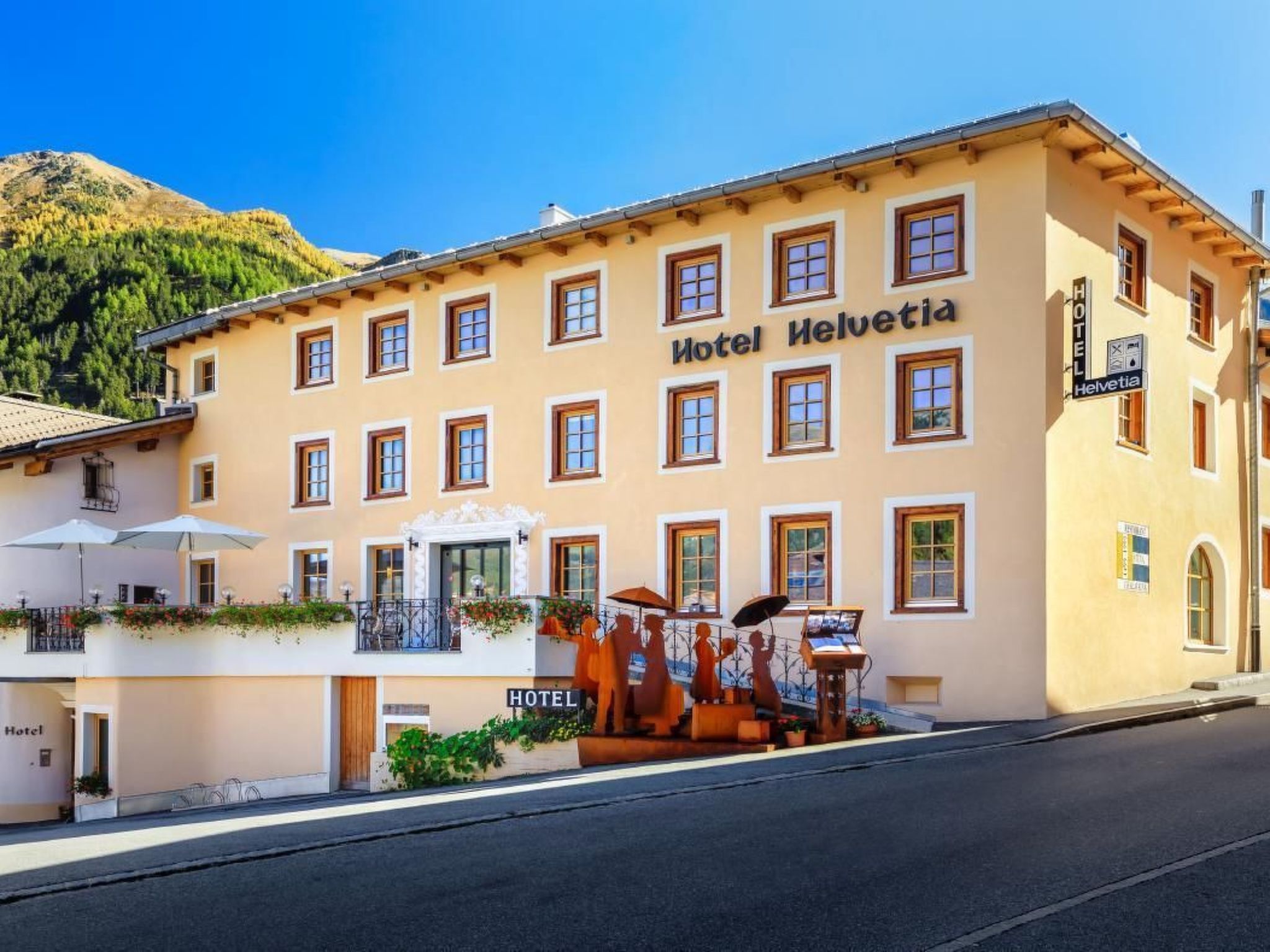 Die Ferienwohnung DUAI ist eine 3 1/2 Zimmer Wohnung im Anbau des Hotel Helvetia in Müstair: Baujahr 2024. Die Gesundheitsoase, so nennen wir den neuen Anbau, liegt im Dorfzentrum von Müstair und trotzdem an ruhiger Lage.