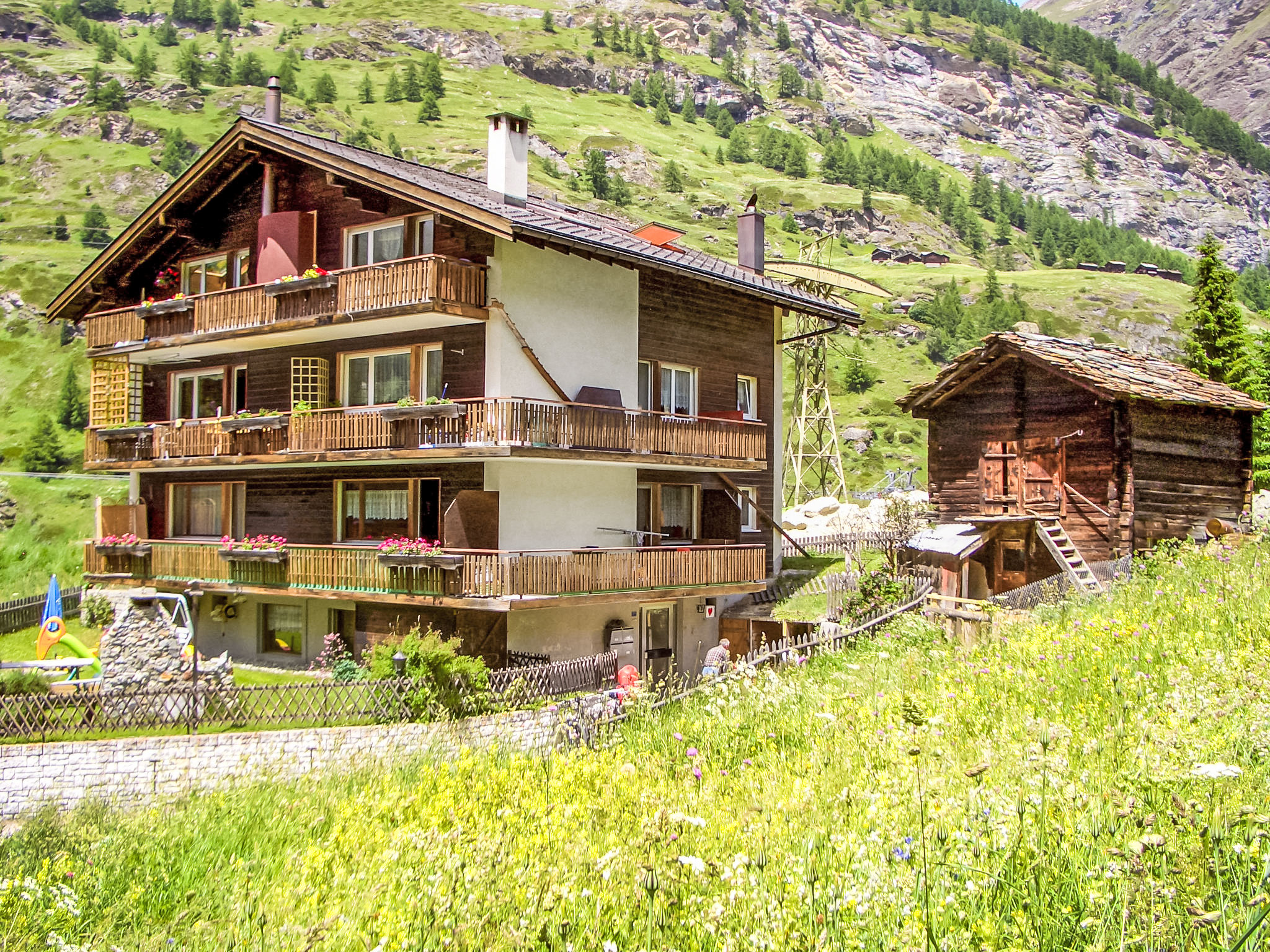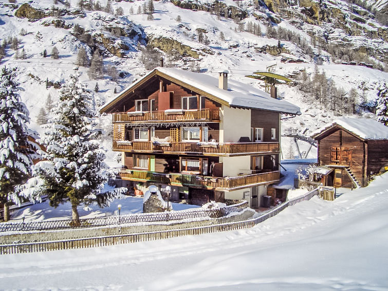 Kleines Mehrfamilienhaus "Brigitte", auf 4 Stockwerken. Im Ortsteil Schluhmatten, 1 km vom Zentrum, ruhige, sonnige Lage. Im Hause: Skiraum, Zentralheizung, Waschmaschine (extra). Lebensmittelgeschäft 700 m, Supermarkt 1 km, Restaurant 20 m, Bäckerei 700 m, Zentrum zu Fuss in 25 Minuten erreichbar, Bushaltestelle "Schluhmatte" 80 m, Bahnstation "Bahnhof Zermatt" 1 km. Bergeisenbahn, Skiverleih 250 m, Skibushaltestelle 80 m, Skischule 1 km, Kinderskischule 1 km. Bekannte Skigebiete sind gut erreichbar: Talstation Matterhorn Paradise 250 m. Bitte beachten: kein Fahrstuhl vorhanden. Taxi kann nicht bis zum Haus fahren. Bei guter Schneelage Zufahrt mit den Skiern bis zum Haus. Die Schlüsselübergabe findet bei der Agentur Interhome in Zermatt statt.