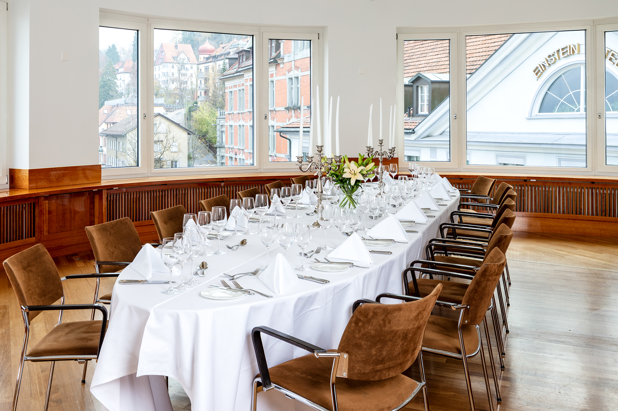 Das zentral gelegene und stilvolle 4* Superior Hotel Einstein St.Gallen liegt ruhig und in kurzer Gehdistanz vom weltbekannten UNESCO Klosterviertel der Altstadt von St.Gallen. Es verfügt über 113 renovierte und klimatisierte Zimmer und Suiten. An das Hotel angeschlossen befindet sich ein 3000m2 Fitnesspark mit Wellnessbereich. Kulinarische Abwechslung findet der Gast im 18 Punkte GaultMillau und 2 Sterne Michelin ausgezeichnetem „Einstein Gourmet“, dem international inspirierten und mit 14 Punkten GaultMillau prämierten „Bistro St.Gallen“ sowie in der „Einstein Bar“ mit englischer Clubatmosphäre. Die Weinstein Vinothek ist spezialisiert auf trinkreife Bordeaux und Schweizer Weine und bietet mehr als tausend Positionen an. Das Einstein Congress mit 14 modernen Tagungsräumlichkeiten und dem Einstein Saal für Anlässe bis zu 330 Personen ist in der Ostschweiz das führende Kongresshaus. Es wurde im Rahmen des Swiss Location Award mehrfach zu einer der besten Kongresslocations der Schweiz gewählt. Das Einstein St.Gallen ist Mitglied von Swiss Hospitality Collection.