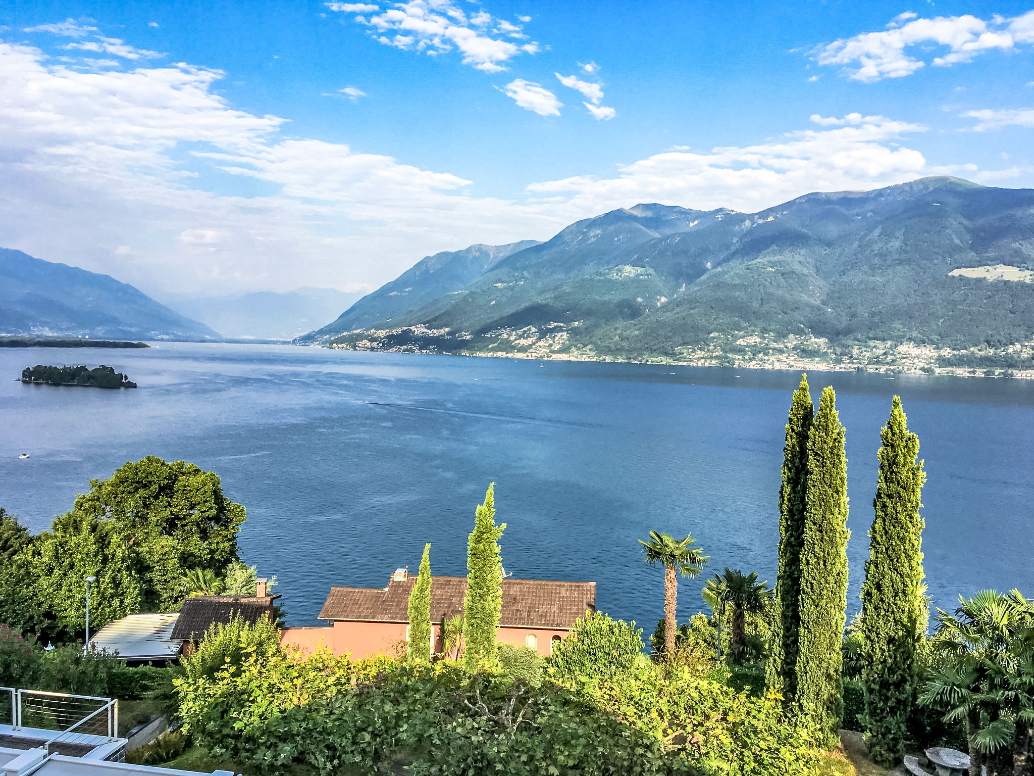 "Stellina del Sole", 4-Zimmer-Haus 125 m2 auf 2 Stockwerken. Geräumig und hell, komfortabel und gemütlich eingerichtet: offenes grosses Wohn-/Esszimmer mit offenem Kamin, Sat-TV, Flachbildschirm und Stereoanlage. Offene Küche (Backofen, Geschirrspüler, 4 Glaskeramikplatten, Mikrowelle, Tiefkühler, elektrische Kaffeemaschine, Fondue Set (Käse)) mit Bar, Esstisch. Sep. WC. Obergeschoss: 1 Doppelzimmer mit 1 Doppelbett (2 x 90 cm, Länge 200 cm), Bad/WC. 1 Doppelzimmer mit 1 Doppelbett (2 x 90 cm, Länge 200 cm). Ausgang zum Balkon. 1 kleines Zimmer mit 1 Ausziehbett (2 Pers. 2 x 80 cm, Länge 200 cm). Ausgang zum Balkon. Dusche/WC. Balkon. Balkonmöbel. Herrliche Panoramasicht auf den See, die Berge, die Landschaft und die Ortschaft. Zur Verfügung: Waschmaschine, Wäschetrockner, Bügeleisen, Kinderhochstuhl, Babybett bis 2 Jahre (extra). Internet (WLAN, gratis). Bitte beachten: Nichtraucher-Haus. Erdgeschoss Balkon mit Veranda die sich öffnen lässt. NL-00007351