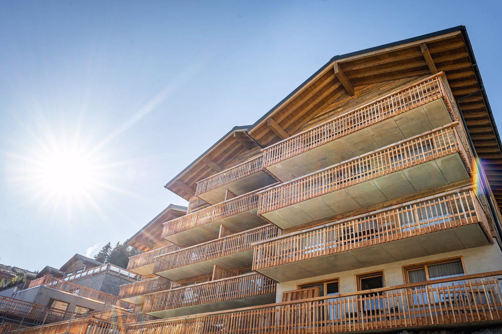 Grosszügige und komfortable Ferienwohnungen im Neubau mit Panoramablick über das Val d’Hérens, nahe der Bergbahnen und neben Thermalbad gelegen.