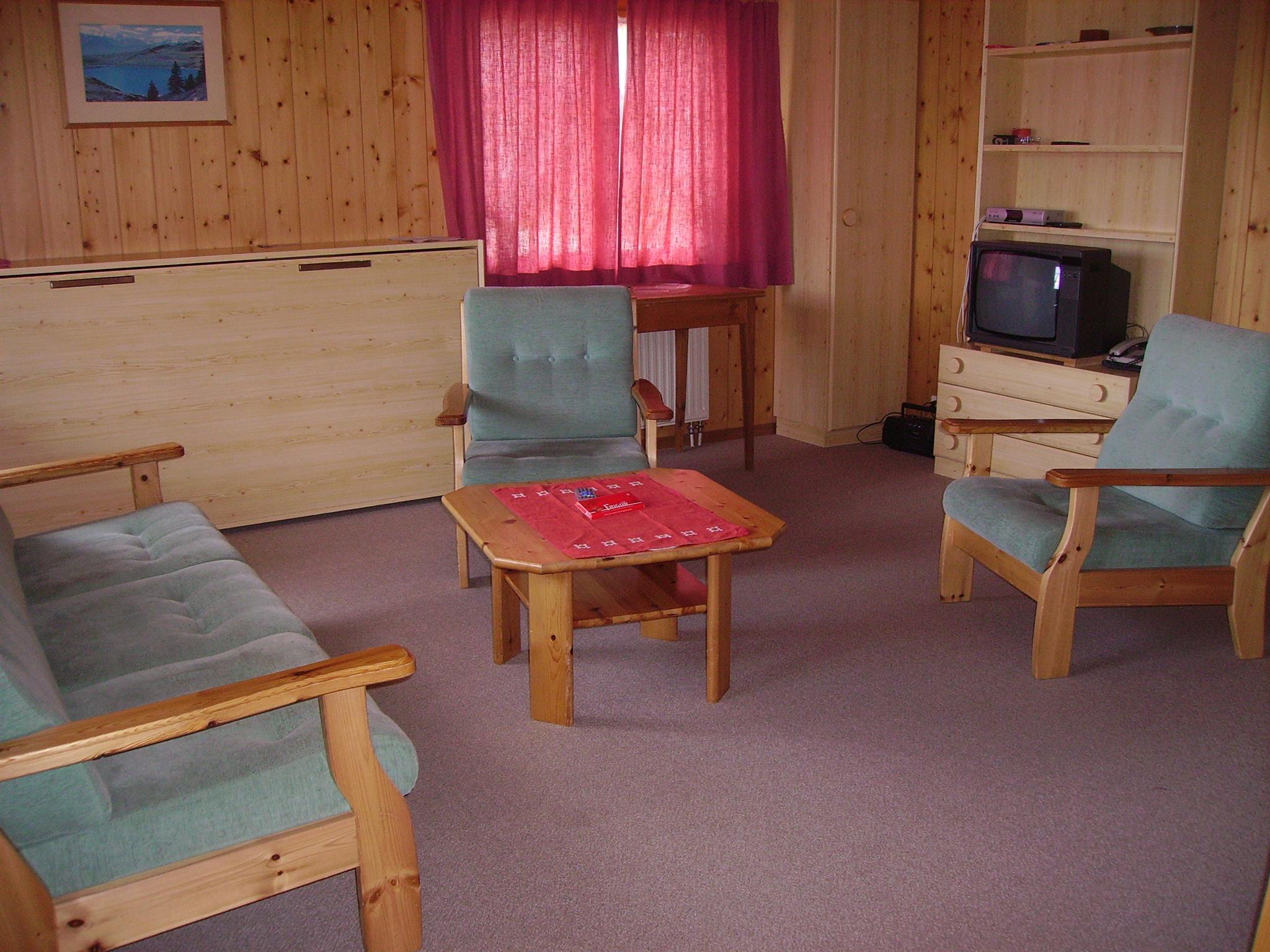 Die Parterrewohnung verfügt über 1 separates Schlafzimmer mit zwei Einzelbetten. Im grossen Wohnzimmer befindet sich das Doppelbett für die Eltern als Wandbett. So kann der Gast tagsüber den Wohnraum vergrössern. Das 2. Schlafzimmer befindet sich also im grossen Wohnzimmer. Es ist also eine 2.5-Zimmerwohnung. (Diese Angabe wird aber von der Plattform nicht akzeptiert)