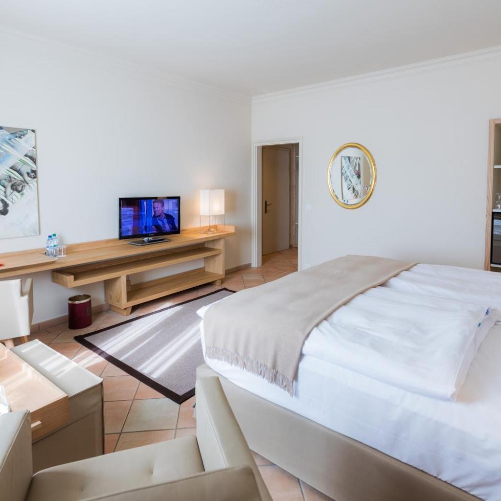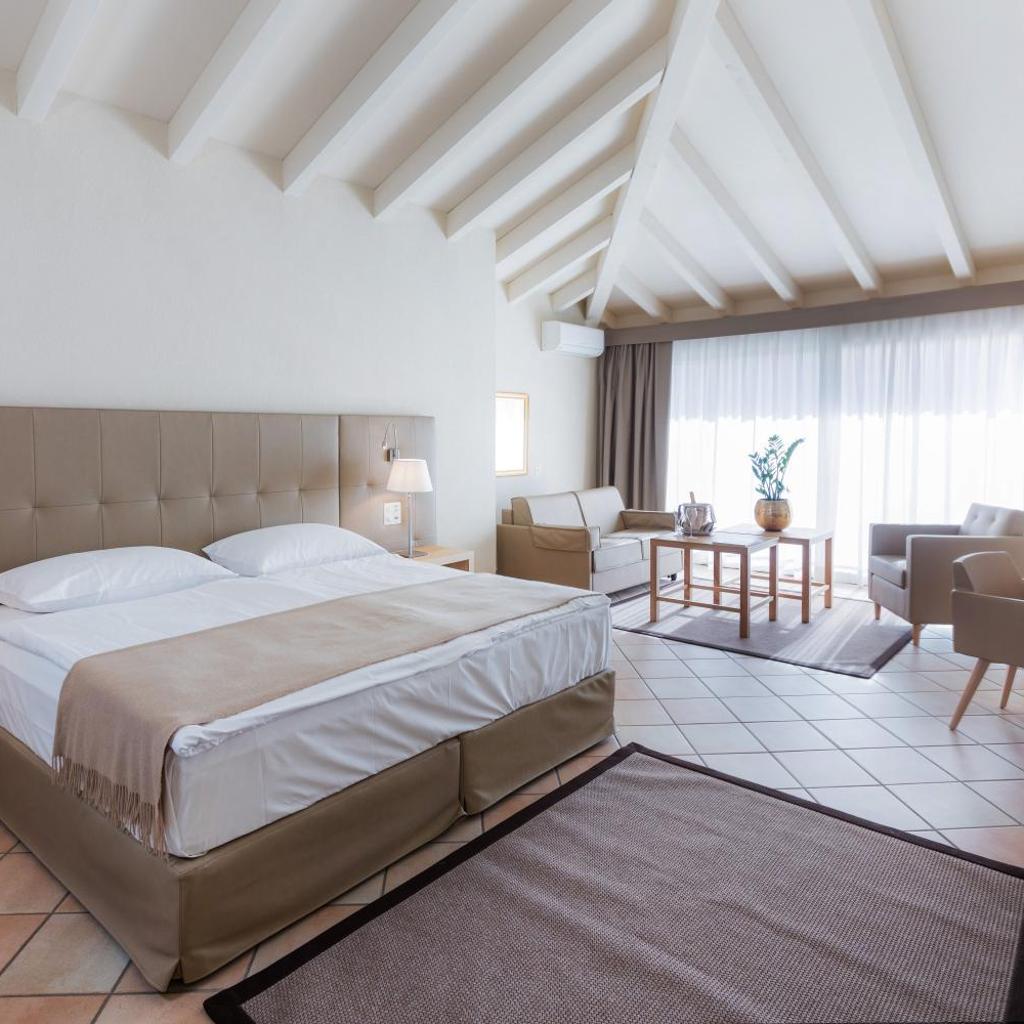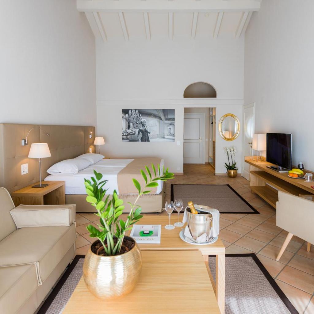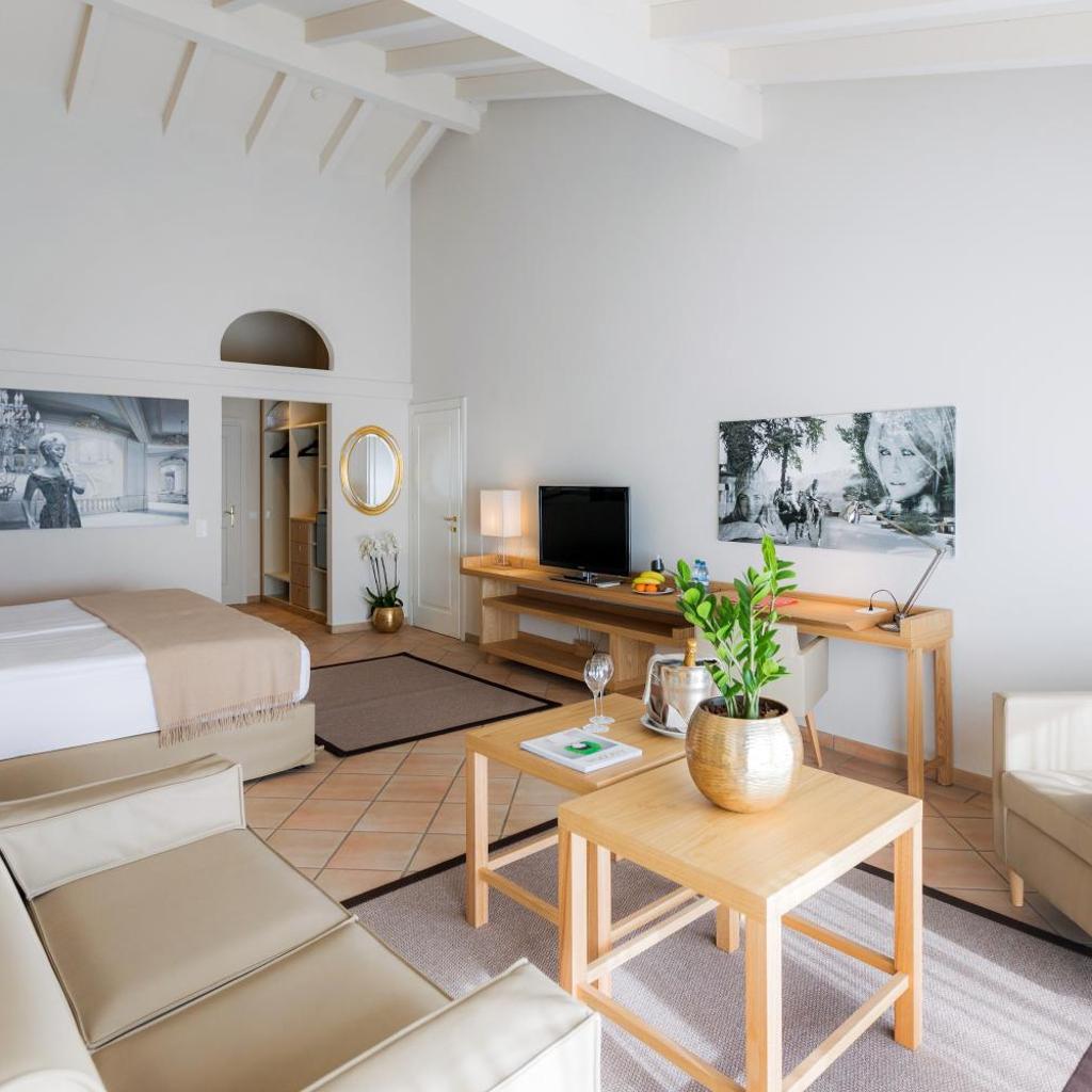Die geräumigen, klassischen und klimatisierten Zimmer und Suiten der Unterkunft sind mit einem Marmorbad, einem Flachbild-Sat-TV und einer Minibar ausgestattet. Die meisten Zimmer bieten zudem einen Balkon mit Blick auf die umliegenden Berge.