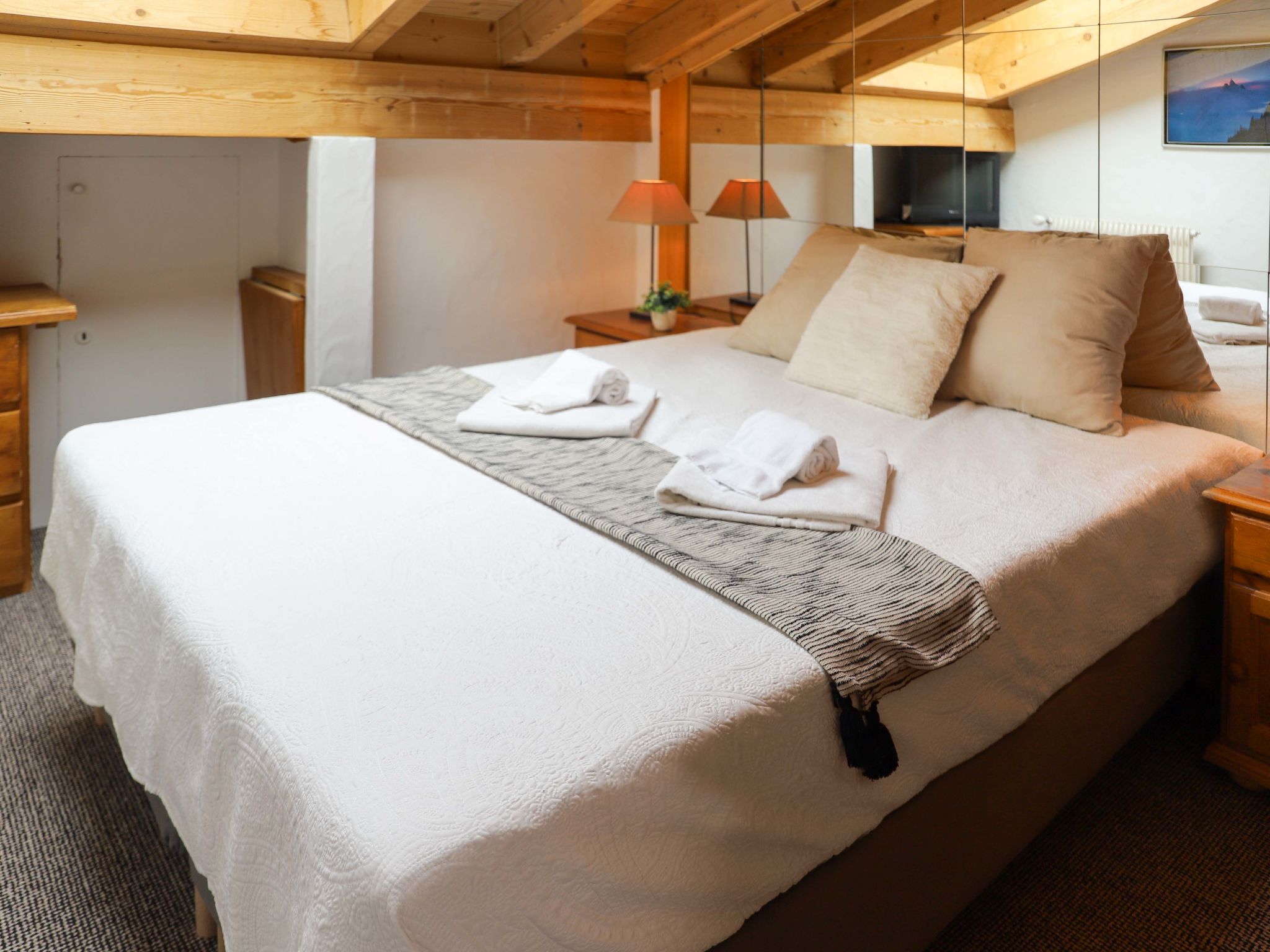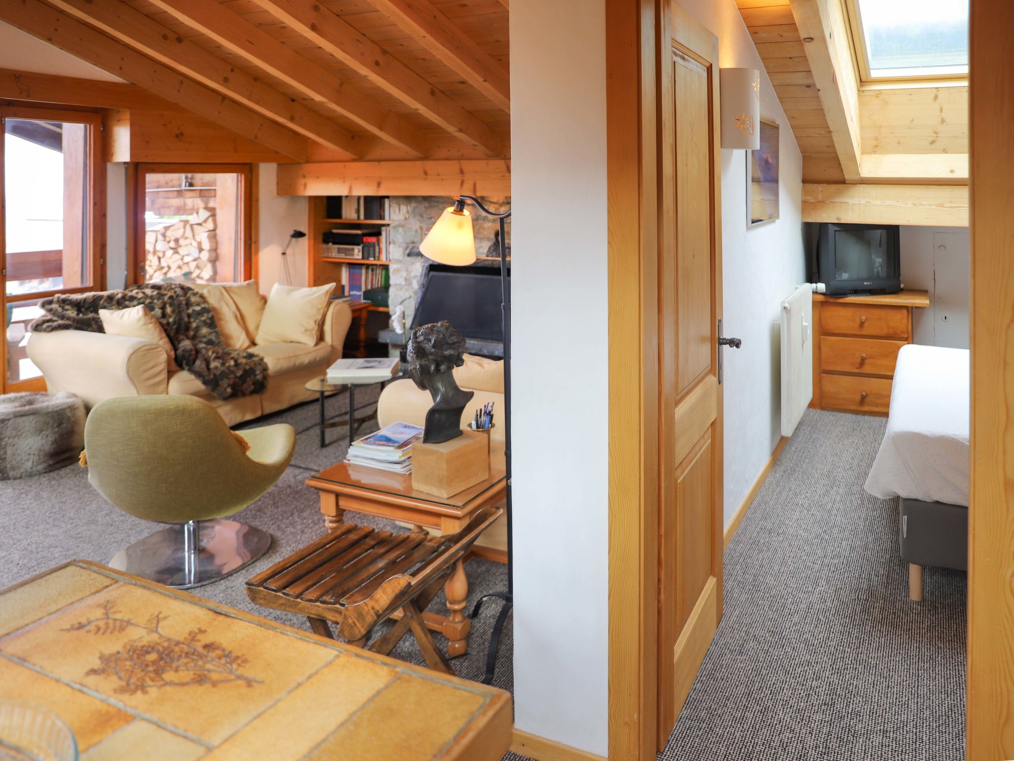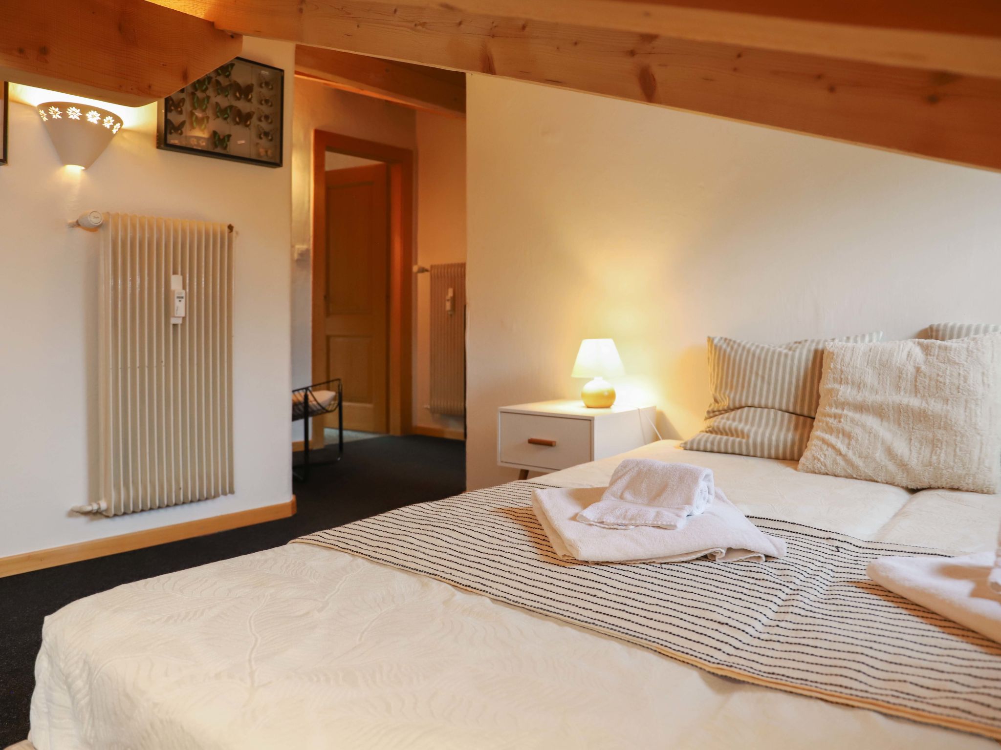 "Olympia 443", 4-Zimmer-Attikawohnung 90 m2 im 4. Stock. Geräumig, renoviert, schön und geschmackvoll eingerichtet: grosses Wohn-/Esszimmer mit offenem Kamin und Kabel-TV. 1 Zimmer mit 1 Doppelbett (180 cm, Länge 200 cm). 1 abgeschrägtes Zimmer mit 2 Betten (90 cm, Länge 200 cm). 1 abgeschrägtes Zimmer mit 2 Betten (90 cm, Länge 200 cm). Offene Küche (4 Kochplatten, Backofen, Geschirrspüler, 4 Glaskeramikplatten, elektrische Kaffeemaschine, Kapseln für die Kaffeemaschine (Nespresso) extra, Racletteofen, Fondue Set (Käse)). Bad/WC, Dusche/WC. Balkonmöbel. Sehr schöne Sicht auf die Berge. Zur Verfügung: Internet (Wireless LAN). Parkplatz Nr. 443 (1 Auto). Bitte beachten: Nichtraucher-Unterkunft. Rauchmelder.