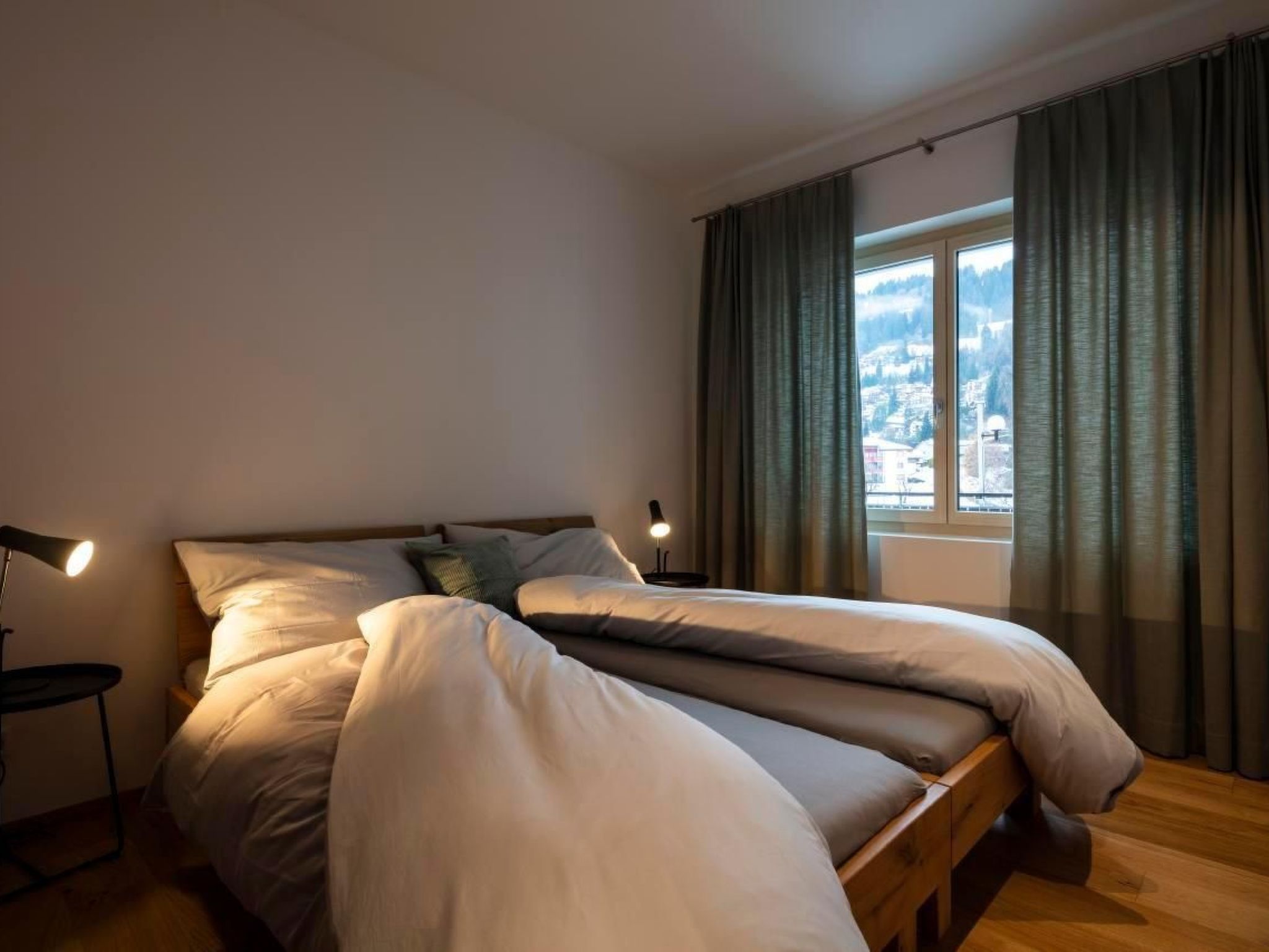 Im Inneren erwartet Sie eine geräumige Wohnung, die mit drei Schlafzimmern – ein gemütliches Doppelbettzimmer, ein Zimmer mit zwei Betten sowie ein Zimmer mit einem Ausziehbett – ideal für jede Gruppengrösse oder Familie ist. Zwei grosse Badezimmer mit Doppelwaschbecken, Dusche und Badewanne versprechen entspannende Momente. Der offene Wohn-, Ess- und Küchenbereich bietet dank modernster Ausstattung, einschließlich Induktionsherd, Backofen, Kombisteamer und Geschirrspüler, maximalen Komfort. Hinzu kommen eine Nespressomaschine, ein Raclette- und Fondueset sowie ein Waschraum mit Waschmaschine und Wäschetrockner, die Ihren Aufenthalt so angenehm wie möglich gestalten. Ein beheizter Skischuh- und Skischrank befindet sich im Eingangsbereich der Wohnung.