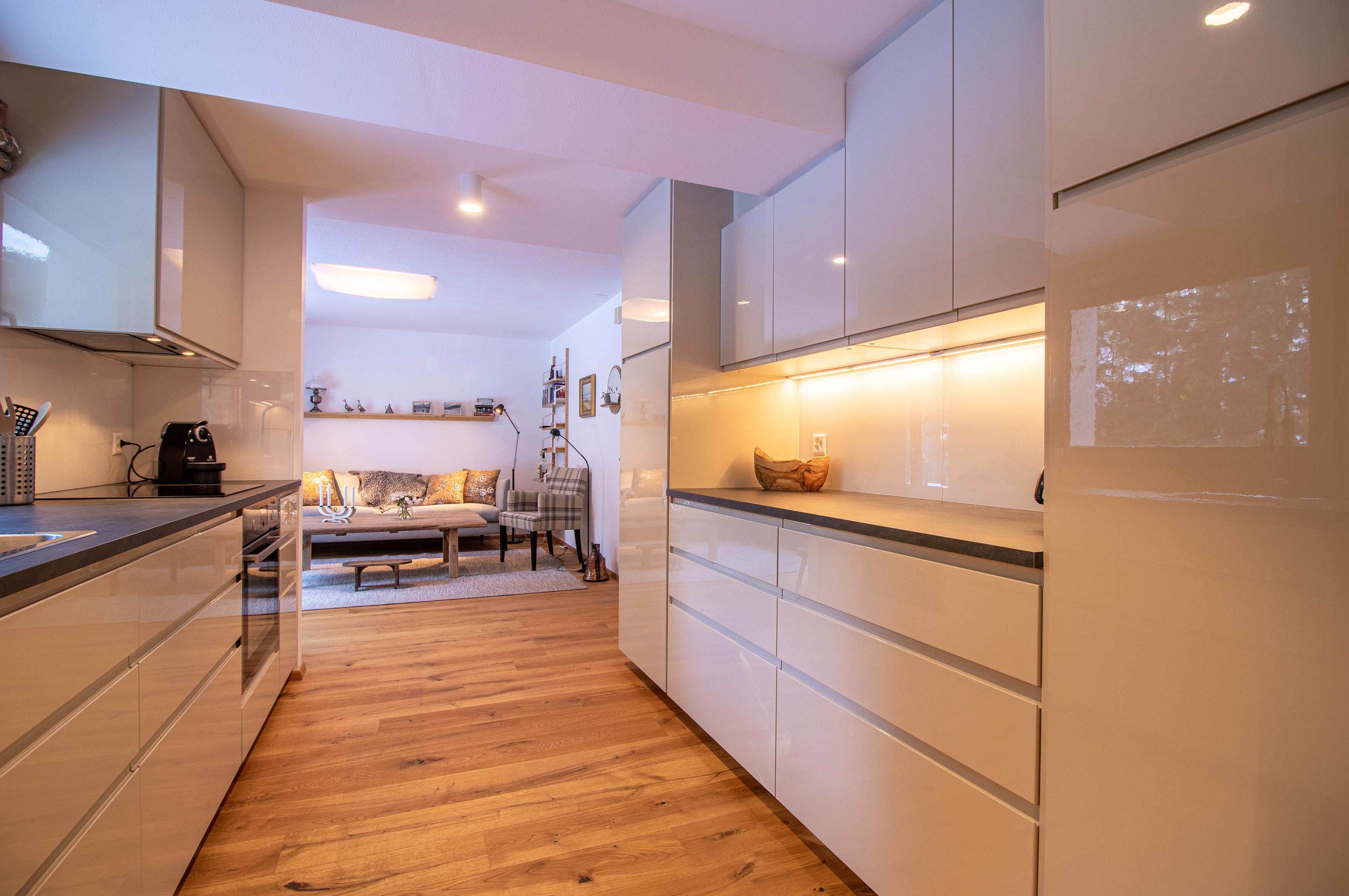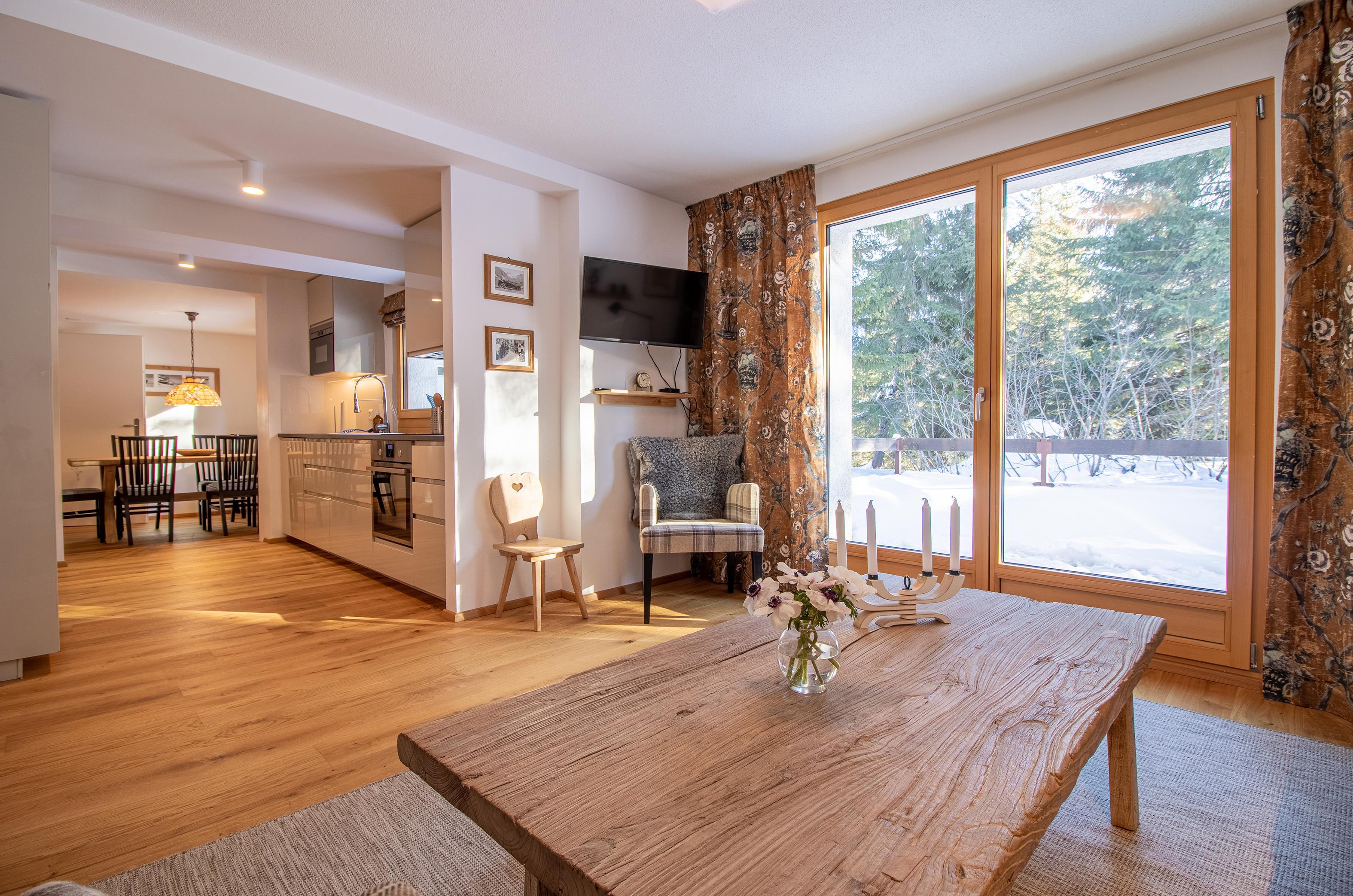 Charmante Wohnung am Untersee in Arosa. Es ist komplett renoviert und in einem rustikalen und modernen Stil eingerichtet.