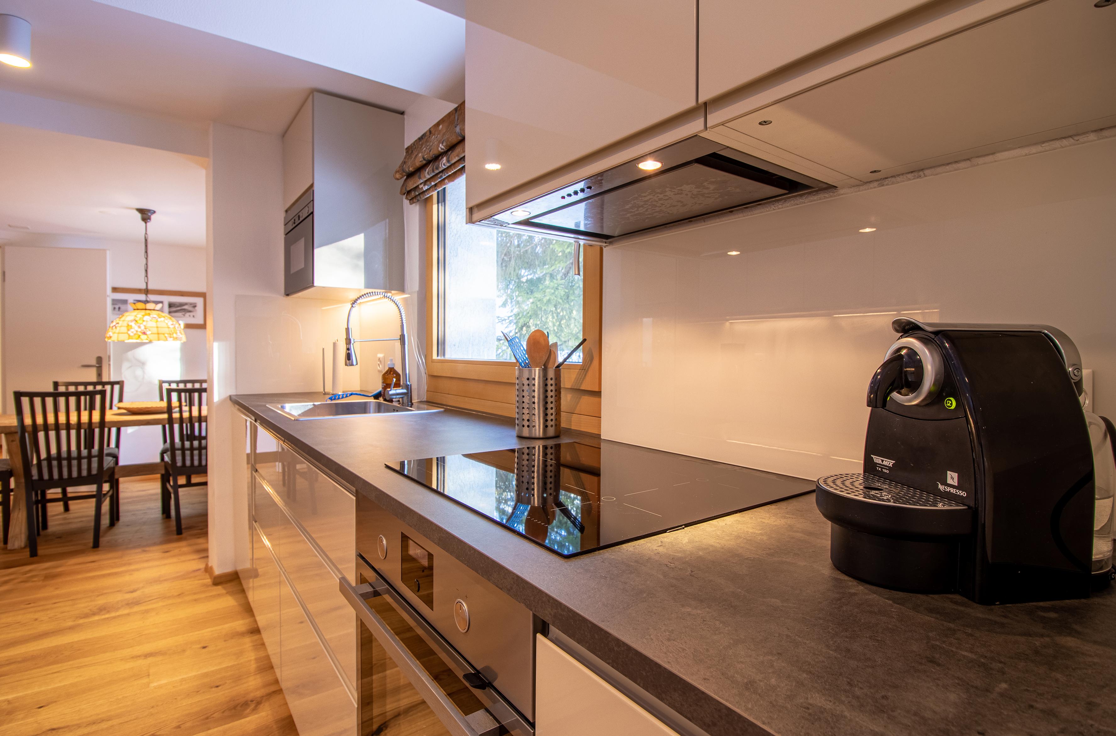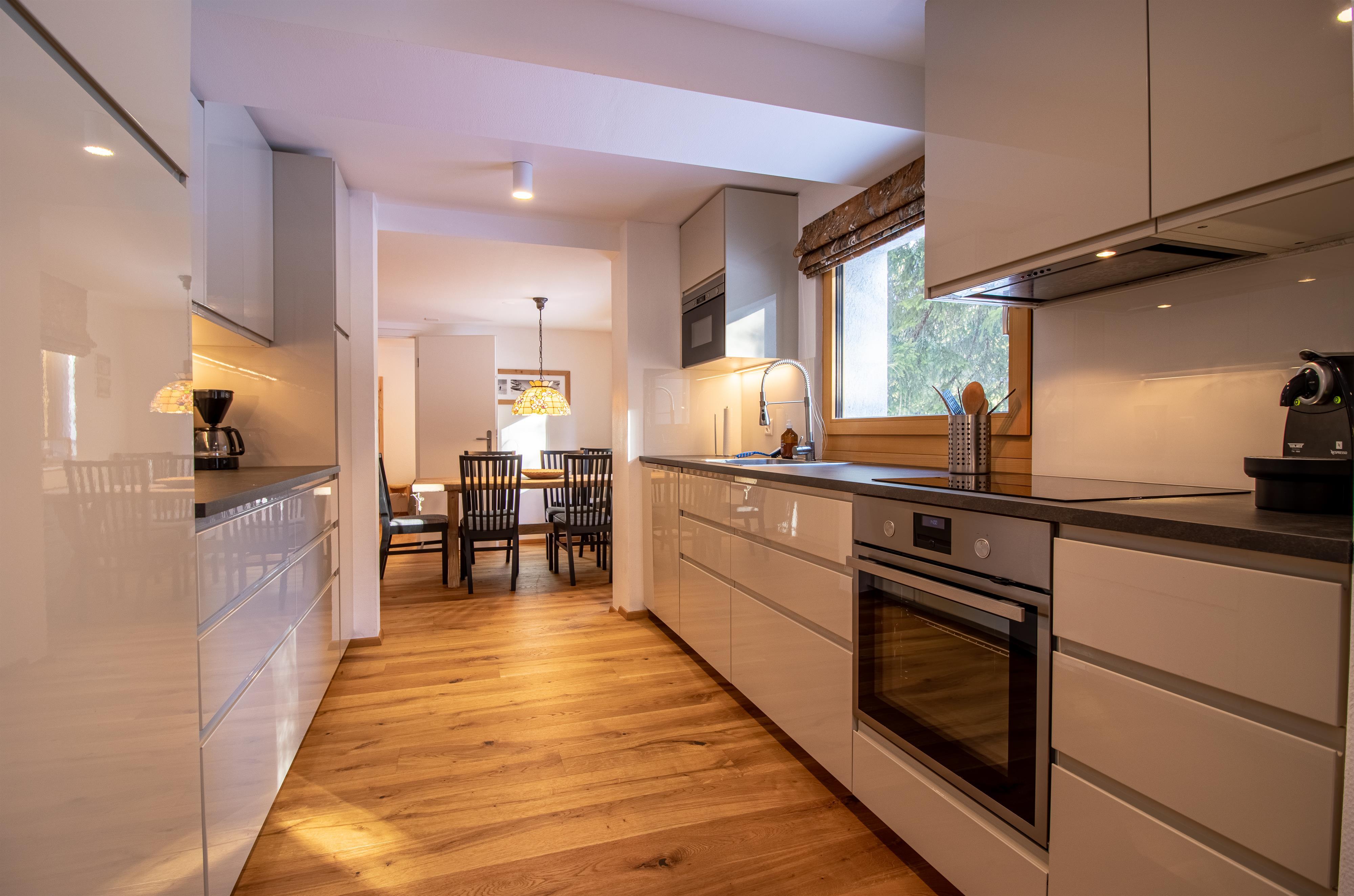 Die Küche ist voll ausgestattet und hat auch einen Esstisch mit Platz für 5 Personen.