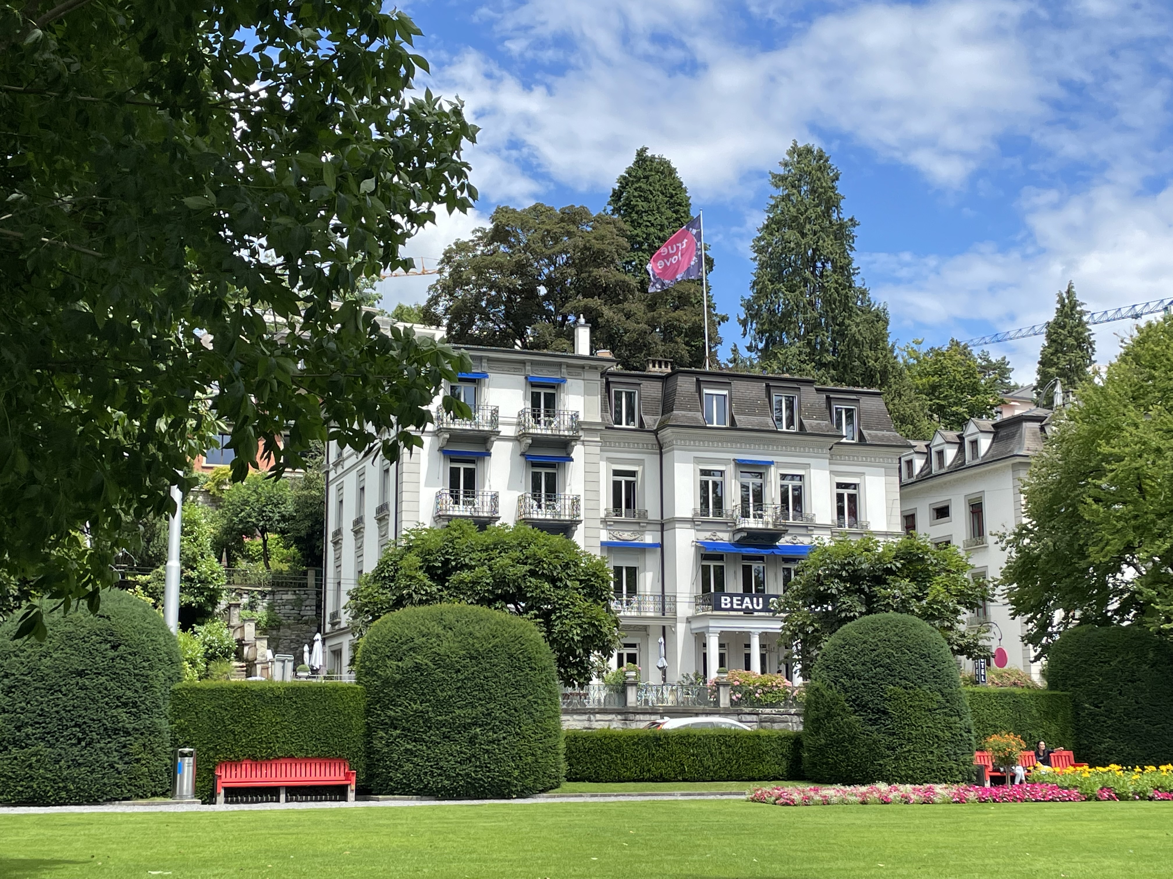 Das Luzerner Hotel Beau Séjour verfügt über 27 wunderschöne und einzigartige Zimmer, ausgestattet mit wilden Wandtapeten, zeitgenössischer Kunst von Nina Staehli und Möbeln von Designer Daniel Hunziker. Der glitzernde Vierwaldstättersee liegt direkt vor unseren Füssen – bis auf die Haldenstrasse dazwischen.