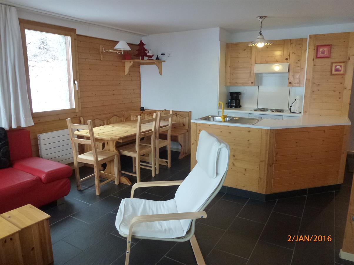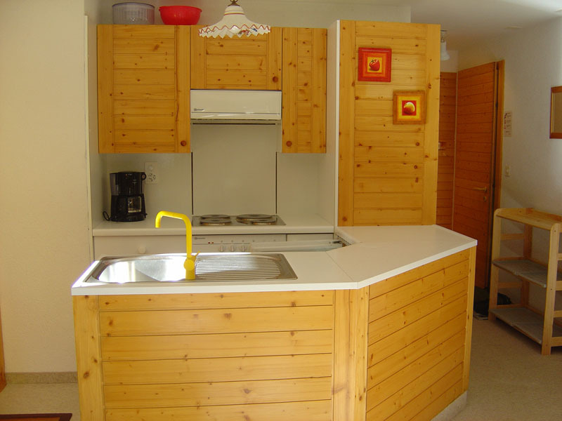 Komfortable 3-Zimmerwohnung für 4-5 Personen : Wohnraum - 1 Doppelbettzimmer - 1 Zimmer mit 2 Etagenbetten und Faltmatratze - Küche mit Geschirrspüler und Dolce Gusto Kaffeemaschine - Bad / WC - Süd-Ostbalkon - TV - Internetanschluss über WIFI - Aussenparkplatz - Tiere nicht erlaubt - Am Rand der Piste - Nichtraucher
