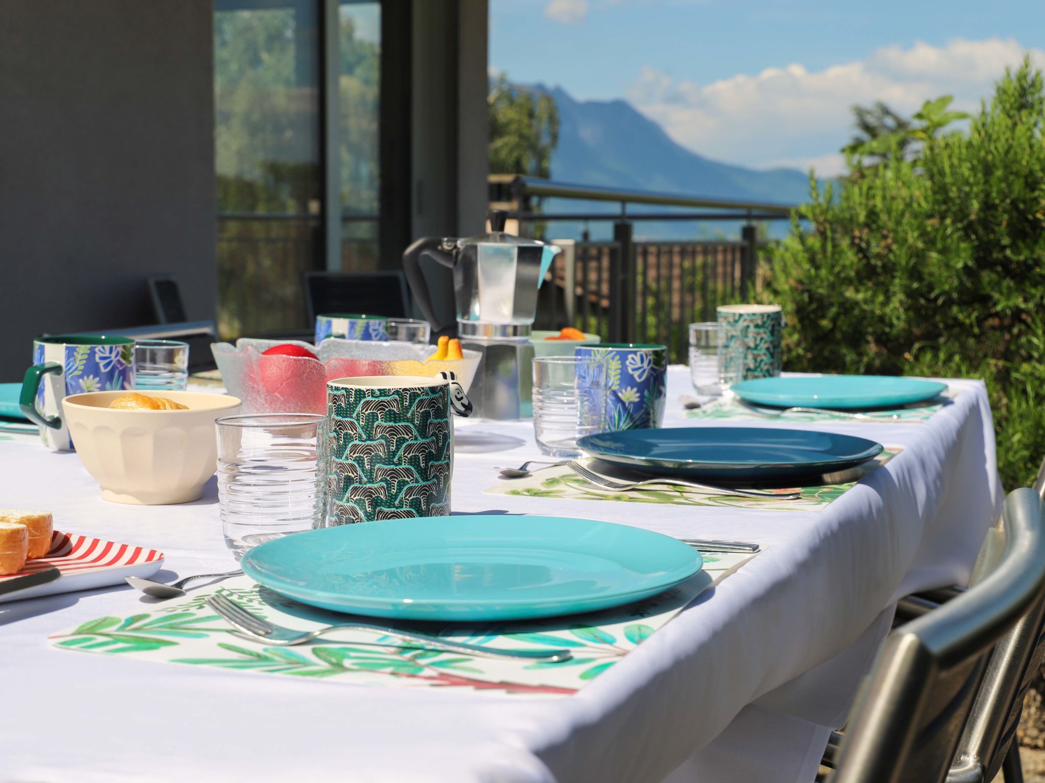 "Route de la Muraz 9", 4-Zimmer-Villa auf 2 Stockwerken. Komfortabel und geschmackvoll eingerichtet: Wohn-/Esszimmer mit Kabel-TV (Flachbildschirm). Ausgang zum Balkon, zur Terrasse. 1 Zimmer mit 1 Doppelbett (160 cm, Länge 200 cm). Offene Küche (Backofen, Geschirrspüler, 4 Glaskeramikplatten, Toaster, Wasserkocher, elektrische Kaffeemaschine, Kapseln für die Kaffeemaschine (Nespresso), Fondue Set (Käse)). Dusche/WC. Obergeschoss: 1 grosses Zimmer mit 1 Doppelbett. Ausgang zum Balkon. 1 abgeschrägtes Zimmer mit 1 Doppelbett (2 x 90 cm, Länge 200 cm). Bad/WC. 2 Balkone, Terrasse. Balkonmöbel. Herrliche Sicht auf den See, die Berge, die Landschaft und die Ortschaft. Zur Verfügung: Kinderhochstuhl, Haartrockner. Internet (Wireless LAN). Parkplatz beim Haus. Bitte beachten: Nichtraucher-Unterkunft. in den oberen Schlafzimmern gibt es keine Vorhänge und keine Storen.