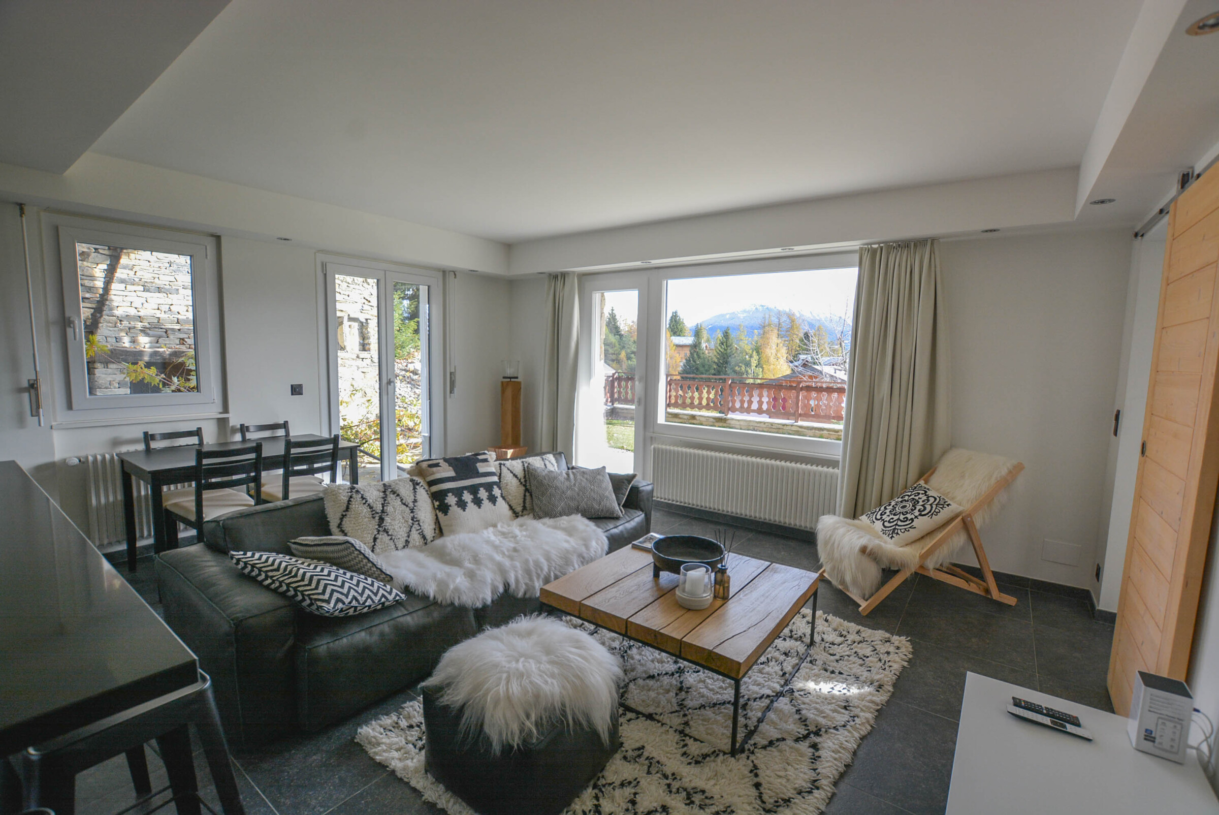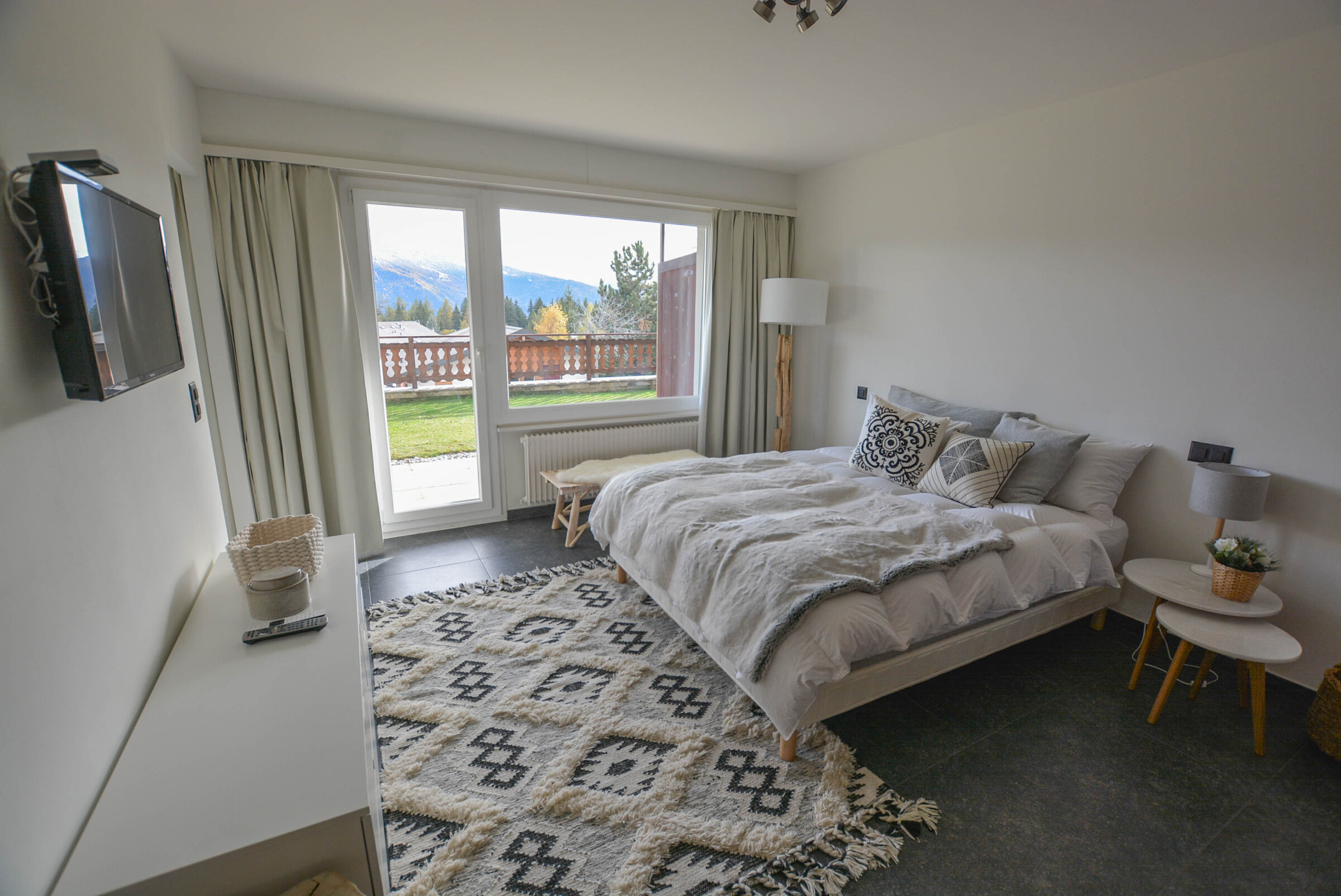 Residenz in eine ruhige und sonnige Lage, in "Route du Golf" in der Nähe des "Driving Range".3 ½ Zimmerwohnung, vollständig renoviert, (91m2) für 4 Personen, am Garten Stock. Die Residenz besteht aus ein Wohnzimmer mit Zugang zum Südlichen Terrasse, eine Moderne offene Küche, zwei Schlafzimmer darunter eine mit privaten Badezimmer, jedes Schlafzimmer haben Zugang zum Terrasse, eine Duschzimmer mit Waschmaschine, eine Gäste WC.Beliebteste Ausstattungen :Äussere Privatparkplatz für die Vermieter der Residenz- WiFi in der Wohnung