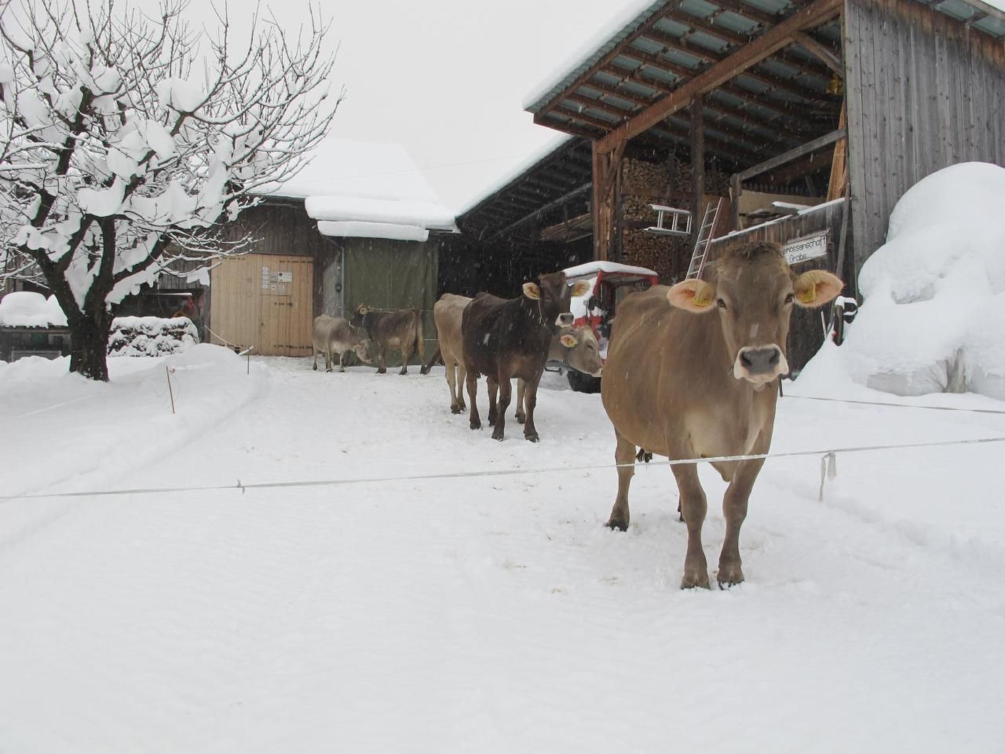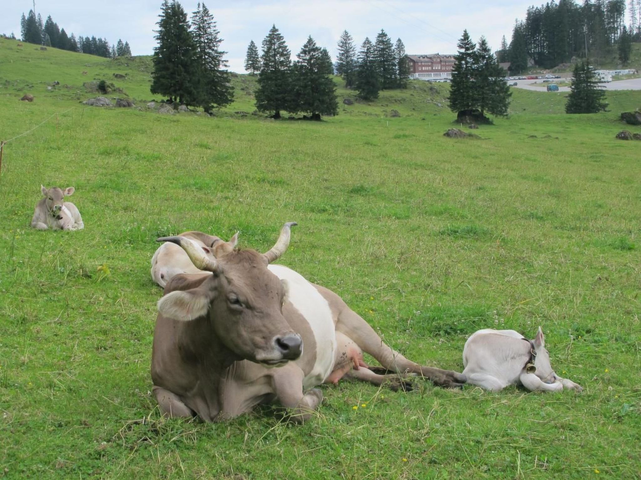 Schaue hinaus und geniesse.. und wenn dich die Lust packt, so komm hinaus und gehe zum Vieh: Kälber, Rinder und Kühe lassen sich sehr gerne streicheln und fressen dir aus der Hand. Für die Kinder ein Paradies!! Drinnen und draussen ein Erlebnis. Auch haben wir drei zahme Katzen. Und wir halten Toggenburger Ziegen mit zeitweise ihren Jungen sowie Lucy, der zarte :-) Appenzeller Bläss x Border Collie-Hund